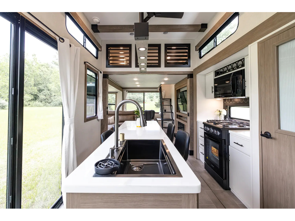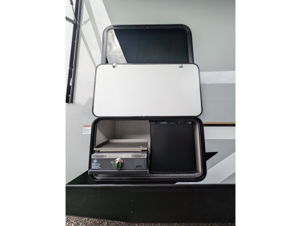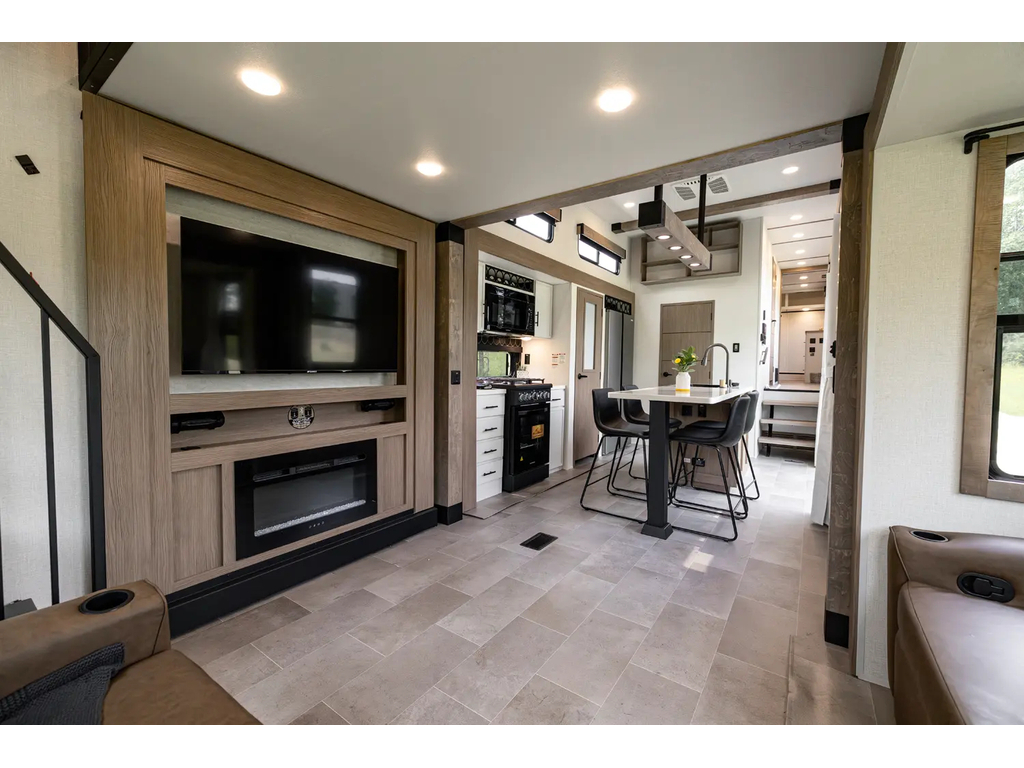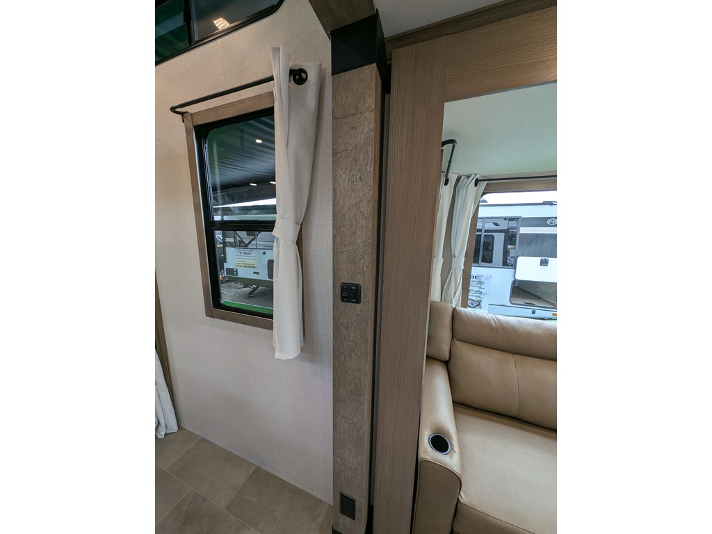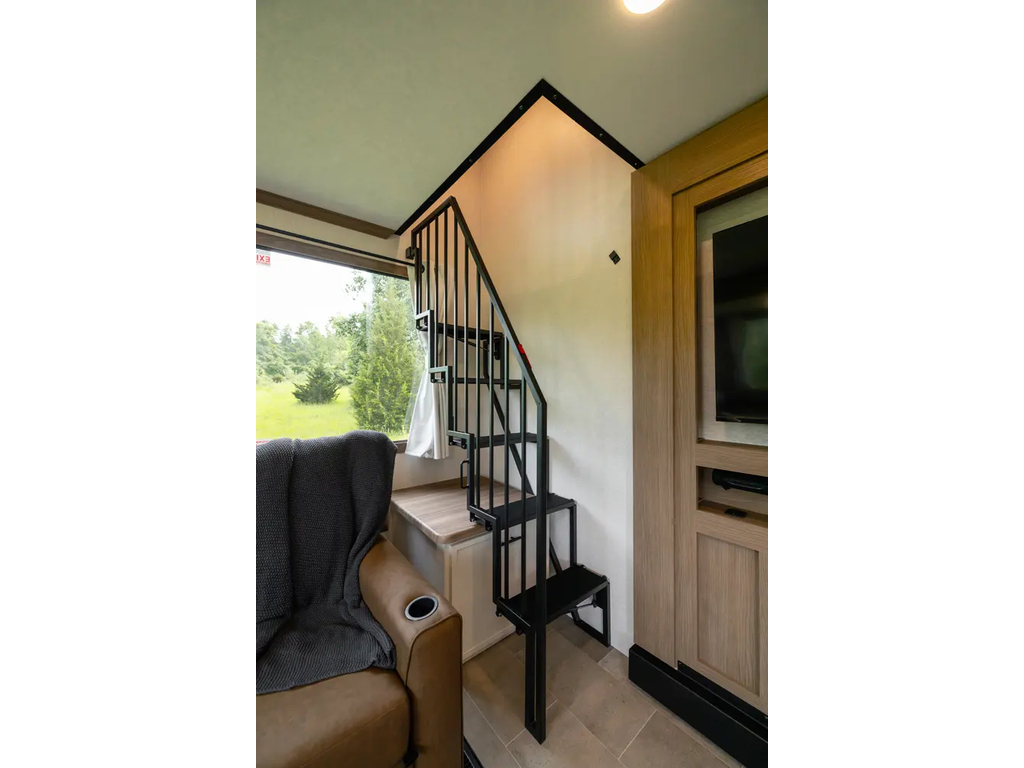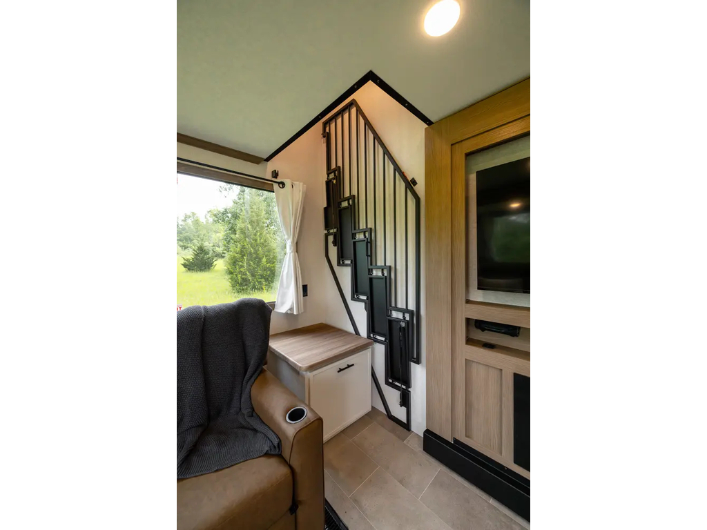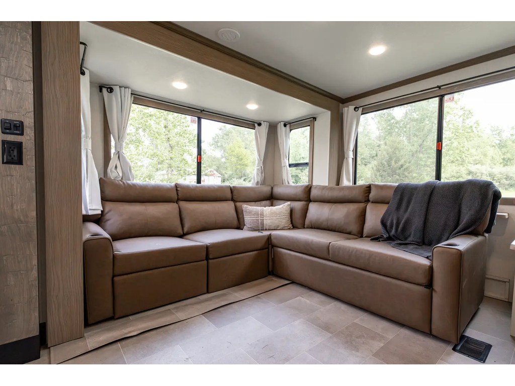 "Nouveauté - caravane À sellette style destination de IMPRESSION ; bienvenue dans la 44 STAY ! Modèle haut de gamme avec revêtement extérieur en fibre de verre avec gel coat haute brillance. Structure en aluminium collée sous vide avec parois en aluminium laminé. Réservoir chauffé. Conduits de climatisation maximisés pour une meilleure efficacité de refroidissement. Grand divan sectionnel avec rangement et soulève pieds