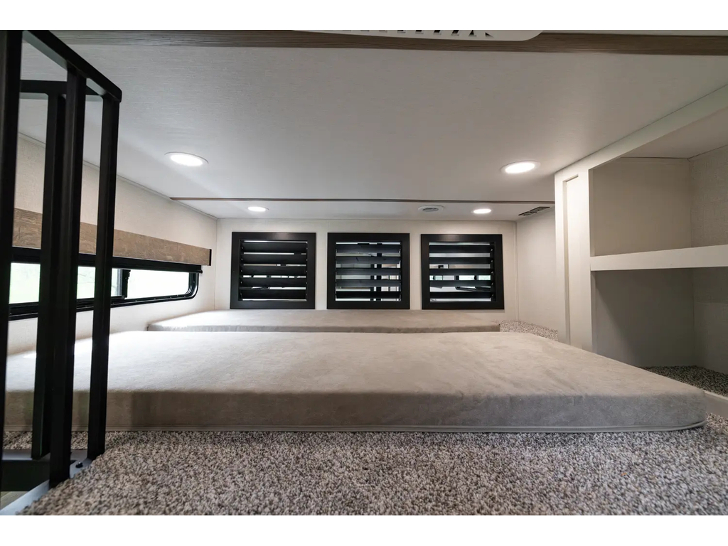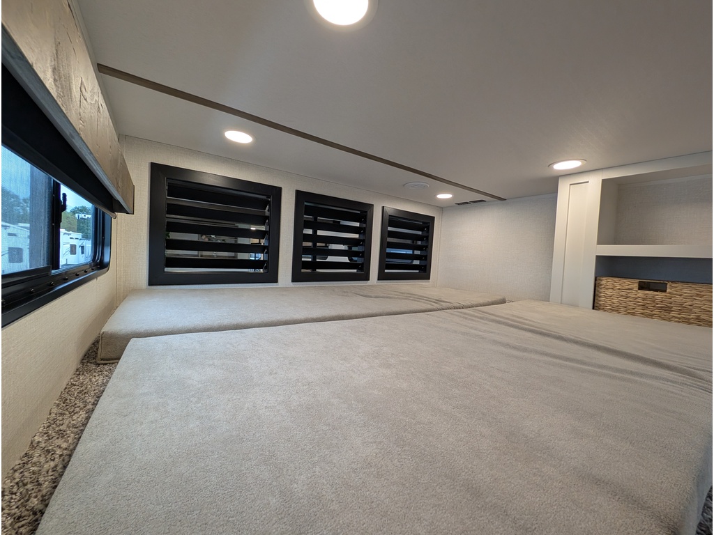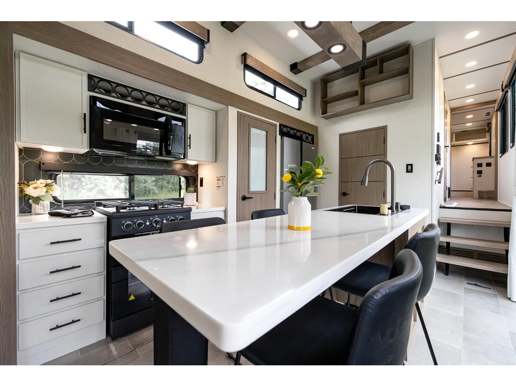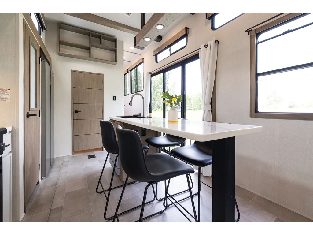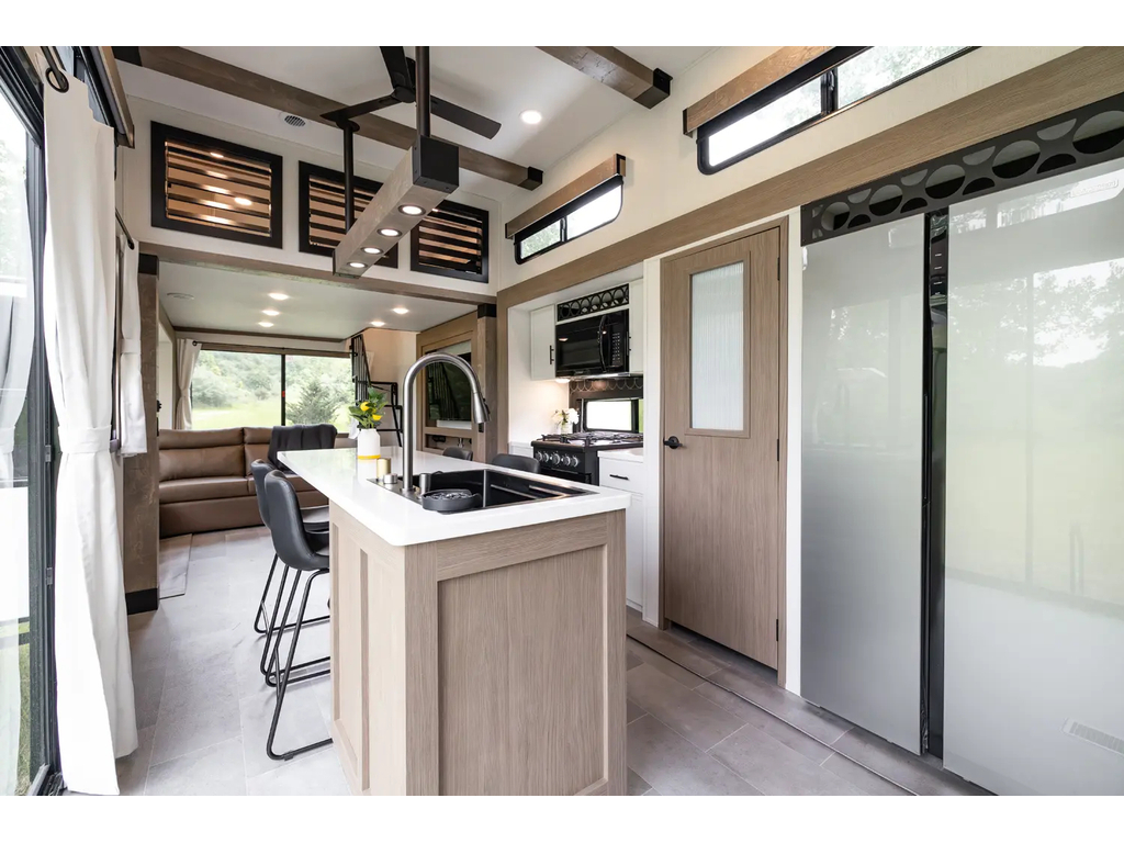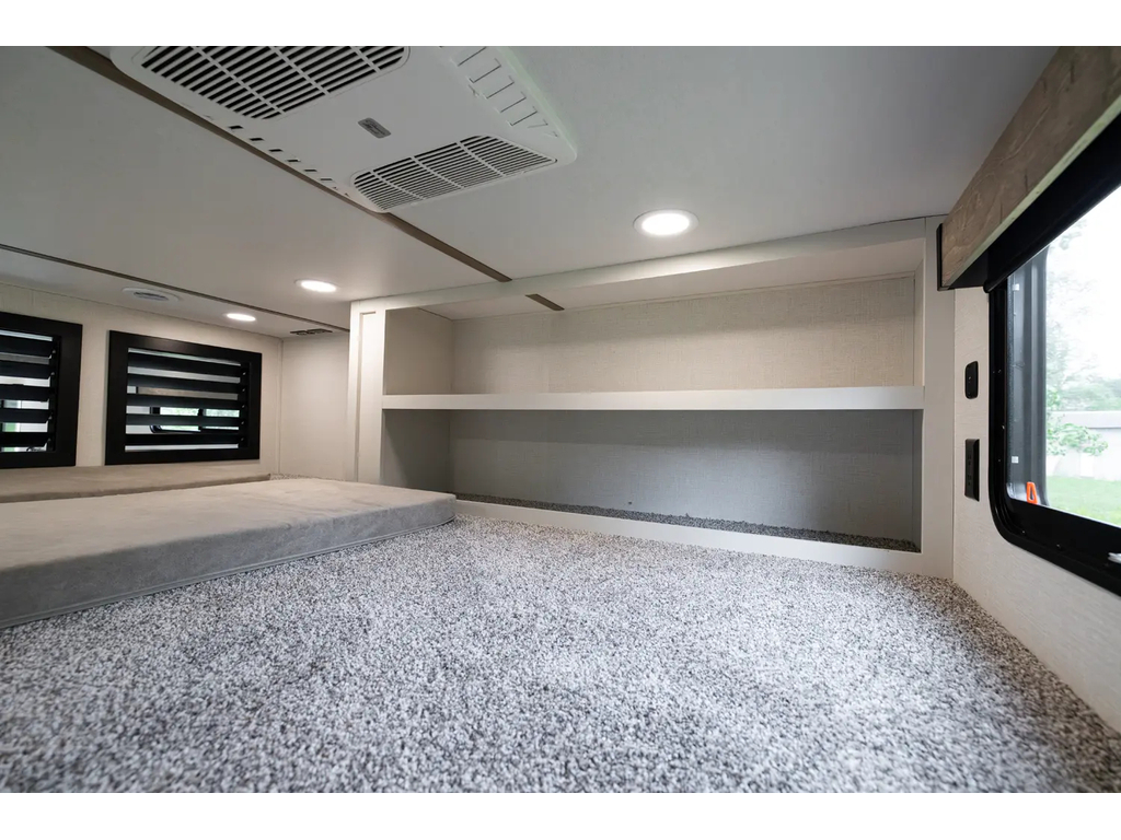 "Nouveauté - caravane À sellette style destination de IMPRESSION ; bienvenue dans la 44 STAY ! Modèle haut de gamme avec revêtement extérieur en fibre de verre avec gel coat haute brillance. Structure en aluminium collée sous vide avec parois en aluminium laminé. Réservoir chauffé. Conduits de climatisation maximisés pour une meilleure efficacité de refroidissement. Grand divan sectionnel avec rangement et soulève pieds