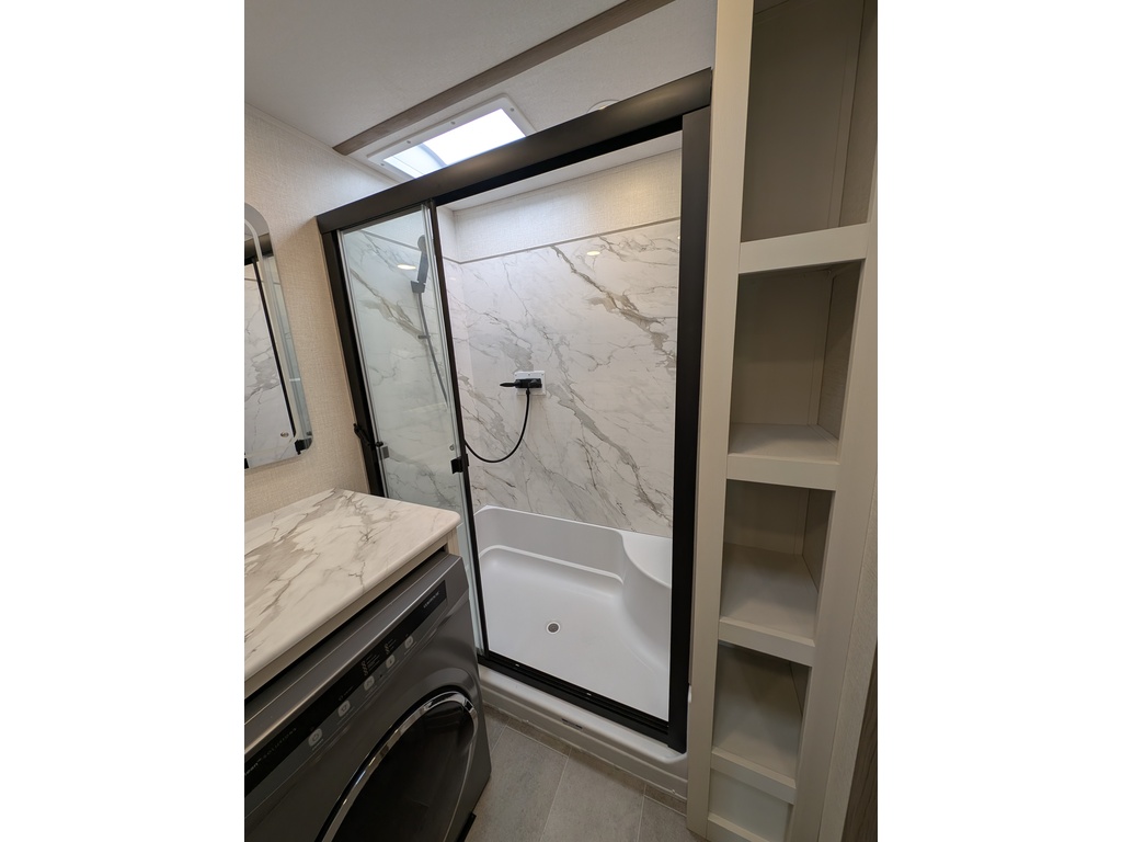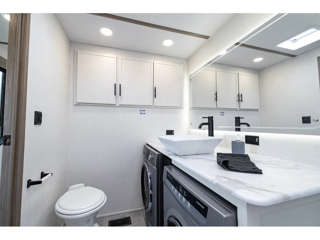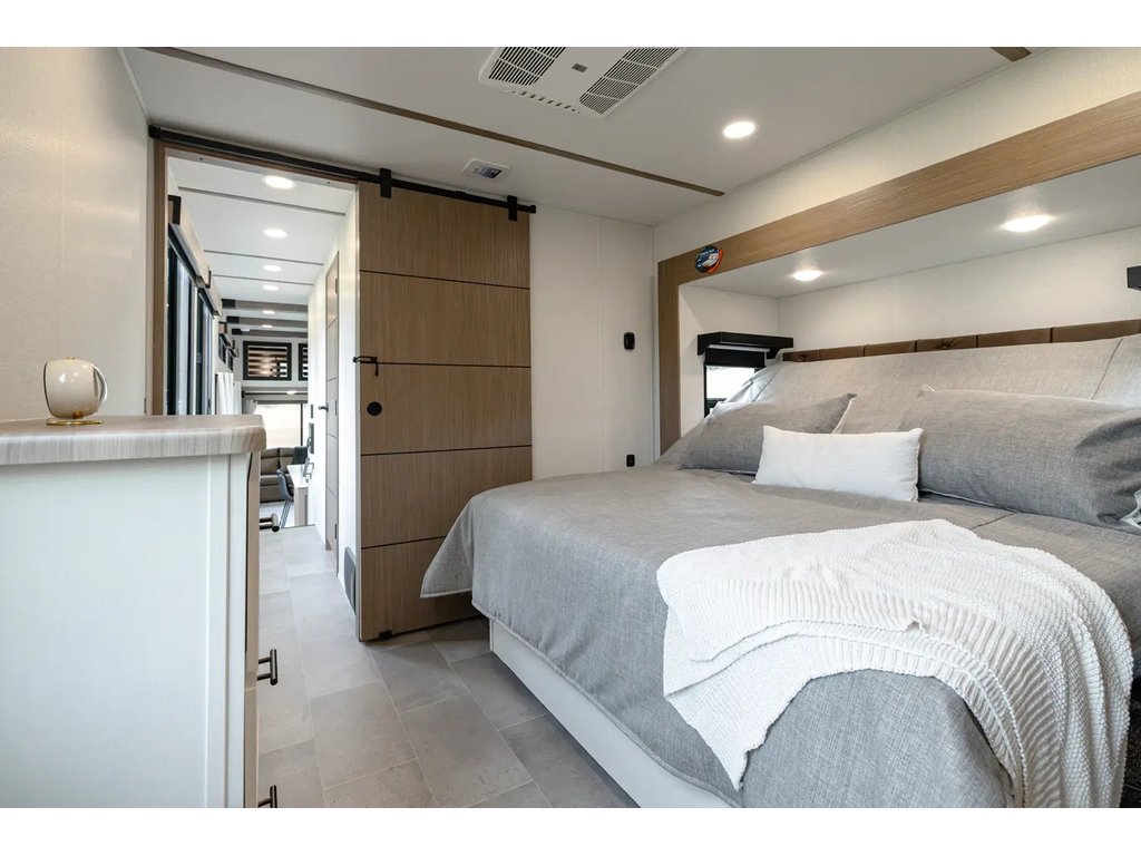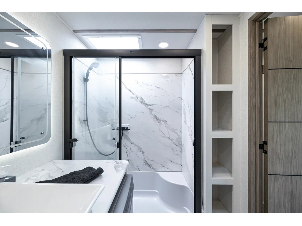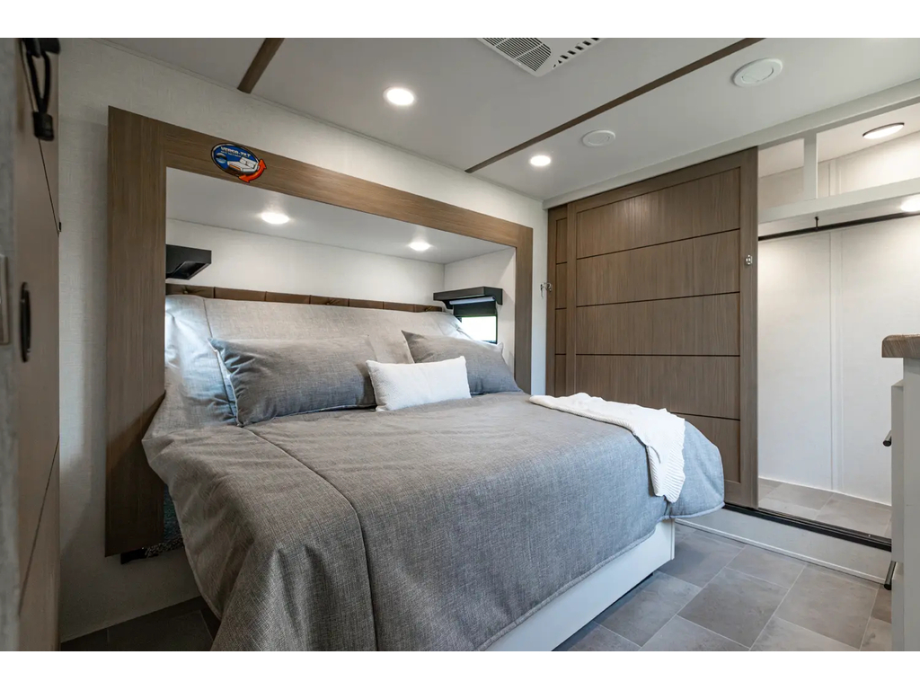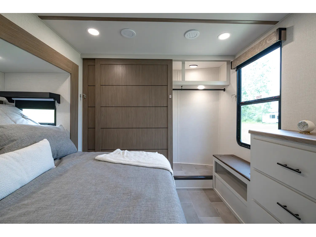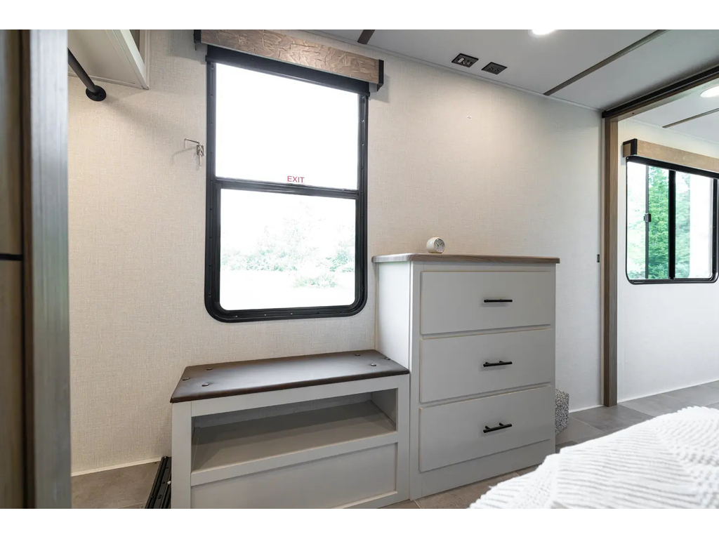"Nouveauté - caravane À sellette style destination de IMPRESSION ; bienvenue dans la 44 STAY ! Modèle haut de gamme avec revêtement extérieur en fibre de verre avec gel coat haute brillance. Structure en aluminium collée sous vide avec parois en aluminium laminé. Réservoir chauffé. Conduits de climatisation maximisés pour une meilleure efficacité de refroidissement. Grand divan sectionnel avec rangement et soulève pieds