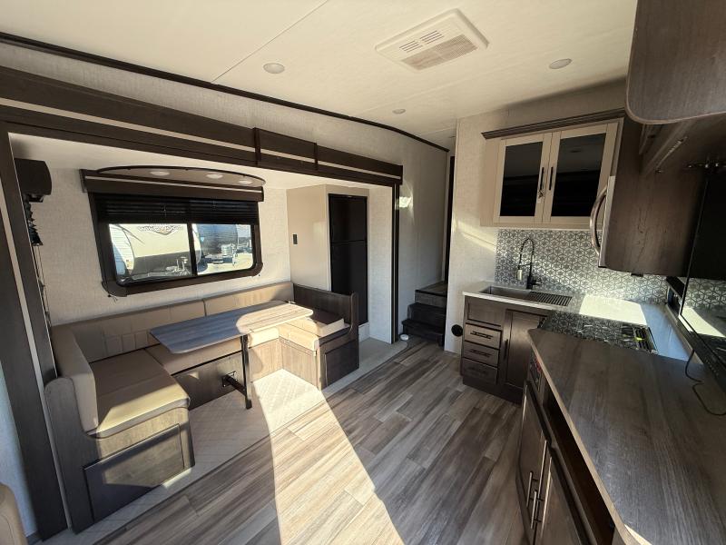 Cruiser 24RL 2022 une roulotte compacte et pratique idéale pour vos escapades. Elle est équipée d’une banquette d’un réfrigérateur au gaz d’un air climatisé 13 500 BTU et de jantes en aluminium offrant confort et fonctionnalité sur la route.