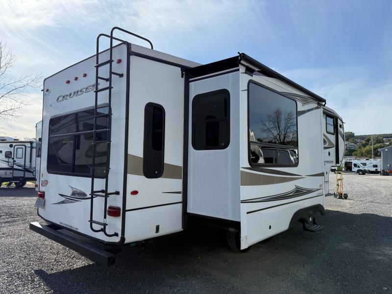 UNITÉ VENDUE TEL QUEL Cruiser 30ES 2012 une roulotte spacieuse et confortable idéale pour vos escapades. Elle dispose d’un air climatisé 13 500 BTU de fauteuils style théâtre de jantes en aluminium et d’un stabilisateur électrique et est vendue telle quelle prête pour de nouvelles aventures.