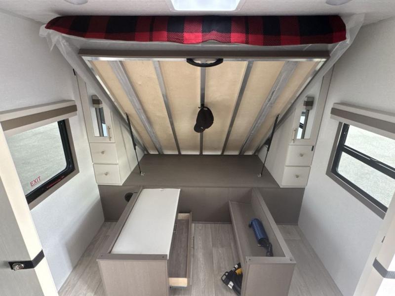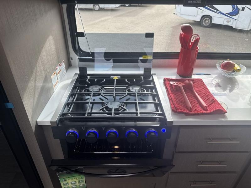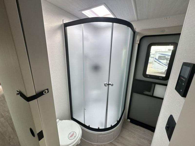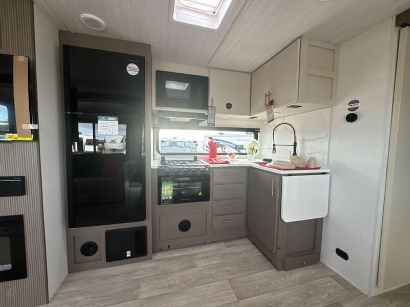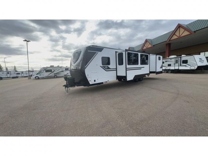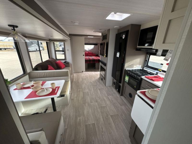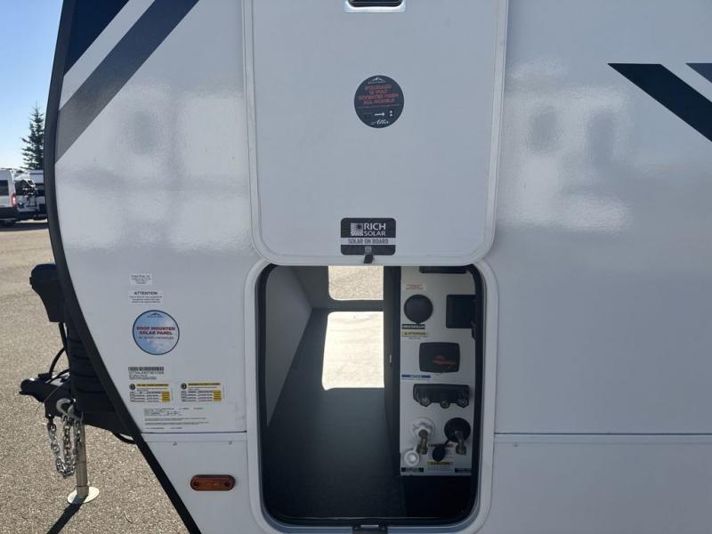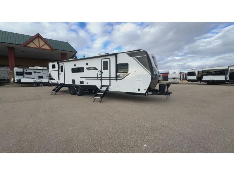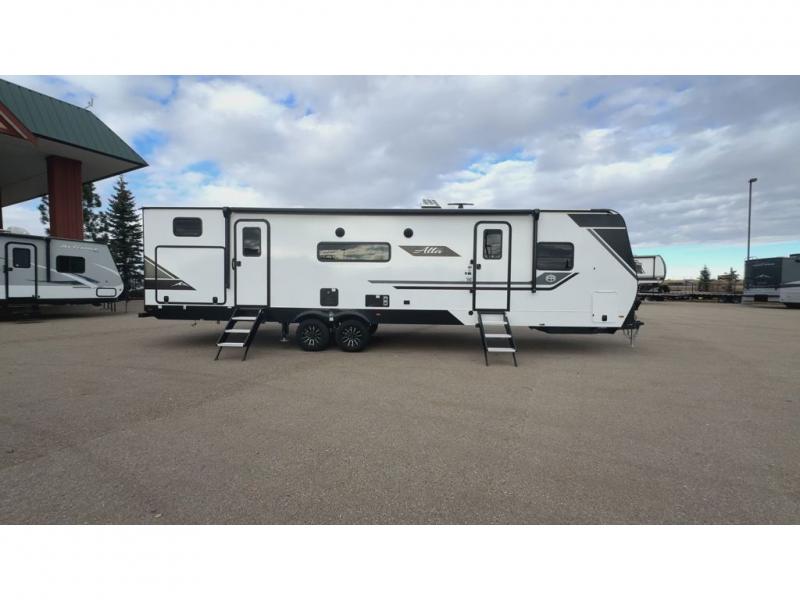 If you're looking for a travel trailer to take tailgating, this Alta model is the one! After you've unloaded the pass-through storage and set up the 21' power awning, start lunch on the outside kitchen! Since there are dual entry doors you can enter in through the main living area, or the full bath for convenience. The little ones are sure to spend most of their time in the rear bunkhouse that includes a flip-up bunk under the sofa, plus a second bunk across the room. The adults can visit at the booth dinette or on the tri-fold sofa, and check out the front private bedroom with sliding doors and a king bed for all-around comfort!