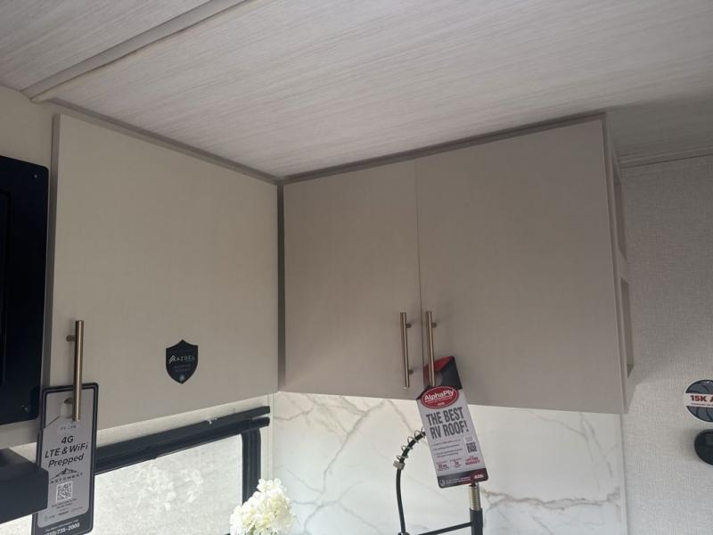 Each Alta travel trailer or toy hauler by EAST TO WEST is constructed with a 5" vacuum bonded roof, an enclosed and heated underbelly, and diamond plate front rock guard for added protection. Outside, you'll find marine-grade exterior speakers, a universal docking station, and back-up camera prep that can be added to make maneuvering in and out of campgrounds easier than ever. Inside, there are 4k interior LED lights, solid pressed membrane countertops, black roller shades, and many more interior comforts you are sure to love.