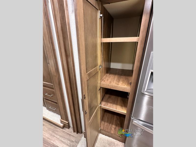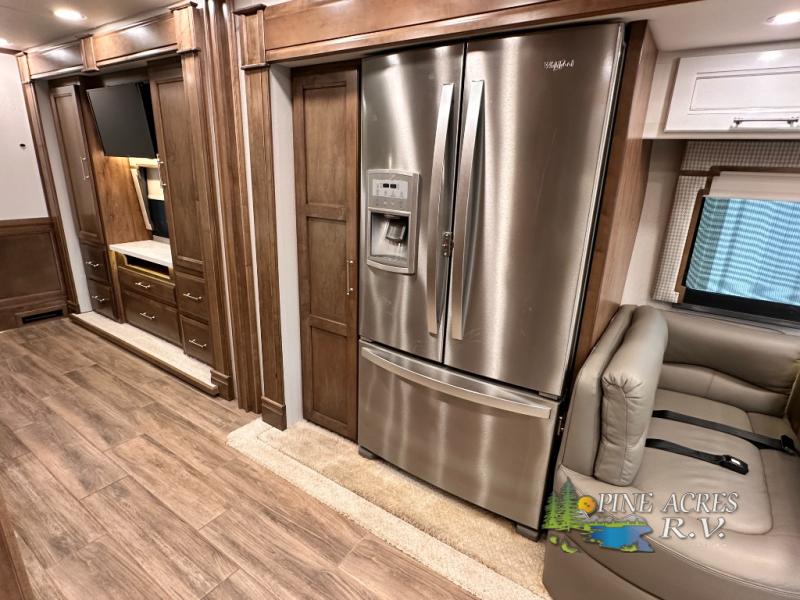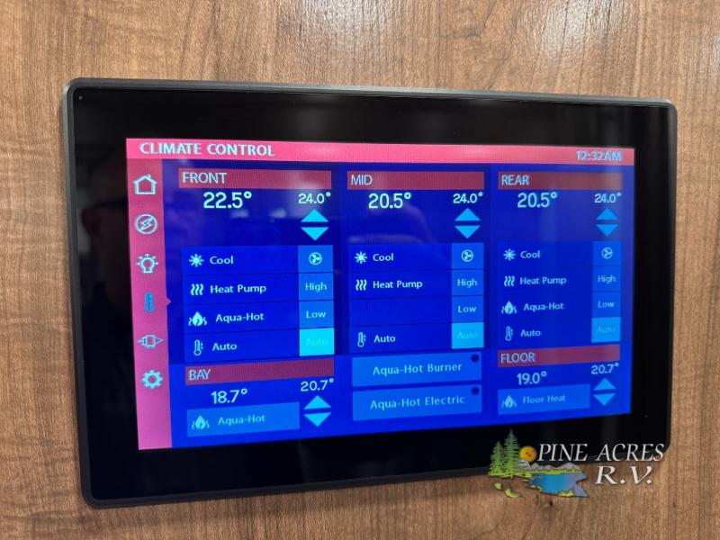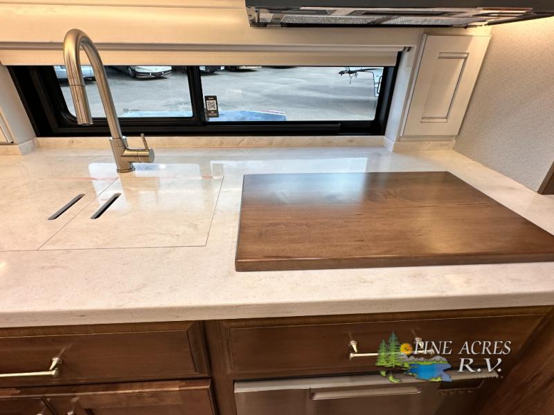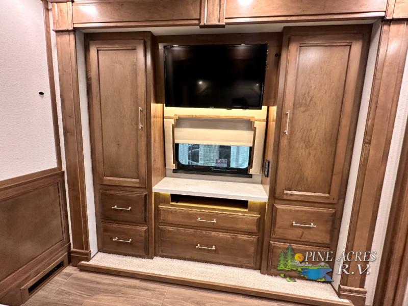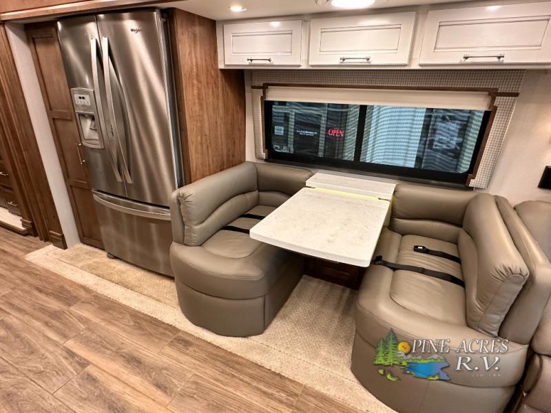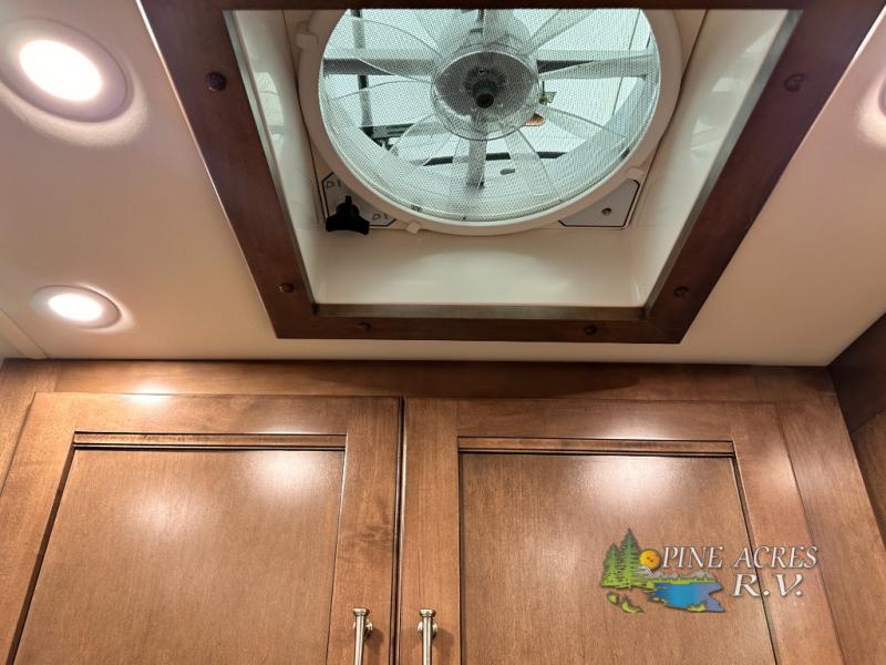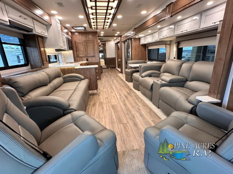 The Aspire Class A diesel motorhome by Entegra Coach starts with a Spartan K2 raised-rail chassis and a Cummins L9 turbocharged 450 HP engine to bring power to your adventures. The cockpit is packed with features to make each trip enjoyable, like the Xite XSG4 infotainment system, the E-Z Steer adjustable power steering assist, and the JBL premium audio 5-speaker sound system to crank up the highway tunes. Each model includes Aqua-Hot heated basement storage, three 15,000 BTU A/C units, an Onan 10,000-watt diesel generator, and many more hassle-free utilities. You will fall in love with the Aspire interior that features premium leather Villa furniture, solar day shades and blackout night shades, a textured porcelain tile shower with a skylight and clear glass door, and a large cedar-lined wardrobe in the bedroom.