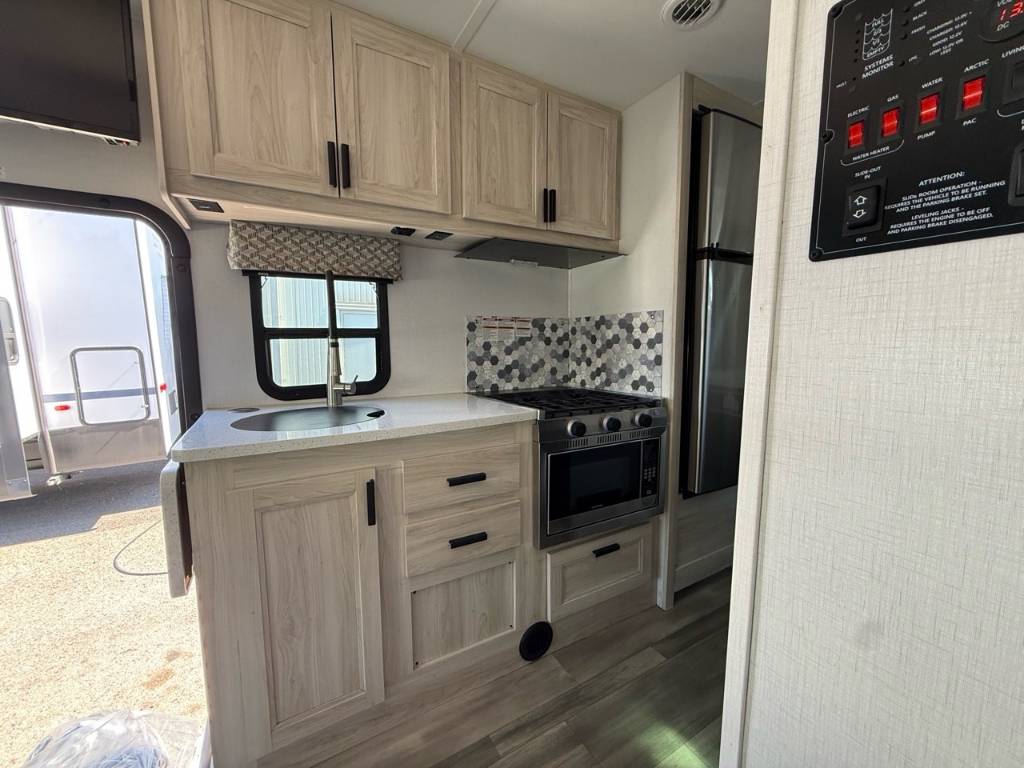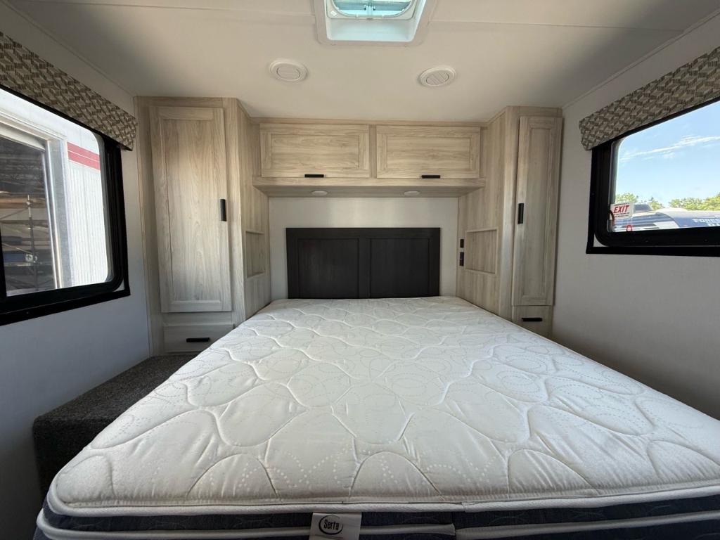 Motorisé Classe C – Forest River 2023 – Forester 2651 CDW – Le Forest River Forester 2651 CDW 2023 est un motorisé Classe C offrant un équilibre entre confort autonomie et praticité pour voyager en toute liberté. Spécifications mécaniques : • Moteur : Triton V8 • Puissance : 325 chevaux • Type de carburant : Essence • Transmission : Allison à 6 vitesses automatique • Châssis : Ford V8 Dimensions & Capacités : • Longueur totale : 28.4 pieds • Réservoir d’eau douce : 44 gal • Réservoirs d’eaux usées : 78 gal • Couchages : 5 caractéristiques principales : • Le Forest River Forester 2651 CDW 2023 est un motorisé Classe C offrant confort et autonomie. • Il est équipé d’un générateur et d’un panneau solaire pour le camping hors réseau. • Son intérieur comprend une chambre privée un espace coulissant et une cuisine complète. • Il dispose de caméras d’un auvent LED et de nombreux rangements extérieurs • Ses réservoirs isolés et chauffés permettent un usage toutes saisons. Ce modèle est parfait pour ceux qui veulent profiter d’un maximum de confort et d’indépendance lors de leurs aventures.