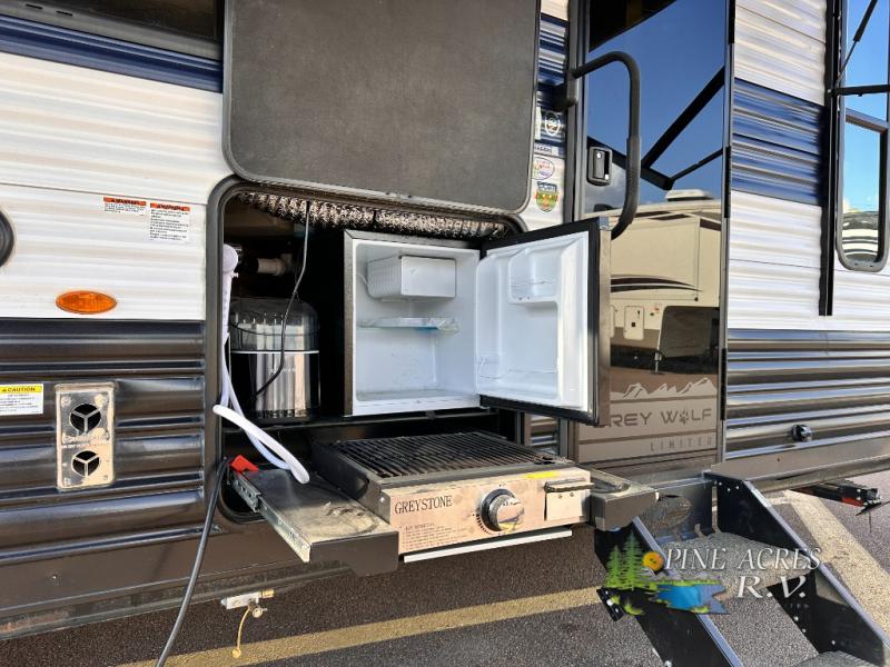 Whether it's a journey that will take you to new locations or a tried-and-true getaway to that favorite and memorable destination, the Forest River Cherokee Grey Wolf travel trailers and toy haulers are going to make the trip worth it every single time! You can travel in confidence with the premium wheel package, seamless roofing membrane with heat reflectivity, Power Gear frame technology with space-saver rail design, and Cherokee back-up camera system. The Cherokee Grey Wolf's interior is highly attractive with its stainless steel kitchen suite package, premium bedding ensemble and comforter, and 8" ceiling-mounted subwoofer with accent lighting. You will also find a black waste tank flush-out kit, an outside shower with hot and cold water, an armored underbelly tank enclosure, a power tongue jack, and an RV grill quick connect.
