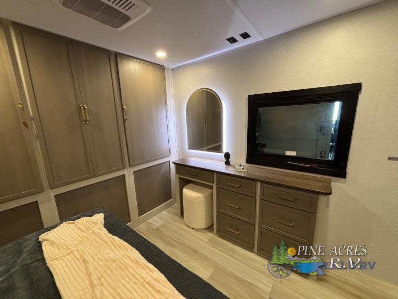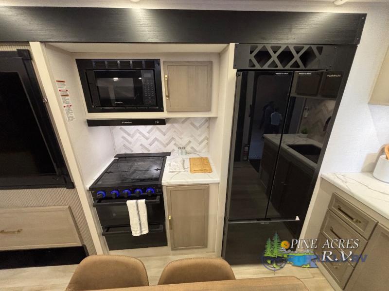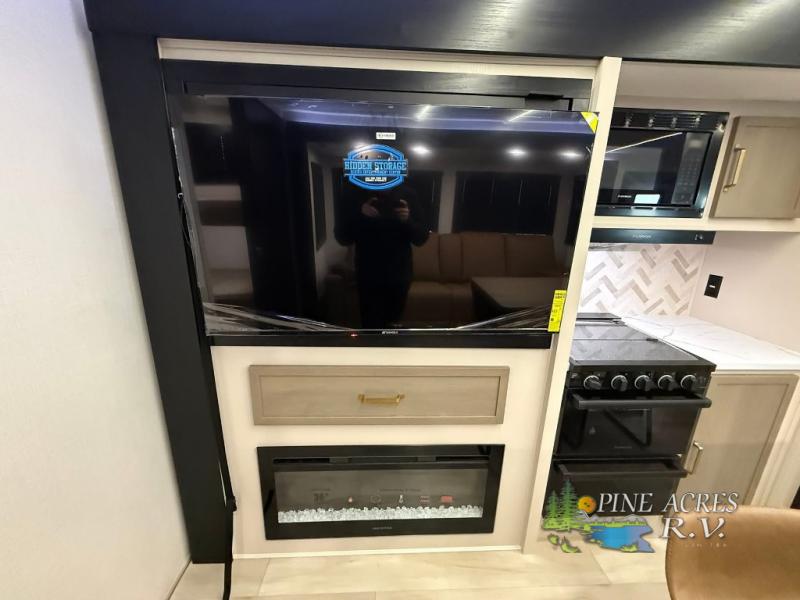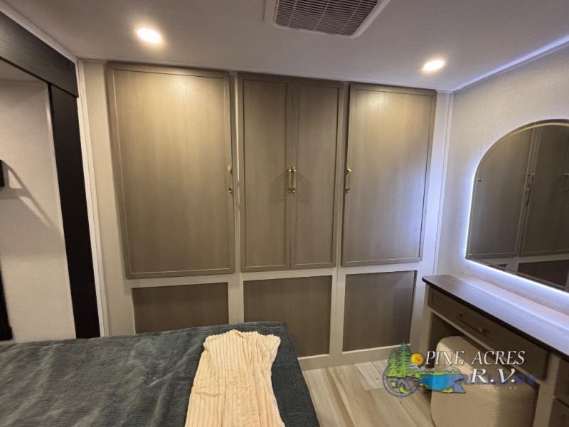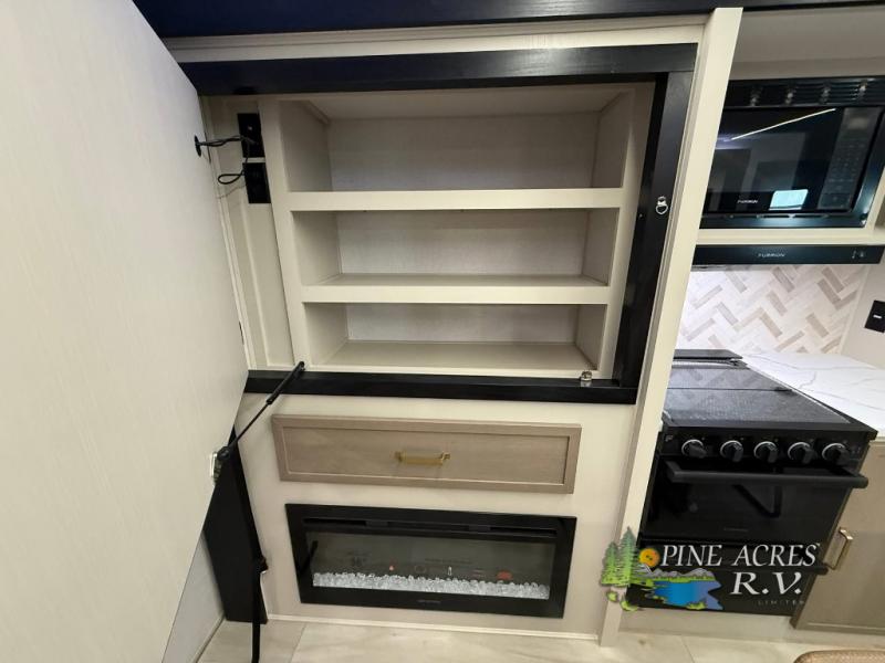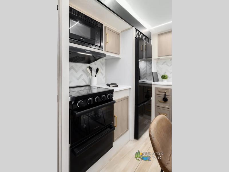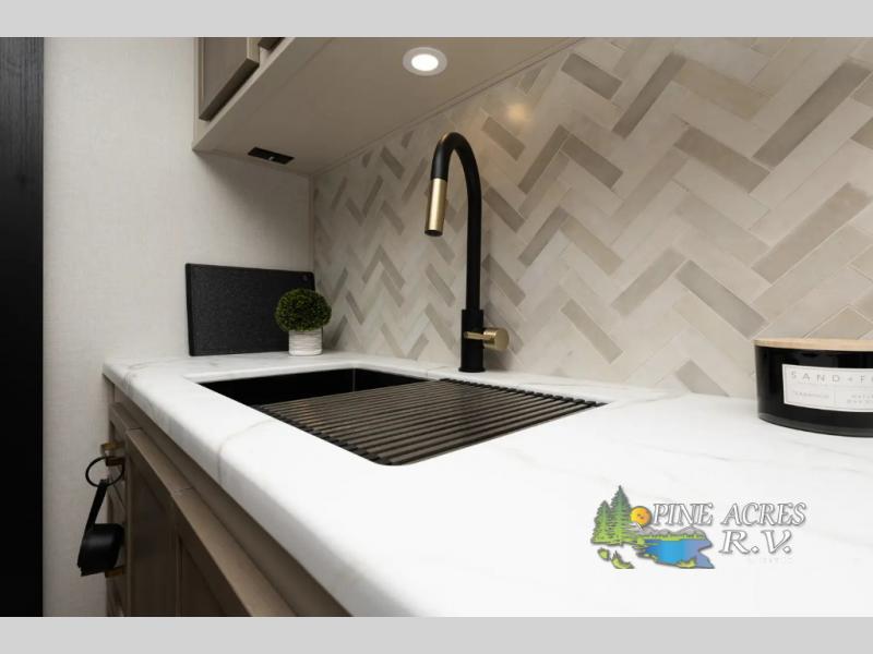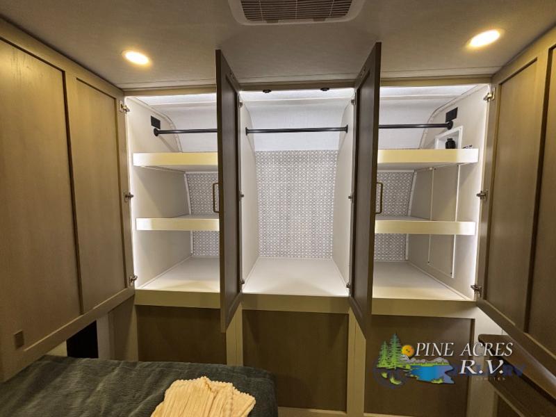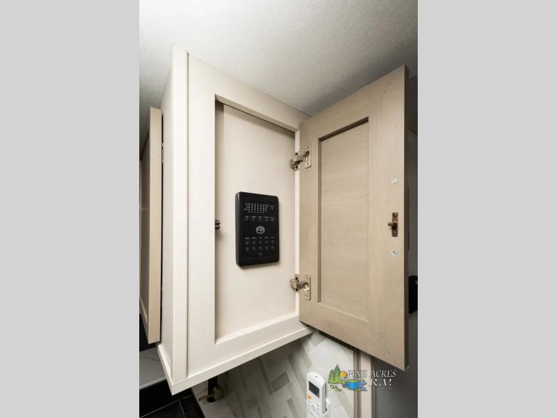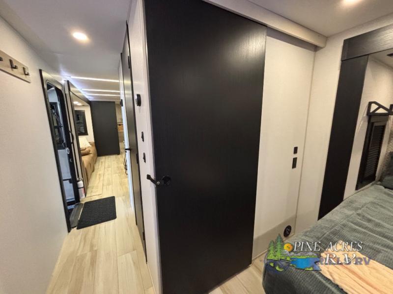 With any Wildwood Heritage Glen travel trailer by Forest River, the quality construction, attention to detail and design along with a bright and welcoming interior allows you to relax in comfort. Each model includes a WeatherShield one piece fiberglass roof, nitrogen-filled radial tires, and an enclosed underbelly with 12V tank heaters on all holding tanks for added protection. You will appreciate the on-demand tankless water heater, along with power stabilizer and tongue jacks, and an extra-large pass-thru storage with slam latch baggage doors. Head inside to enjoy matte gold hardware, wood door casings in place of plastic door casings, and an ultimate interior lighting upgrade with 4k puck/strip lights and a stylish LED back-lit bath mirror!