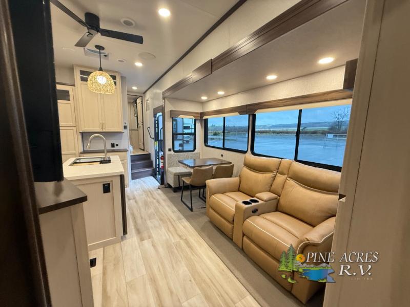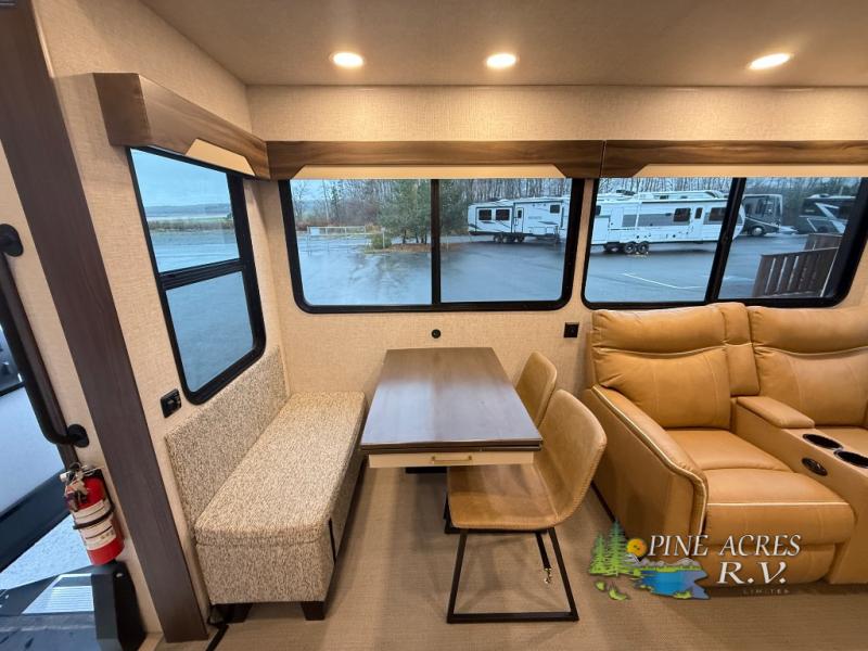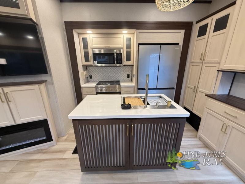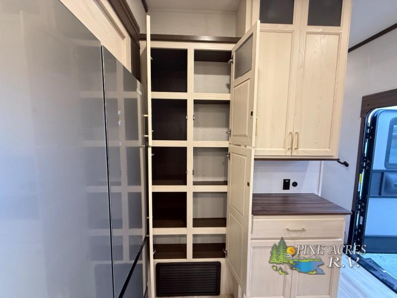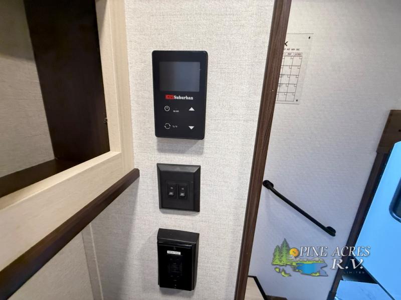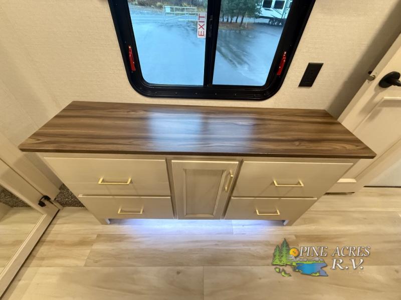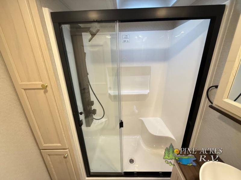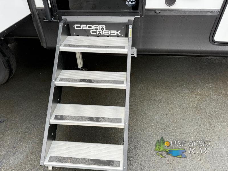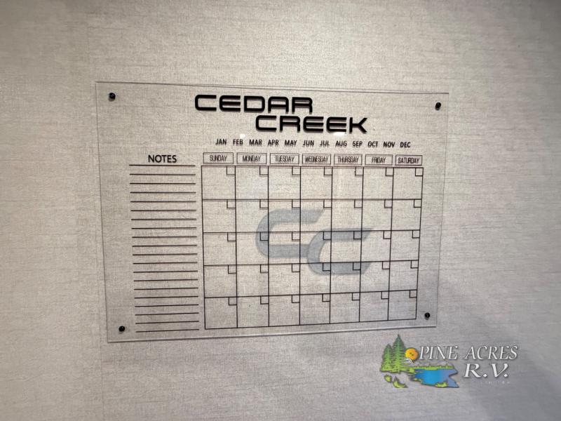 With any Cedar Creek Experience fifth wheel by Forest River, you will bet met with luxury features both inside and out! The True Gelcoat exterior is the best of the best in exteriors and the 3M bonded sidewalls will hold up over years of use. There is also a new 101'' wide-body frame, a Road Warrior suspension, plus a TST tire pressure monitoring system to make towing that much easier. You will find a hidden front storage compartment, along with a 4' x 6' ABS, ribbed, removable underbelly panels, and 6-point hydraulic leveling system, plus many more exterior conveniences. The interior will have you feeling like you haven't left home with vinyl floor coverings, power theater seating with USB ports, a cozy fireplace, vinyl floor covering and the list of comforts goes on! Each model is also pre-wired for satellite to the roof, and you're sure to never go bored with a Smart TV in the bedroom!