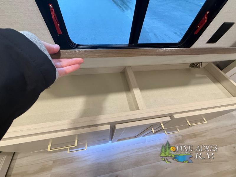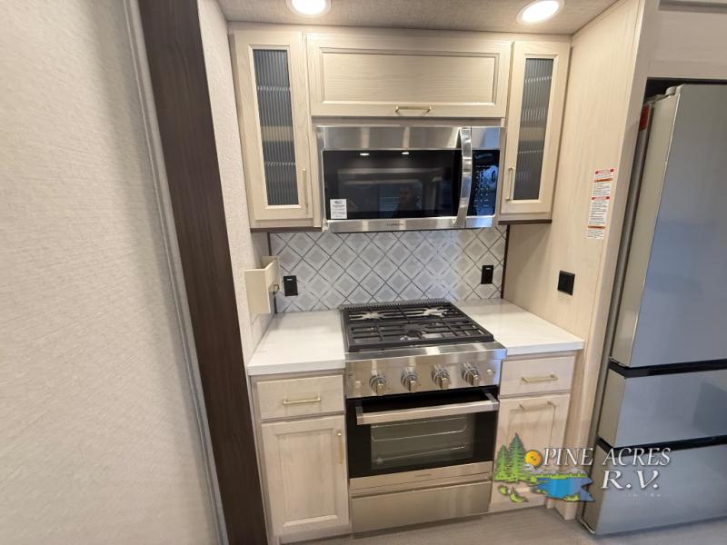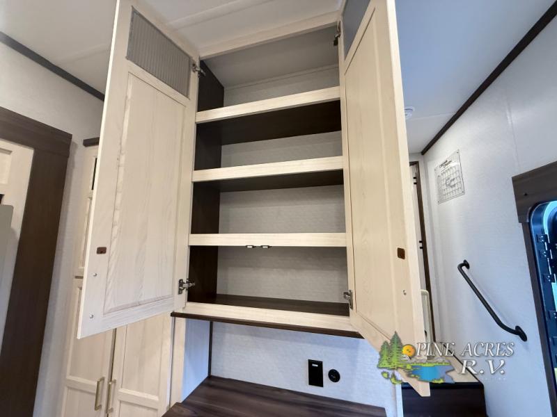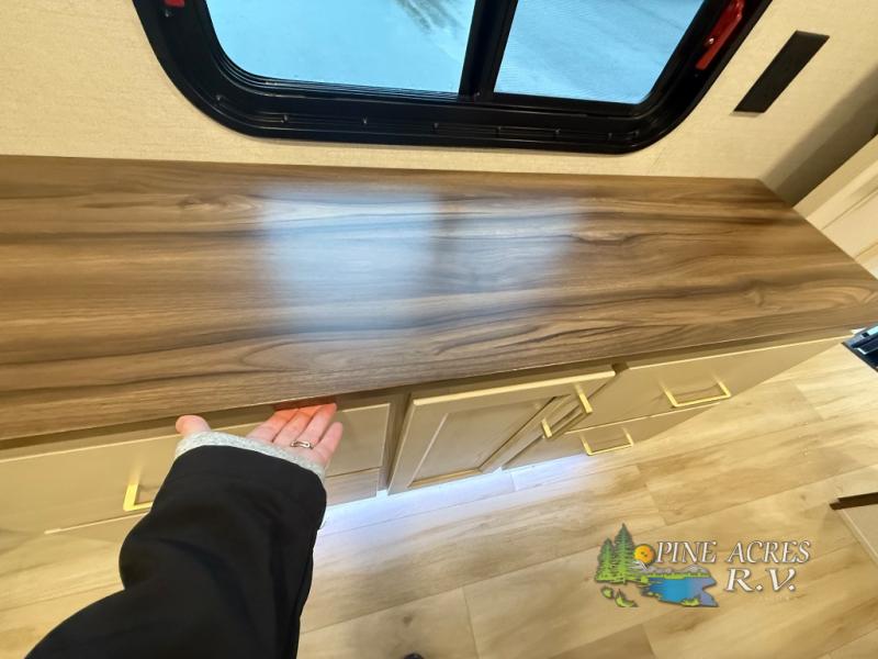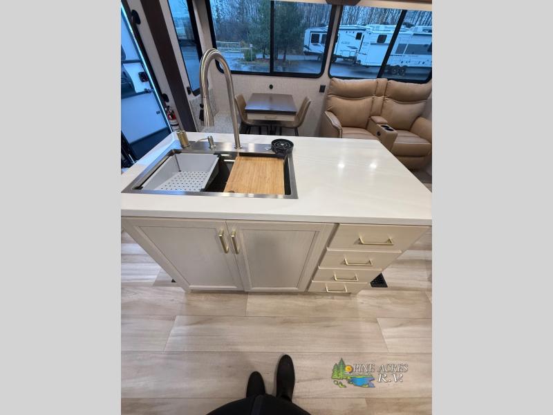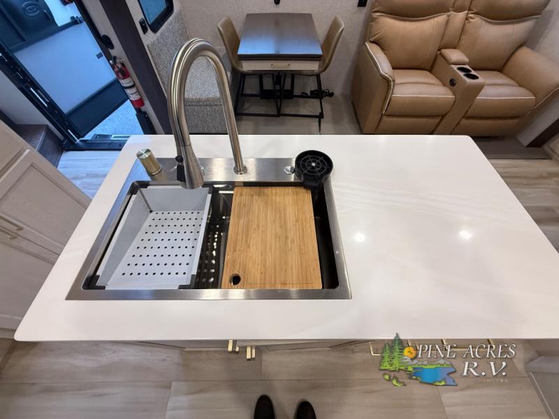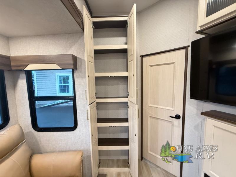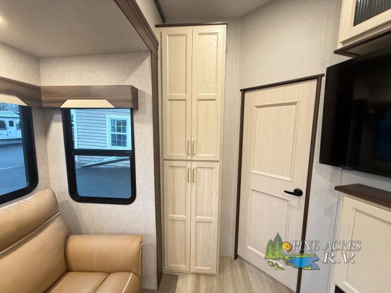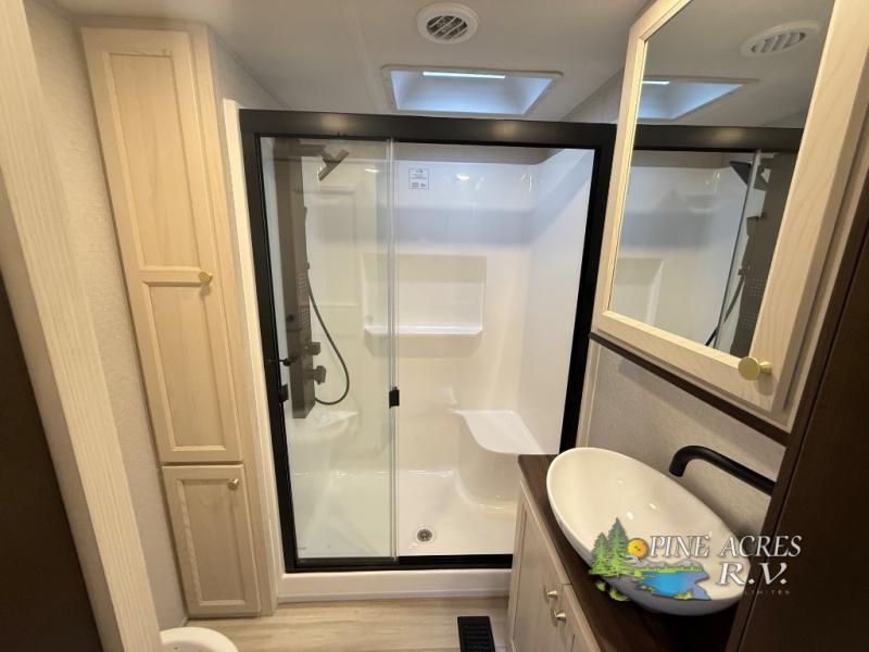 With any Cedar Creek Experience fifth wheel by Forest River, you will bet met with luxury features both inside and out! The True Gelcoat exterior is the best of the best in exteriors and the 3M bonded sidewalls will hold up over years of use. There is also a new 101'' wide-body frame, a Road Warrior suspension, plus a TST tire pressure monitoring system to make towing that much easier. You will find a hidden front storage compartment, along with a 4' x 6' ABS, ribbed, removable underbelly panels, and 6-point hydraulic leveling system, plus many more exterior conveniences. The interior will have you feeling like you haven't left home with vinyl floor coverings, power theater seating with USB ports, a cozy fireplace, vinyl floor covering and the list of comforts goes on! Each model is also pre-wired for satellite to the roof, and you're sure to never go bored with a Smart TV in the bedroom!
