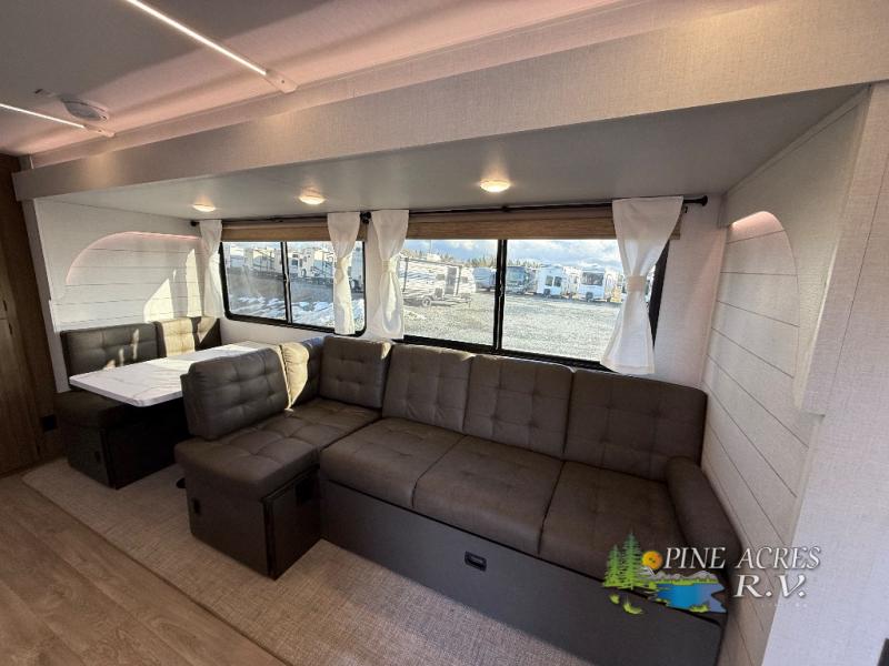 Have you been searching for the perfect travel trailer for your family? This Wildwood might just be the RV you have been looking for. Just imagine hiking, biking and playing horseshoes at your favorite campground to return to plenty of space for everything thanks to the triple slides, one in each room. The kiddos will surely head to the rear private bunkhouse to claim a bunk bed while you take a nap on the custom king bed in the front bedroom. You can make dinner on the cooktop while your crew relaxes on the booth dinette and Versa-lounge!