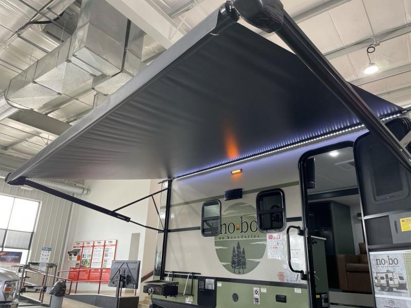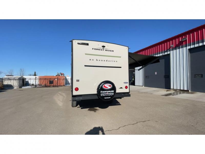 If you want to break free from the travel constraints of standard trailers, then you must choose the Forest River No Boundaries travel trailer because they are rugged and ready for adventure! These 18, 19, and 20 Series trailers are built with a laminated wall with aluminum construction and Azdel composite substrate for added durability. There is also a rugged tire and wheel package with a spare tire included, a fully enclosed underbelly, and a Cold Weather Package with 12V heated tank pads and forced air to help extend your camping season. A 15K A/C will provide comfort during the summer, and a Bluetooth speaker will let you listen to your favorite tunes while you're at the campground. Choose the optional Beast Mode Package for an additional 200W solar panel, 2,000W inverter, and Beast Mode independent suspension!