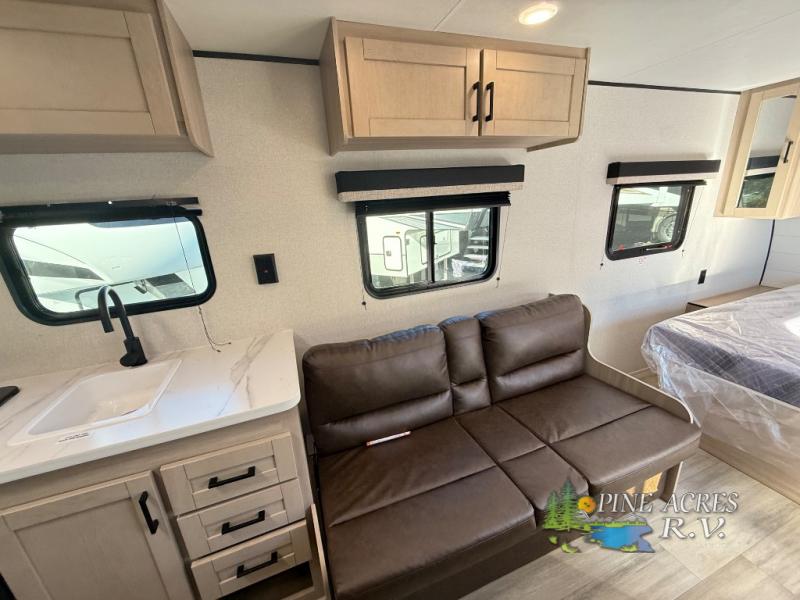 With any Prowler travel trailer, you will enjoy convenient amenities and at-home comforts wherever you decide to camp! Each one is built with a durable fully integrated A-frame, a TrussXL roof system, and galvanized wheel wells. And the self-adjusting brakes, easy-lube axles and nitrogen filled radial tires will provide smooth towing. Inside, you'll enjoy vinyl flooring throughout that will be easy to keep clean, durable, residential-inspired kitchen countertops, a residential-style high-rise kitchen faucet, and solid hardwood cabinet doors with hidden hinges and screwed stile construction. The mandatory Camping in Comfort Package includes a large folding entry door grab handle, MORryde Step Above entry steps, an on-demand tankless water heater, and stylish window shades. There are also available options that vary between single and double axle units that will allow you to customize your Prowler to fit your needs!