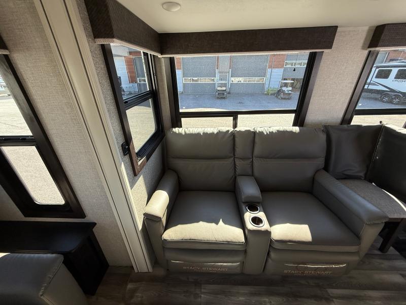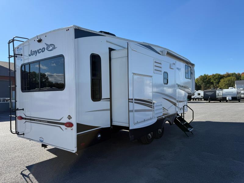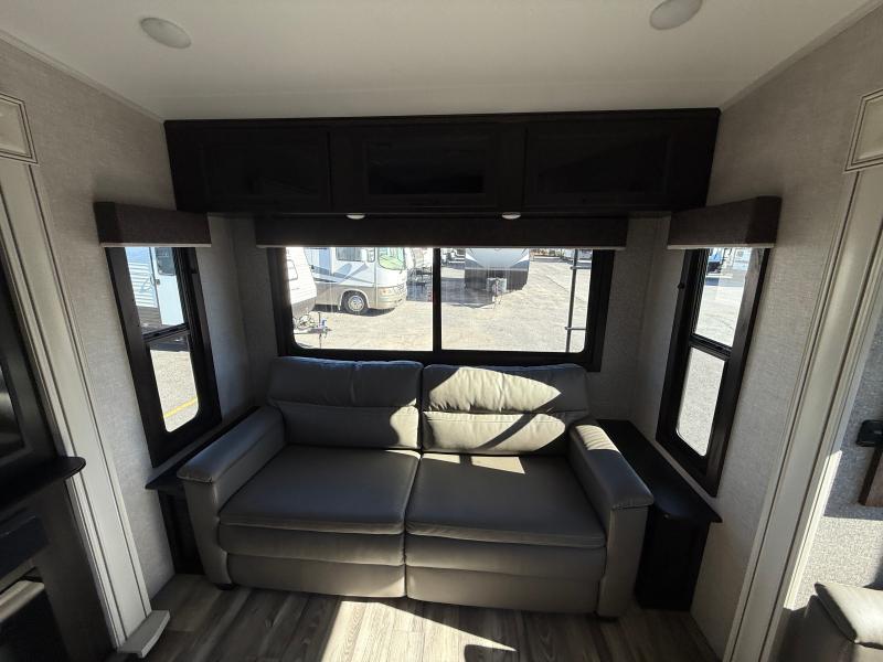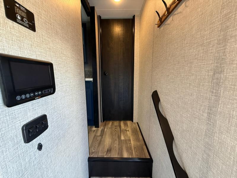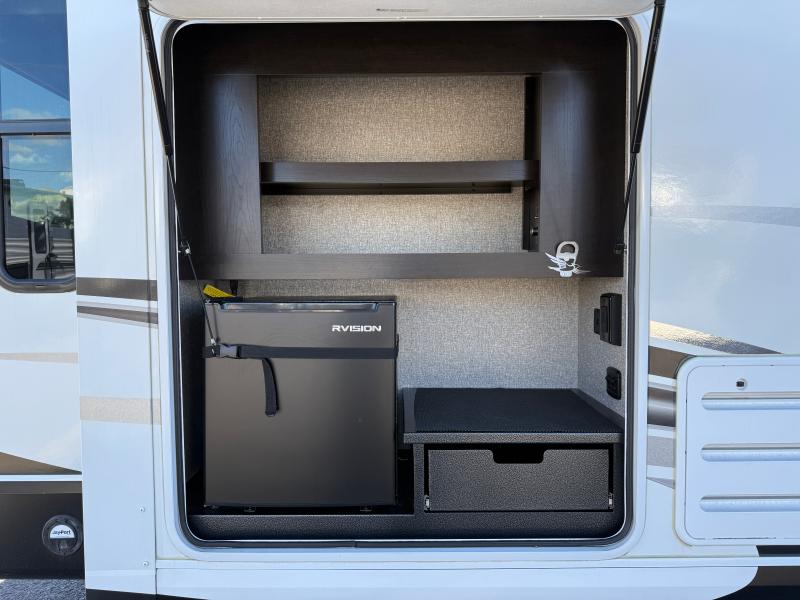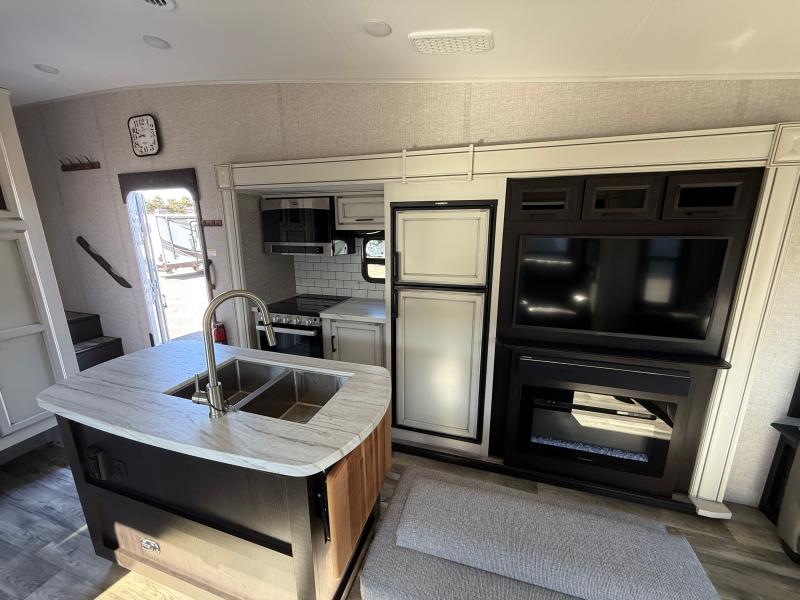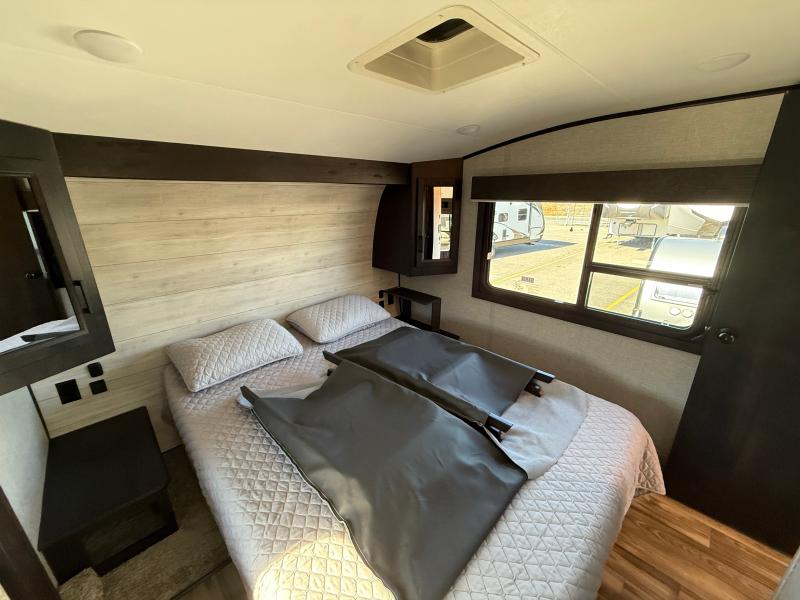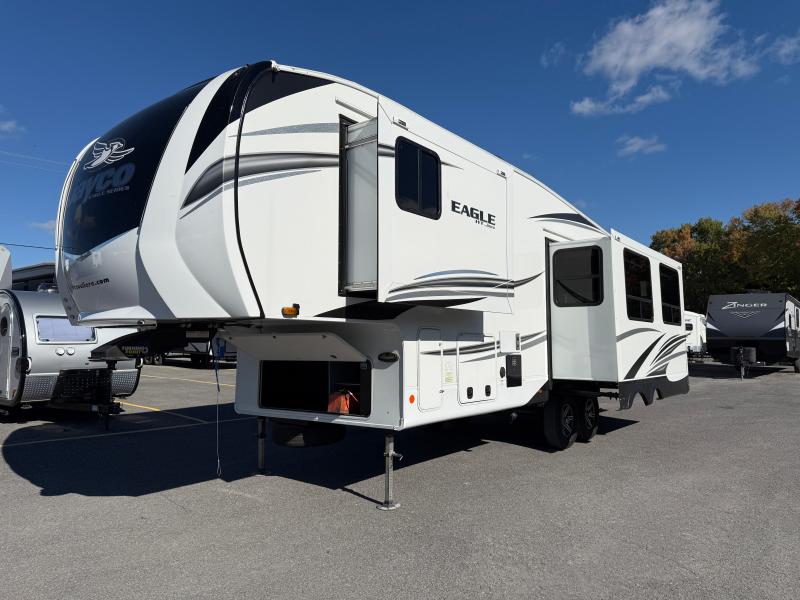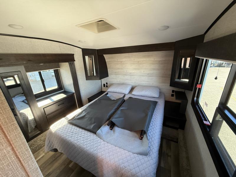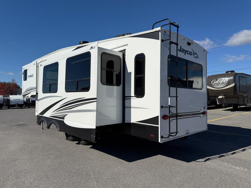 Eagle 28.5RTS 2022 une roulotte spacieuse et moderne idéale pour des séjours tout confort. Elle est équipée d’un îlot central d’une cuisinette extérieure d’un air climatisé 15 000 BTU de panneaux solaires et de jantes en aluminium offrant praticité confort et autonomie pour vos aventures.