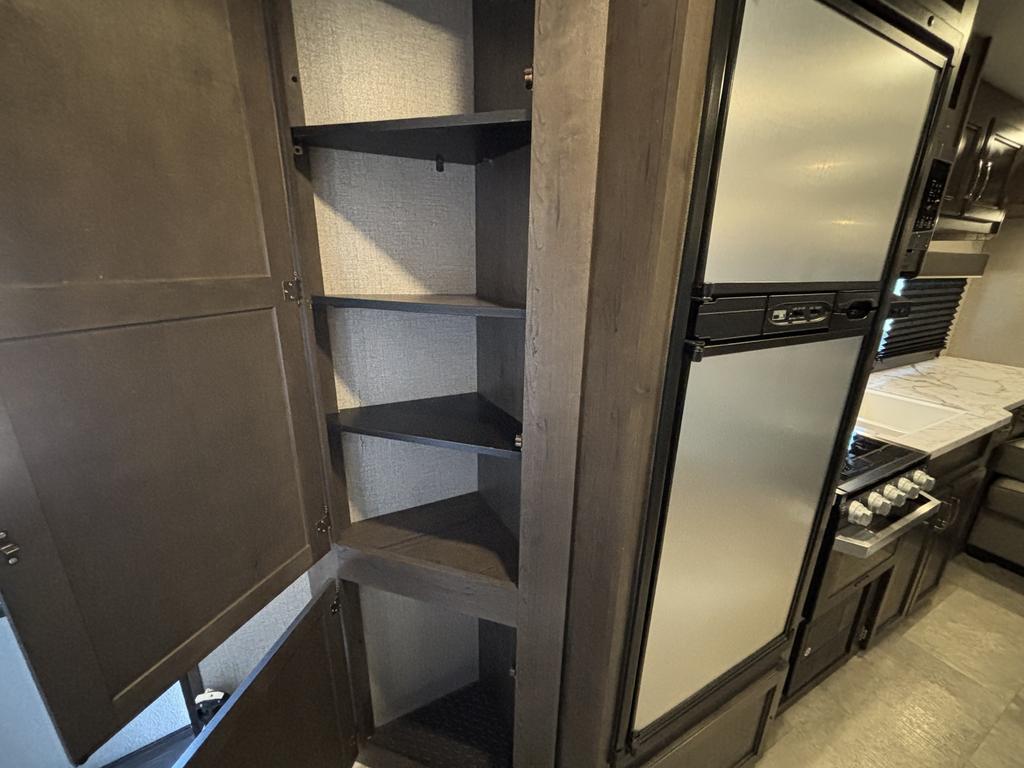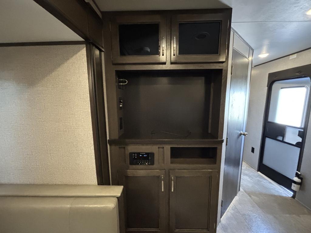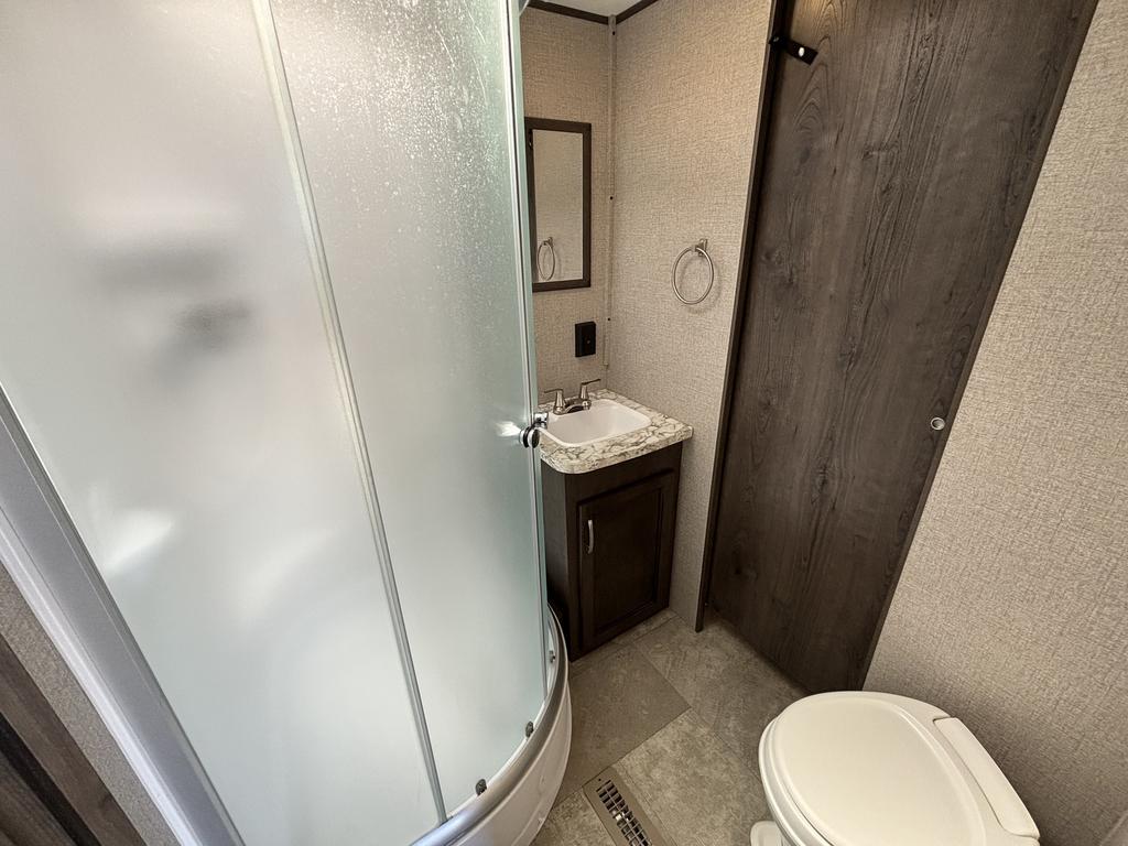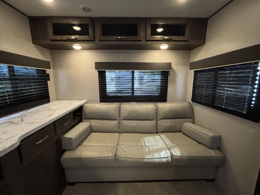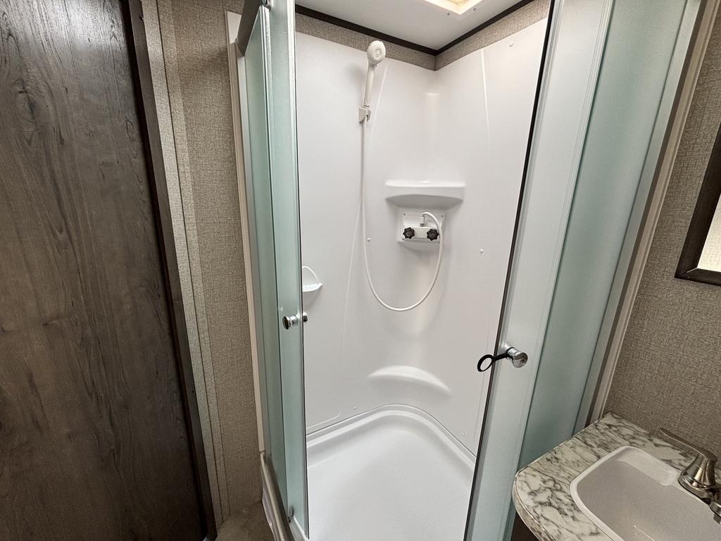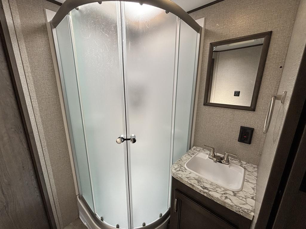 À l'extérieur, un auvent électrique de 16 pieds avec éclairage LED et haut-parleurs vous permet de profiter pleinement de l'extérieur. La construction robuste inclut des flancs en aluminium et un toit Magnum Truss™ avec matériau DiFlex II, garantissant durabilité et résistance.