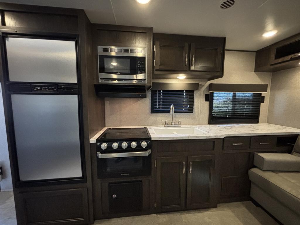 La Jayco Jay Flight SLX 245RLS 2020 est une roulotte de 28 pieds 1 pouce, conçue pour offrir confort et fonctionnalité lors de vos escapades. Avec une capacité de couchage pouvant accueillir jusqu'à 6 personnes, elle dispose d'une chambre avant semi-privée avec un lit queen-size et d'un salon arrière spacieux grâce à un slide-out.