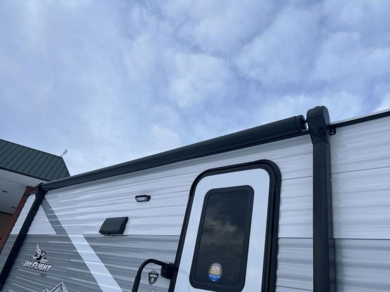 The Jayco Jay Flight SLX travel trailer is quite easy to own because it is lightweight for an easier towing experience. Built on a fully integrated A-frame with galvanized-steel, impact-resistant wheel wells, the Jay Flight SLX has quality at its very foundation. That quality continues on to the electric self-adjusting brakes, easy-lube hubs, Magnum Truss roof system, and LP quick connect. Some of what the mandatory Customer Value Package includes is backup camera prep, Keyed-Alike entry and baggage doors, and an on-demand tankless water heater.