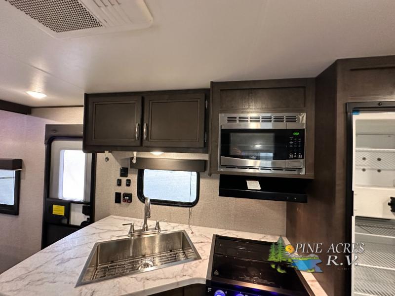 Each Jay Flight SLX 8 travel trailer by Jayco includes the Magnum Truss Roof system which provides seamless DiFlex II material on the roof and plywood decking, and a fully integrated A-frame and I-class cambered structural steel I-beams which is built to last! The roof-mounted air conditioner will come in handy during the hotter months, and the two propane bottles will help keep your showers hot and your meals warm! And when you need to rinse off yourself, your bikes, or the gear, the outdoor shower will do the trick. Choose the floorplan that fits your adventurous side, and load up the family for fun!