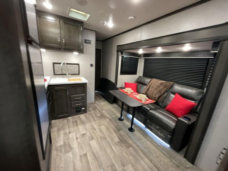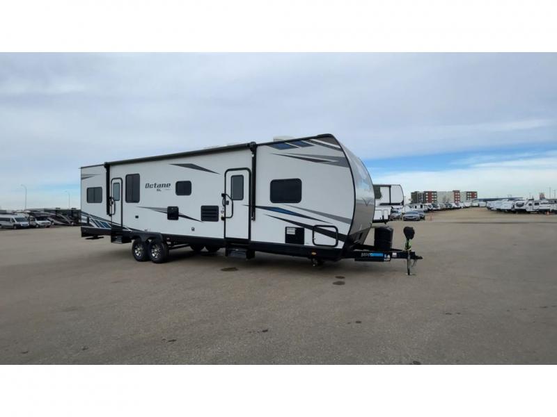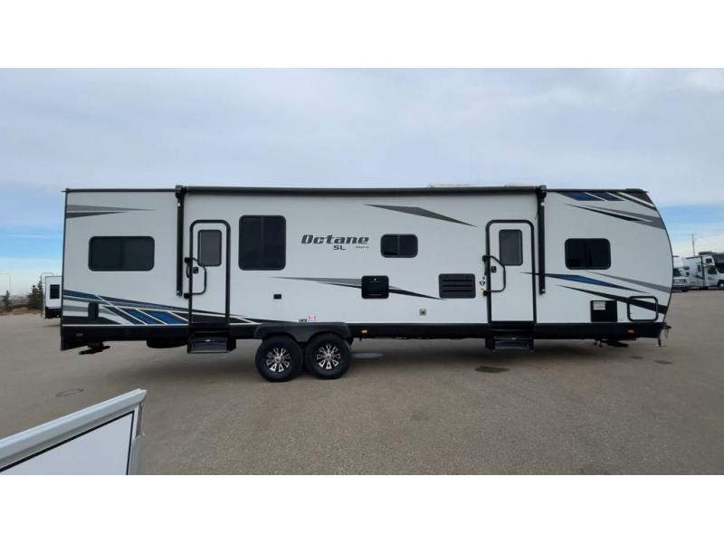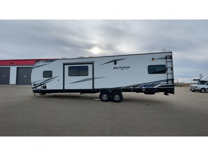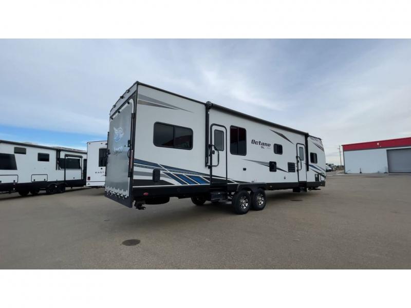 It doesn't matter why you want to get to the great outdoors; what matters is that you get there with this Octane Super Lite toy hauler! You will appreciate that this unit comes with a 12' 5" separate garage so that you can bring along any gear or toys you may want as you enjoy your next big adventure, and the two entry doors that have been installed on this unit are what allow you to choose which portion of the trailer you want to enter. Since the bathroom also has two entry doors, it is easily accessible from both portions of the trailer, and the single slide in the main living area adds extra space to enjoy the reclining sofa as you rest from all of your exhausting activities.