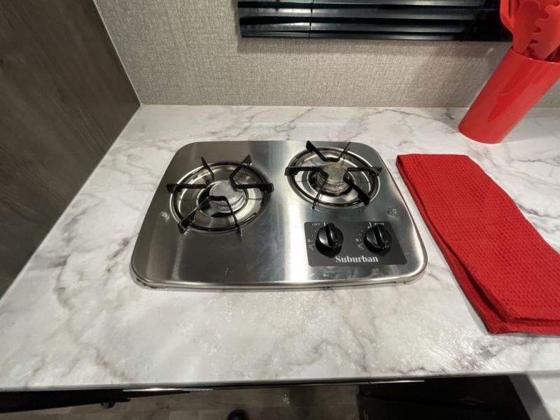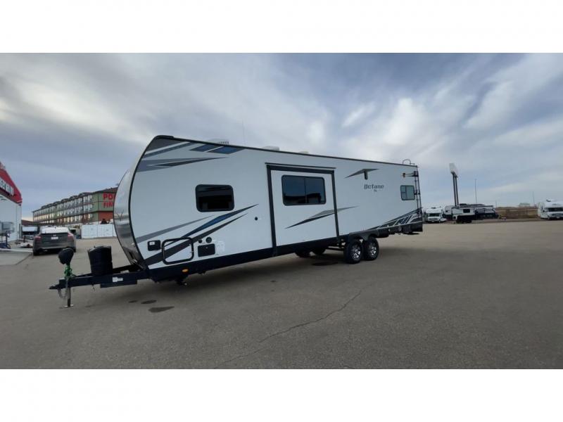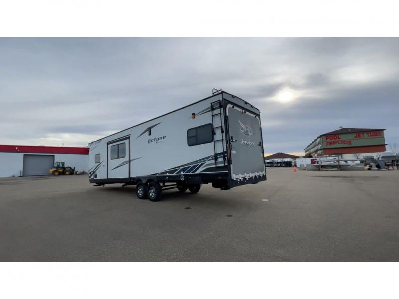 Check out Jayco's Octane Super Lite toy hauler and be impressed by the vast amount of convenient features it includes! The Octane's tires are Goodyear Endurance tires that have been made in the USA, so you know they are reliable and built to last. The enclosed battery storage box with locking door will do a wonderful job of keeping your RV's battery protected from the elements, and the Keyed Alike lockable baggage doors will keep all of your belongings safe with the convenience of one key for all doors. Each Octane will deliver a piece of home with its comfortable furnishings located throughout the interior, like the solid hardwood cabinetry, vinyl flooring, and stainless steel appliances.