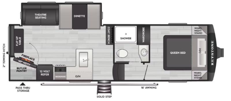 Cougar 2400RE 2026 – Cette unité combine élégance confort et fonctionnalités haut de gamme pour répondre aux besoins des amateurs de camping moderne. Profitez d’un foyer chaleureux d’un air climatisé 15 000 BTU et d’un réfrigérateur 12 volts pour un maximum de confort en toute saison. La banquette et les fauteuils style théâtre offrent un espace de vie convivial et relaxant accompagné d’une télévision pour vos moments de détente. Elle est équipée de jantes en aluminium de stabilisateurs électriques d’un auvent d’un front cap moulé ainsi que d’un système 50 AMP pour une performance optimale. Le chauffe-eau instantané et le panneau solaire 200W ajoutent confort et autonomie lors de vos séjours. La cuisine est complète avec un fourneau un poêle 3 ronds et un micro-ondes tandis que le divertissement est assuré grâce à la radio Bluetooth l’antenne TV et les hauts-parleurs extérieurs. La chambre principale dispose d’un lit queen pour des nuits reposantes.