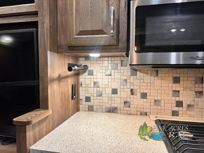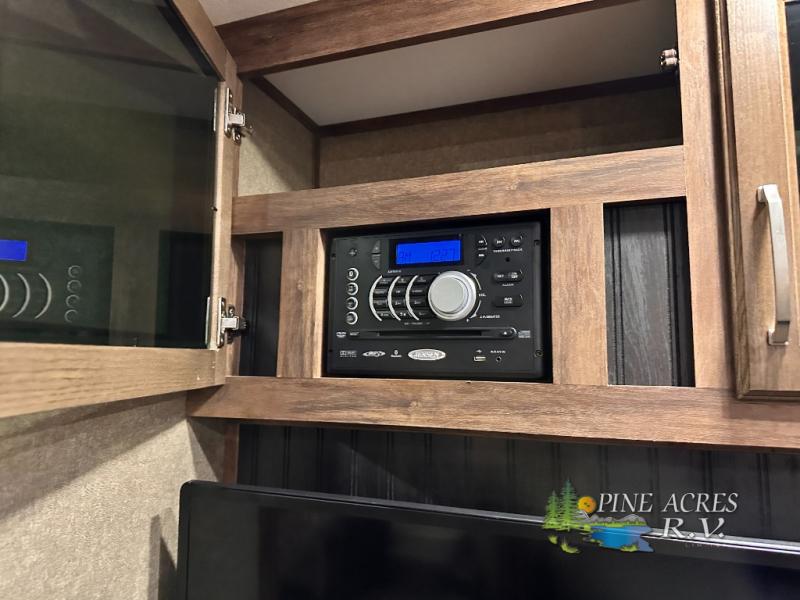 Along the rear wall you will enjoy a hide-a-bed sleeper sofa and overhead storage which makes it easy to keep things organized and tucked away, plus allowing overnight guests to be comfortable having a place to sleep, and so much more!