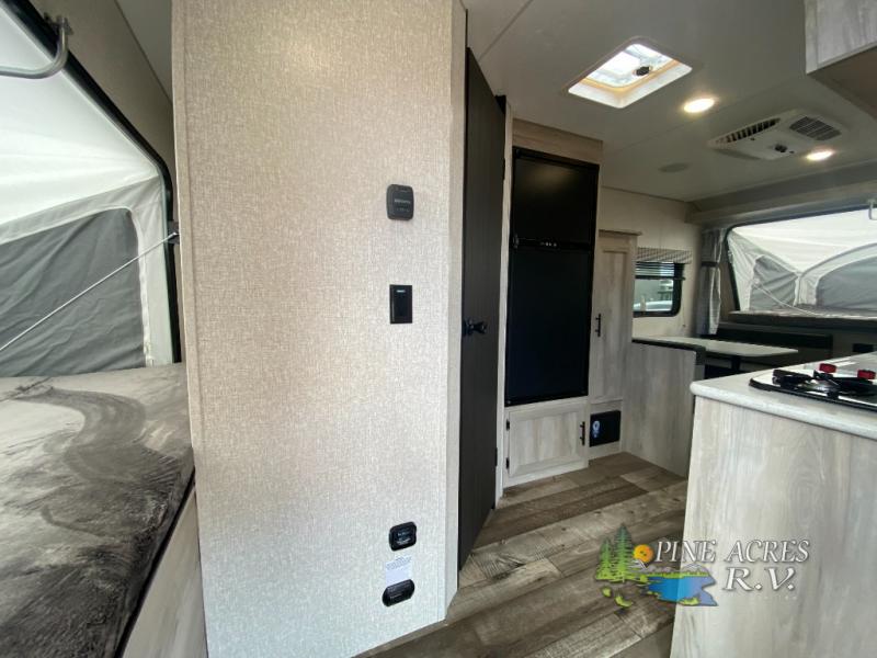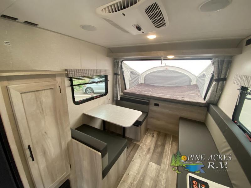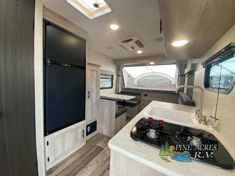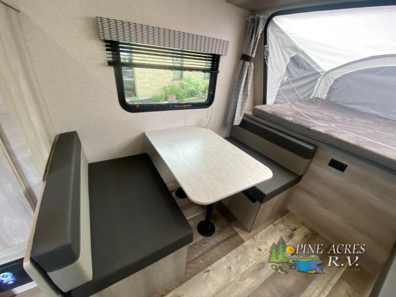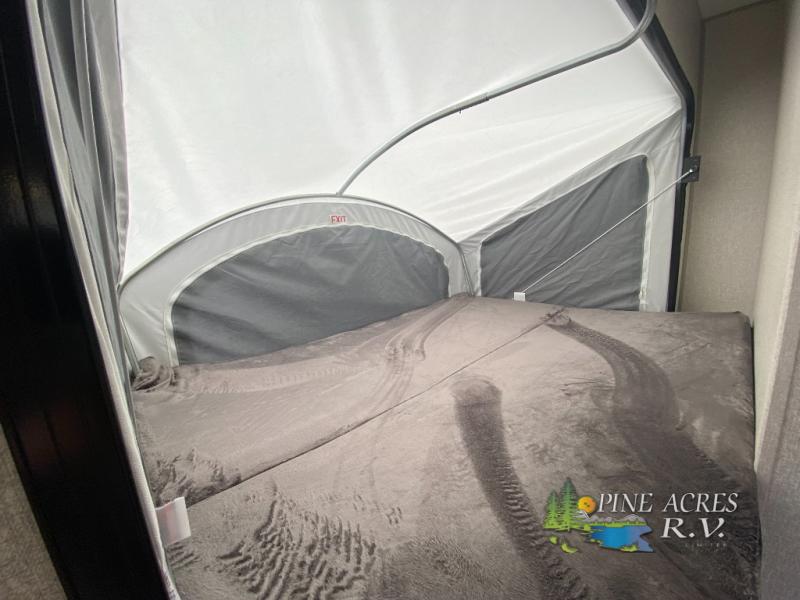 Nothing says hassle-free camping like an expandable, and this model is perfect for your group of six. There are two 54" x 74" tent end beds, a 70" bench seat, plus a booth dinette. You can prepare meals on the two burner cooktop, and dry goods can go in the pantry. This model also includes a 12' power awning that will provide shade as you visit with friends.