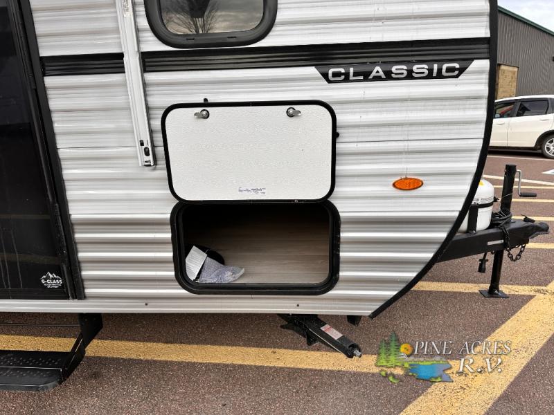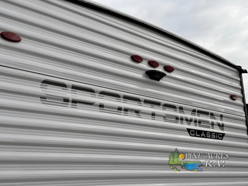 With any Sportsmen Classis travel trailer by KZ you will find durable construction materials, like the 3/8" fully-walkable roof and the one-piece seamless Tufflex material. Each model includes scissor-style stabilizer jacks, a Key-Alike program for baggage and entry doors, and a Leash Latch with a bonus beverage opener. You will find interior and exterior speakers plus backup camera prep and solar prep. The Sportsmen Classic is designed to make you feel at home with rail-style cabinet doors, residential grade linoleum, and plenty of storage space for all your belongings.