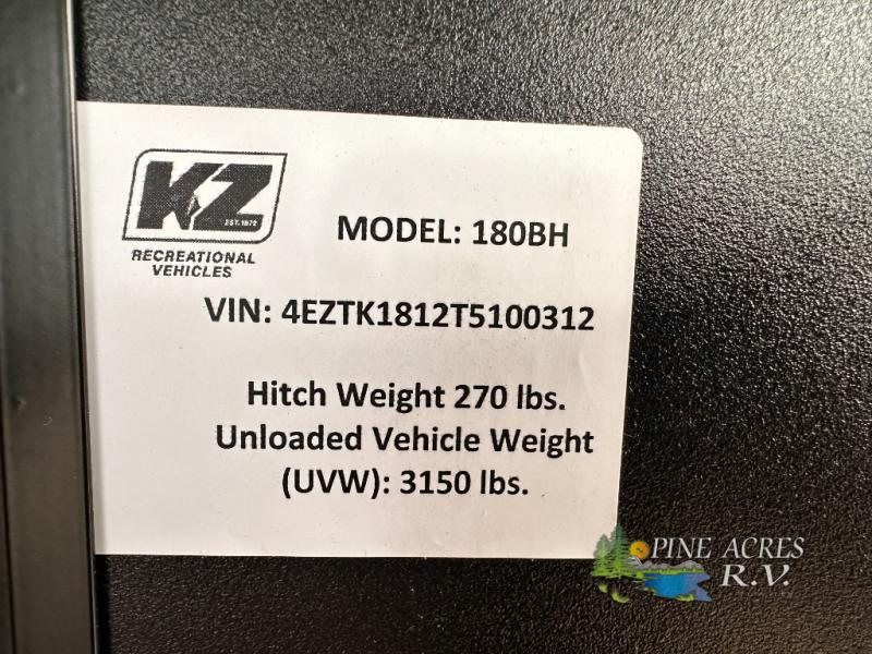 New 2026 KZ Sportsmen Classic 180BH Corner Bunks 3150 Lbs