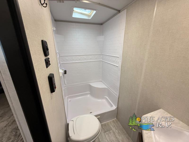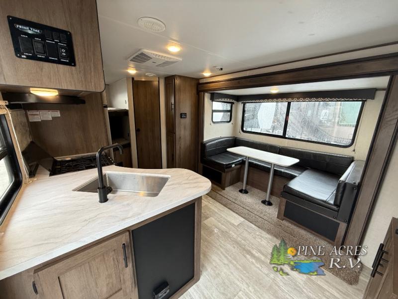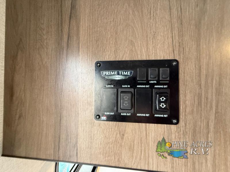With premium fabrics and beautiful interior décor, the Prime Time Avenger travel trailers offer complete customer satisfaction! The innovative and lasting construction of the Avenger provides you with confidence as you travel. The Avenger is built with a powder-coated I-beam frame, an aluminum exterior skin, a PEX plumbing system, a Dynaspan 5/8" seamless floor decking, a secure tank system, and an extreme weather package. The interior has excellent features to accommodate all sorts of traveling types with its massive under-bed storage, Bluetooth entertainment system, in-floor ducted heat, large fully vented windows, and USB ports. You will also enjoy having an exterior hot/cold shower and a doggy D-ring so that you can rinse off your puppy's paws before taking them back inside for the night.