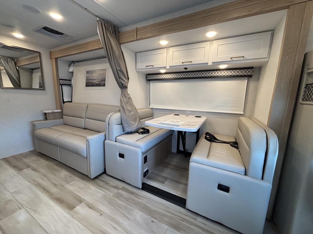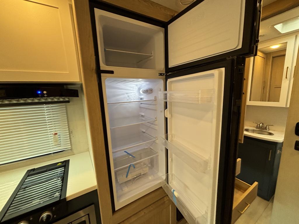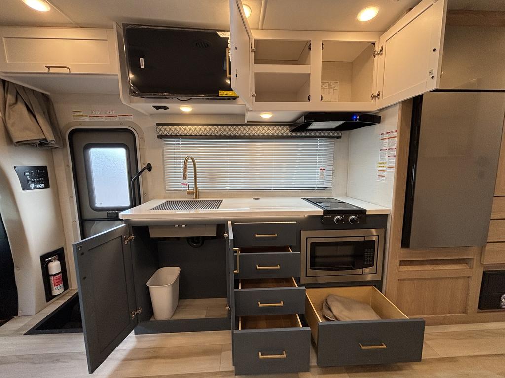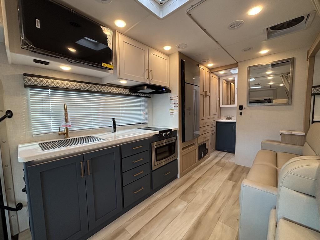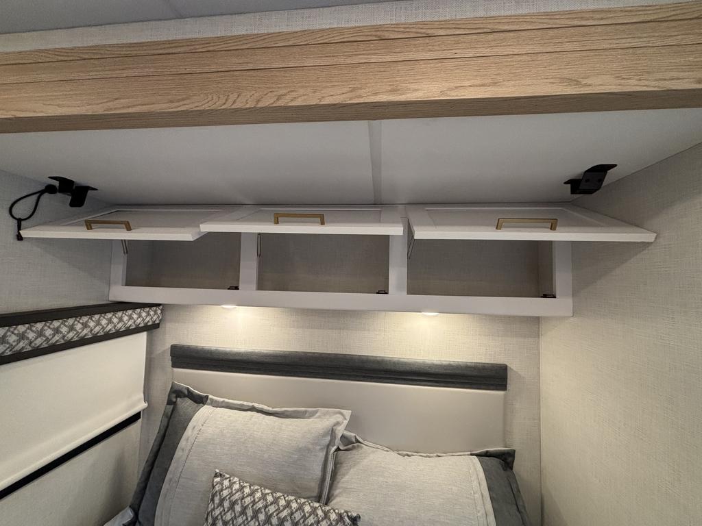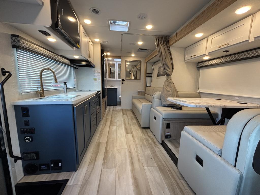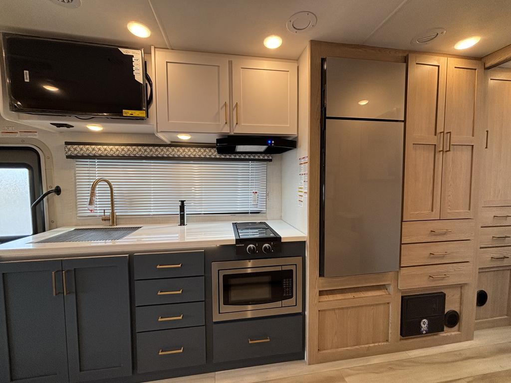 À l’intérieur, tout respire la qualité : lit Murphy grand confort, cuisine moderne avec surfaces solides, finitions deux tons raffinées, éclairage DEL, et technologie intelligente à portée de main. Le design maximise l’espace pour offrir une expérience de voyage aussi pratique que luxueuse.