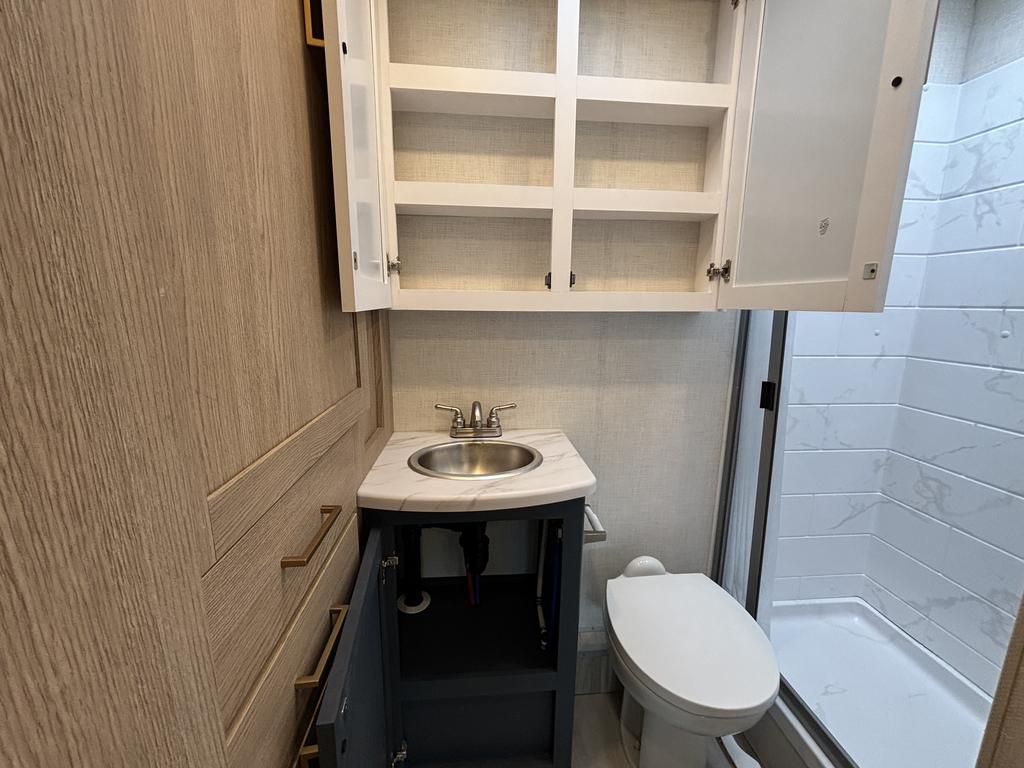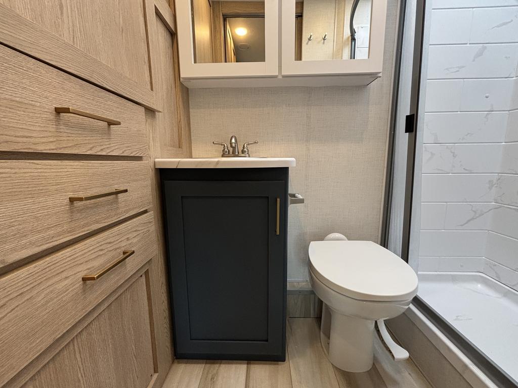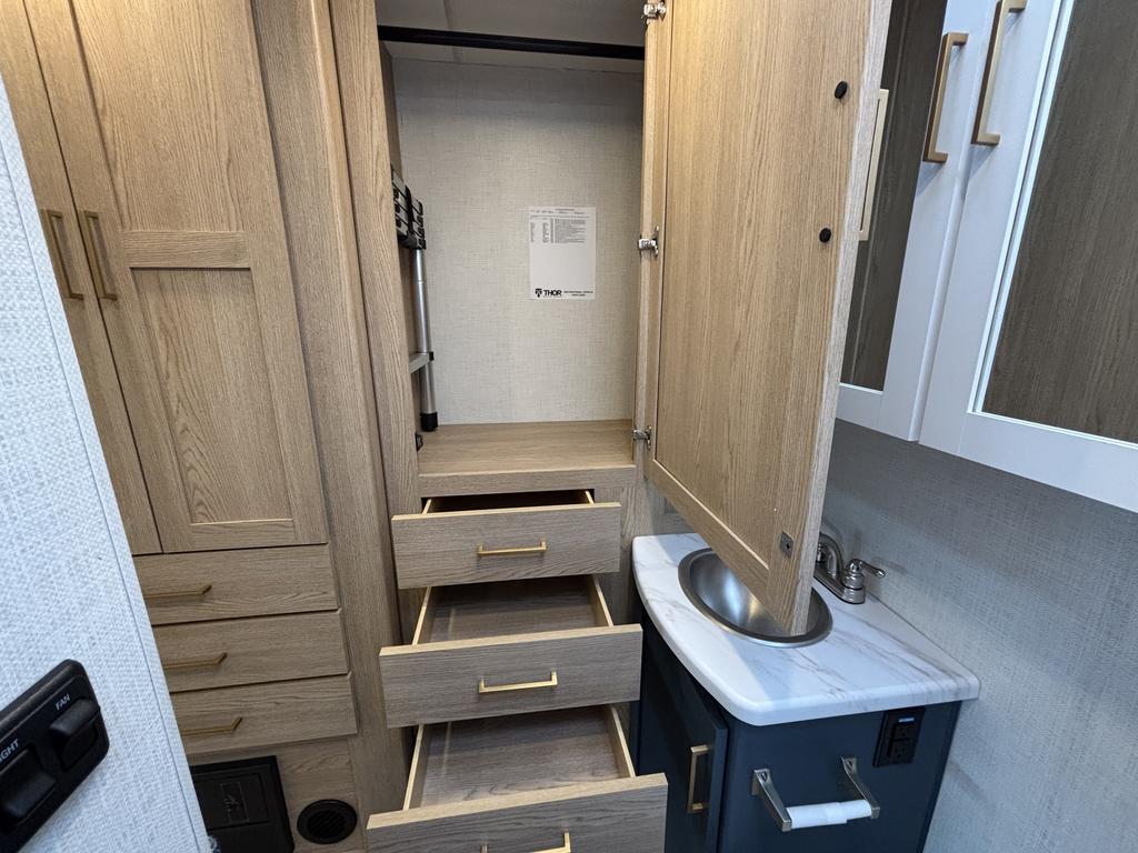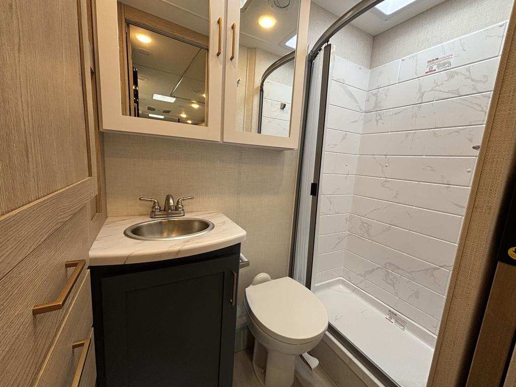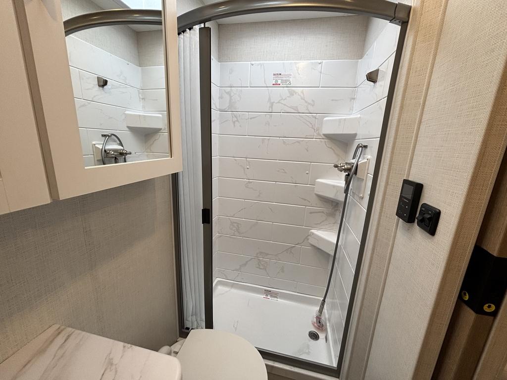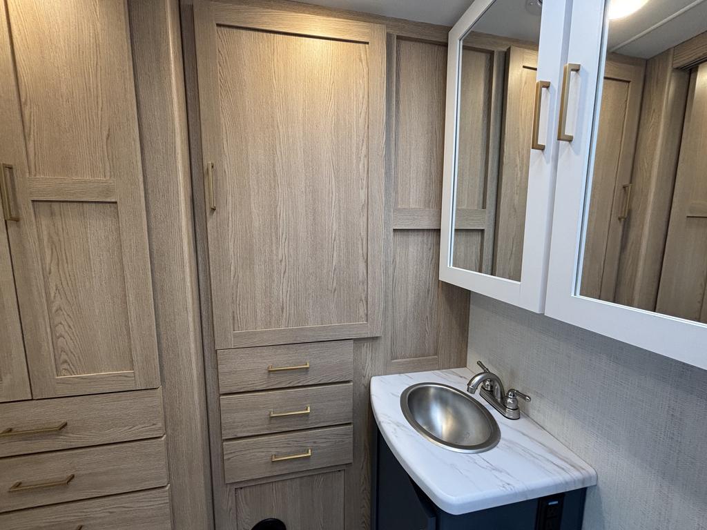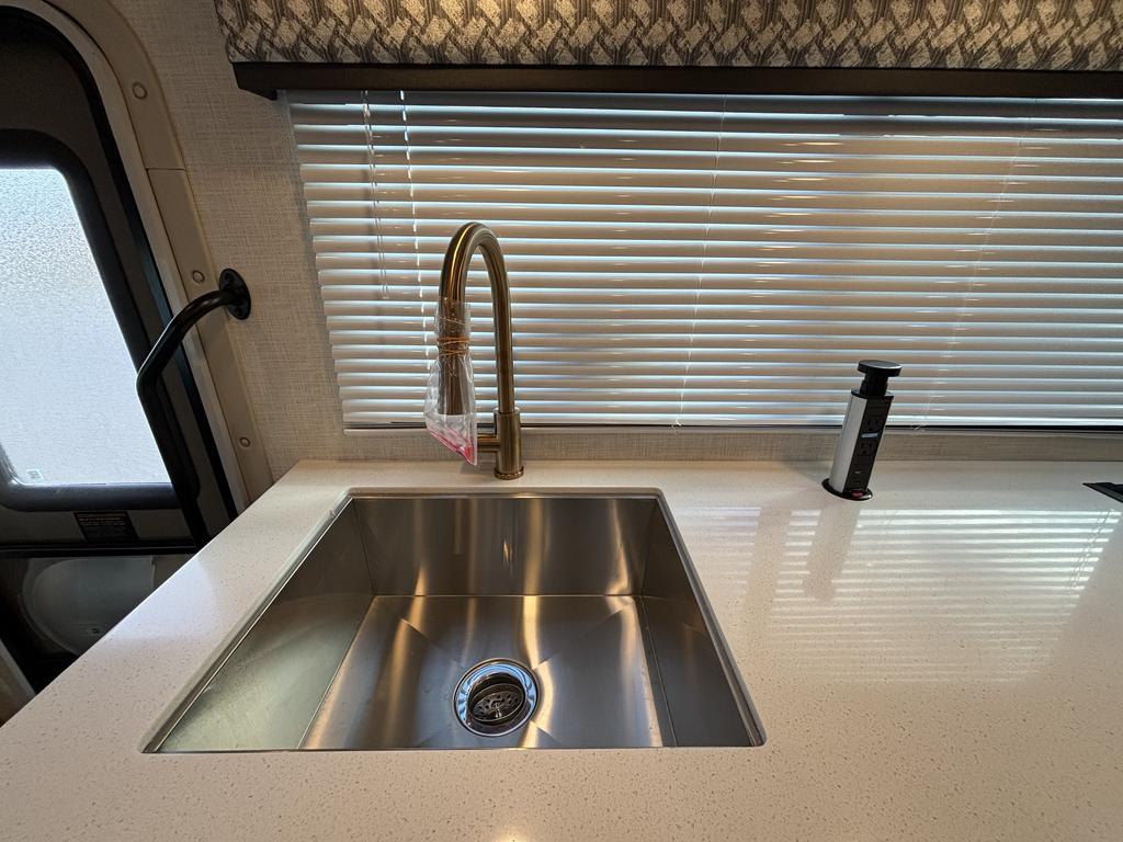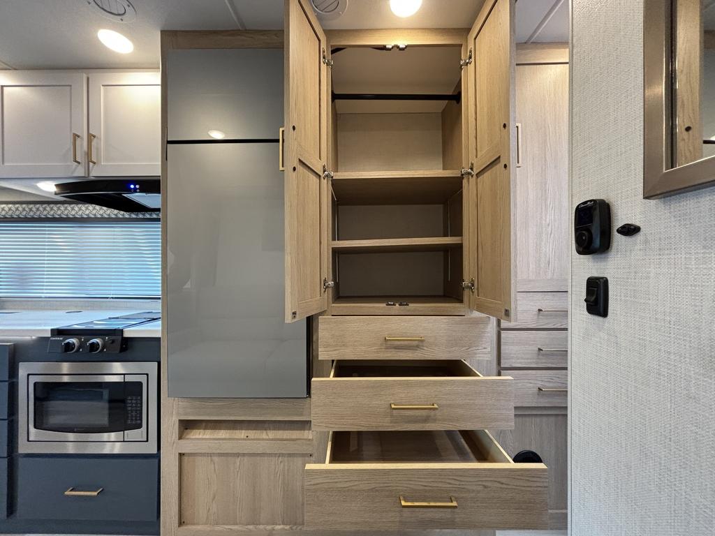 À l’intérieur, tout respire la qualité : lit Murphy grand confort, cuisine moderne avec surfaces solides, finitions deux tons raffinées, éclairage DEL, et technologie intelligente à portée de main. Le design maximise l’espace pour offrir une expérience de voyage aussi pratique que luxueuse.