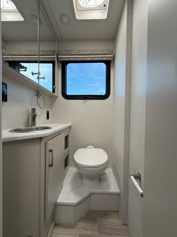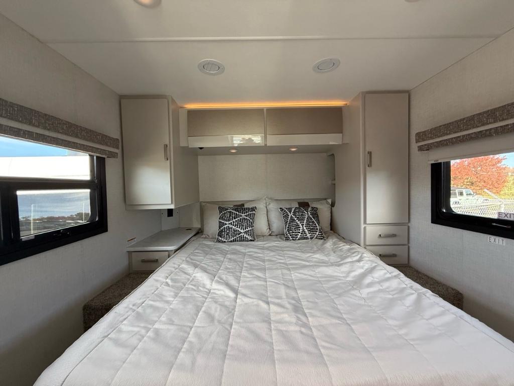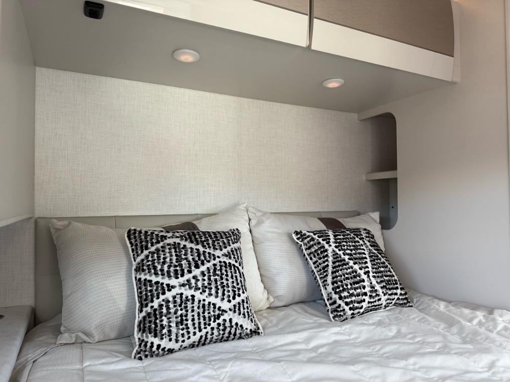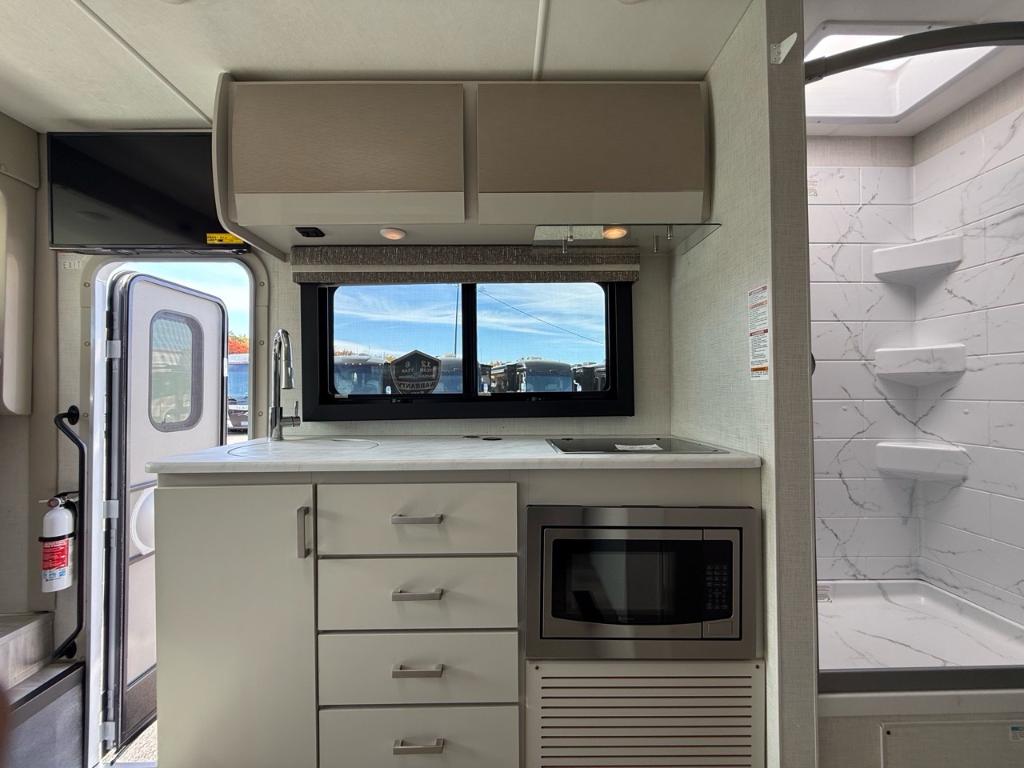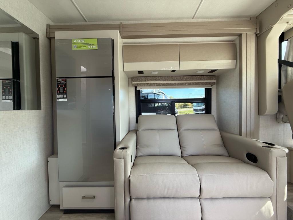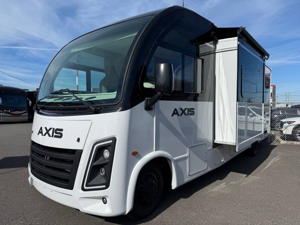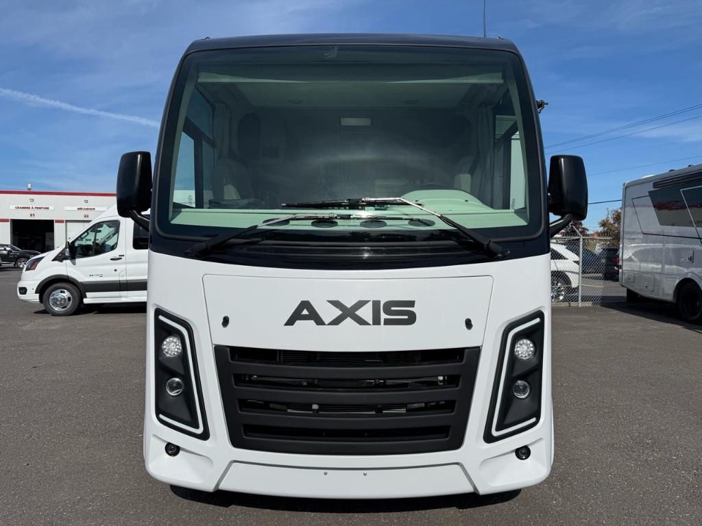 Le Thor Motor Coach Axis 26.1 est un motorisé de type Class A conçu pour allier maniabilité confort et polyvalence — parfait pour les escapades en fin de semaine ou les voyages prolongés ⚙️ Spécifications mécaniques : • Moteur : V8 – 8 cylindres • Puissance : 325 chevaux • Type de carburant : Essence • Transmission : Automatique à 6 vitesses TorqShift • Châssis : Ford E450 ???? Dimensions & Capacités : • Longueur totale : 27.17 pieds • Réservoir d’eau douce : 40 gallons • Réservoirs d’eaux usées : 70 gallons • Couchages : Jusqu’à 3 personnes Cuisine et salon bien pensés pour la vie à bord équipée de technologies modernes (four/micro-convection cuisinière réfrigérateur. ???? Salle de bain : • Salle de bain complète avec lavabo WC douche et rangements Avec sa construction robuste son design raffiné et sa capacité de remorquage c’est un modèle parfait pour ceux qui veulent explorer en toute liberté sans sacrifier le confort. Facile à conduire. Encore plus facile à aimer. Découvrez le Axis 26.1 2026 — bien plus qu’un simple camping-car de Classe A. Ce modèle compact mais puissant est le compagnon idéal pour une escapade le temps d’un week-end ou un long voyage sur les routes. D'une maniabilité surprenante et équipé de tout le confort d’un grand camping-car le Axis redéfinit le voyage en toute liberté. Prêt pour l’aventure. Conçu pour le confort. Parfait pour l’évasion. Éléments distinctifs de ce Axis : - Lit électrique au dessus de la cabine de conduite - Semi Full Paint - Jantes Noires - Armoires supérieures avec finition lustrée - Édition NIGHTFALL