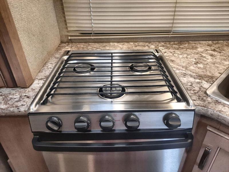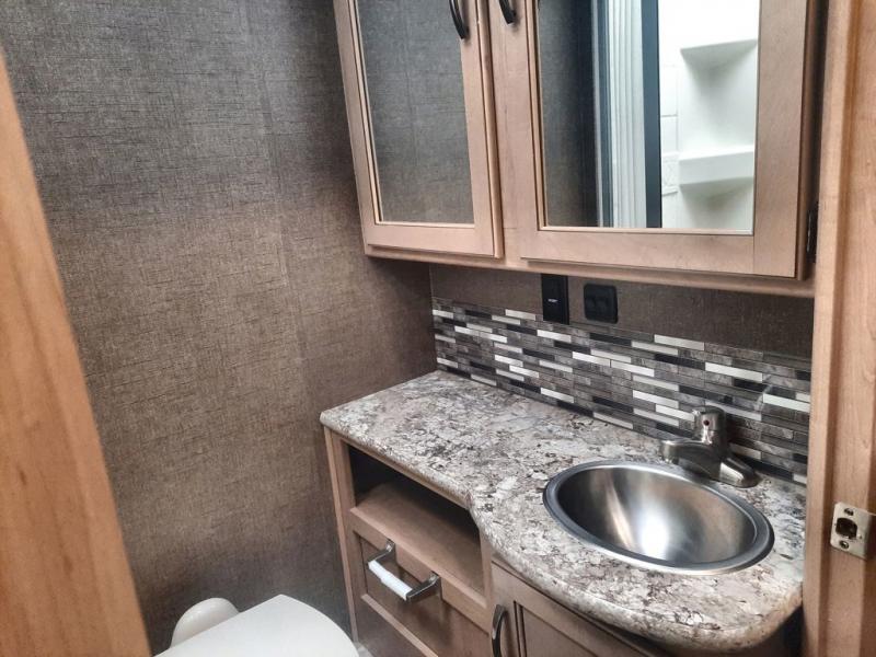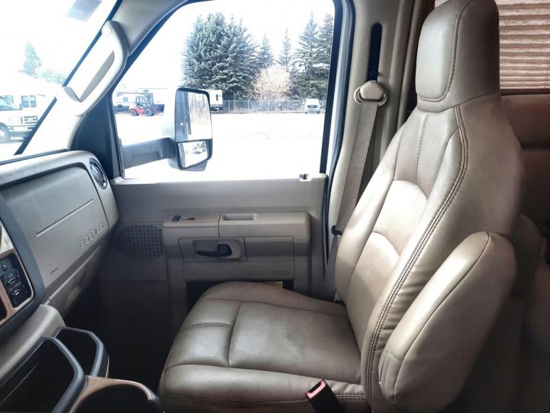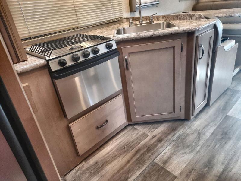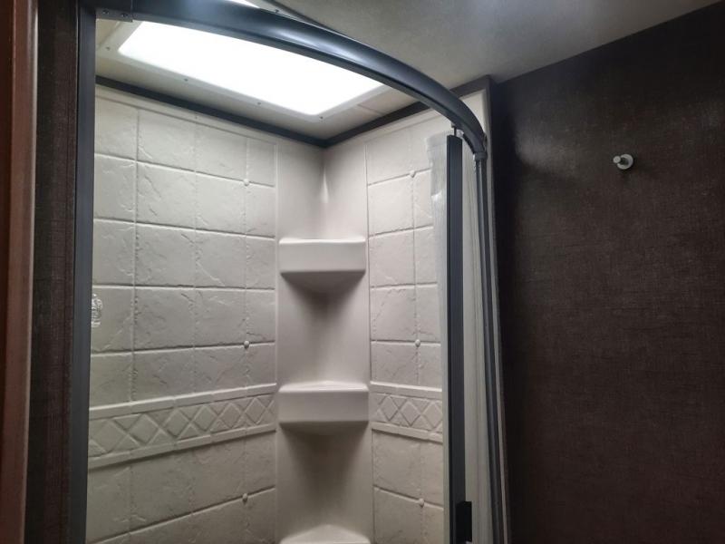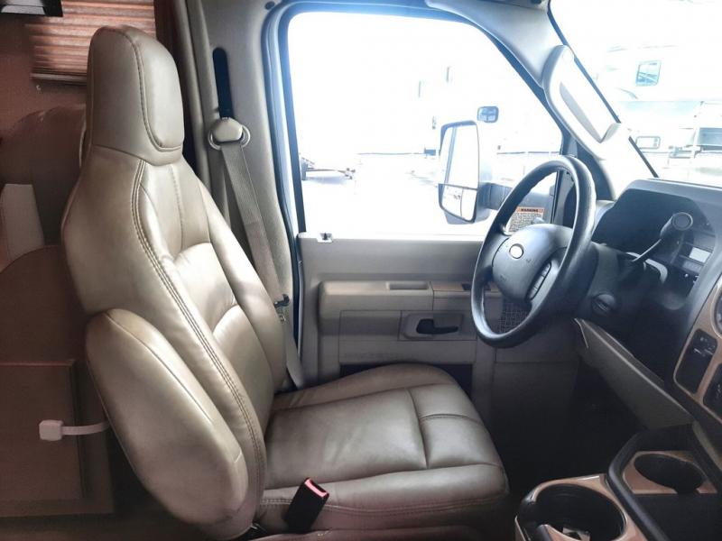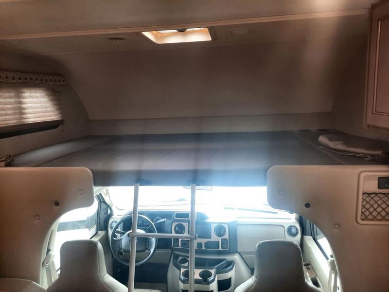 With any Four Winds Class C gas motorhome, you will enjoy the ease of driving and the affordable price. On the interior you will find residential vinyl flooring, high-sheen cabinetry with nickel finish hardware, and laminate countertops which make it easy to clean after a weekend getaway or an extended vacation. The stainless steel bathroom sink and foot flush porcelain toilet provide added convenience every where you stop, and the skylight above the shower is an exceptional feature that brings in the morning sunlight and brightens up the interior.