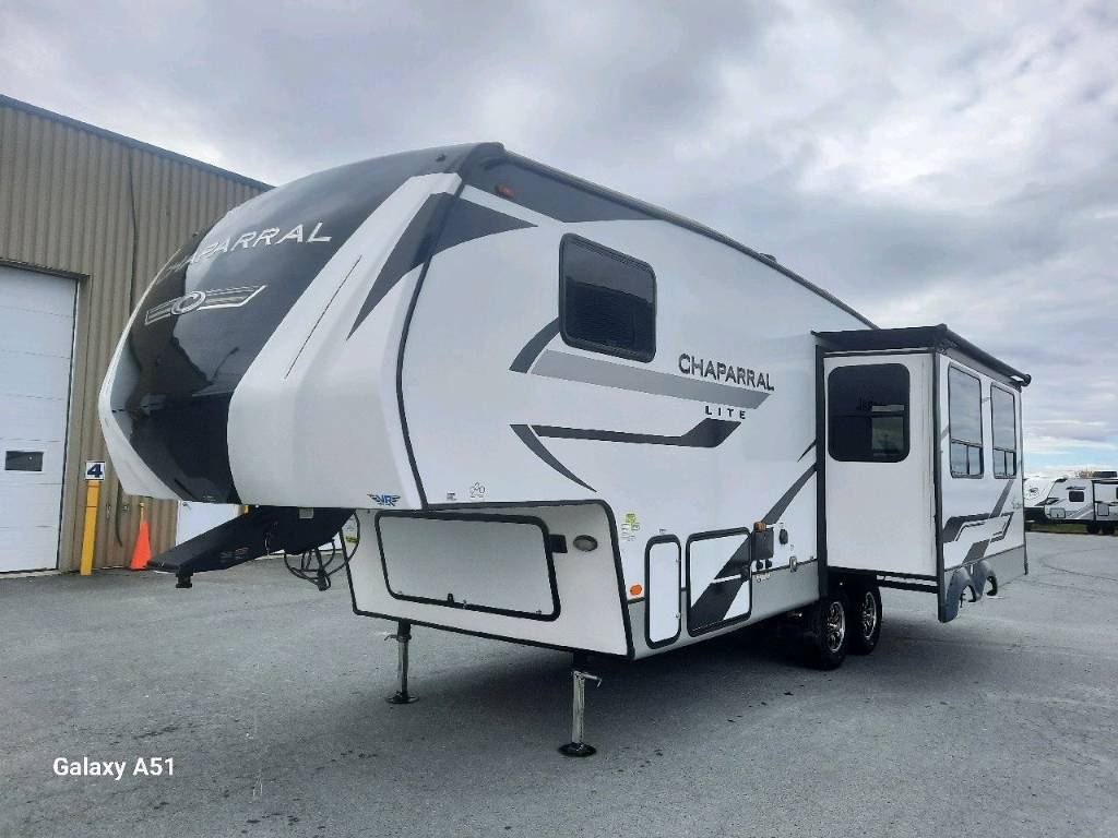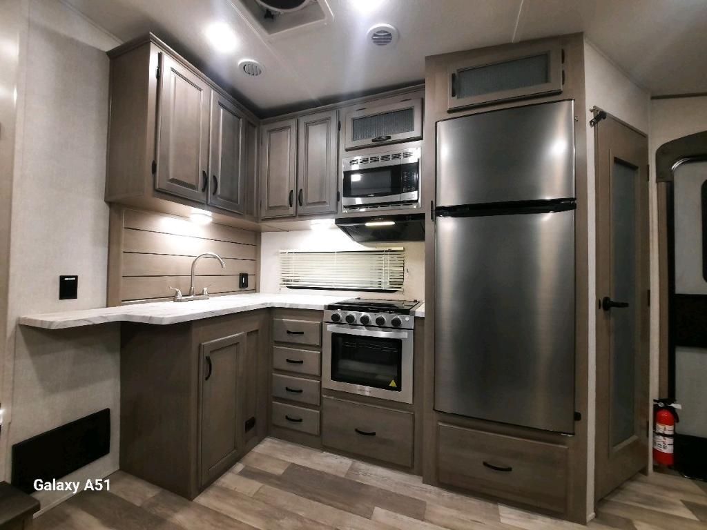 Magnifique fifth wheel de 25 pieds - 7 214 lb - chambre fermée à un lit queen sièges de théâtre télévision foyer - réfrigérateur 12 volts - mags - auvent - deux airs climatisés et plus encore!