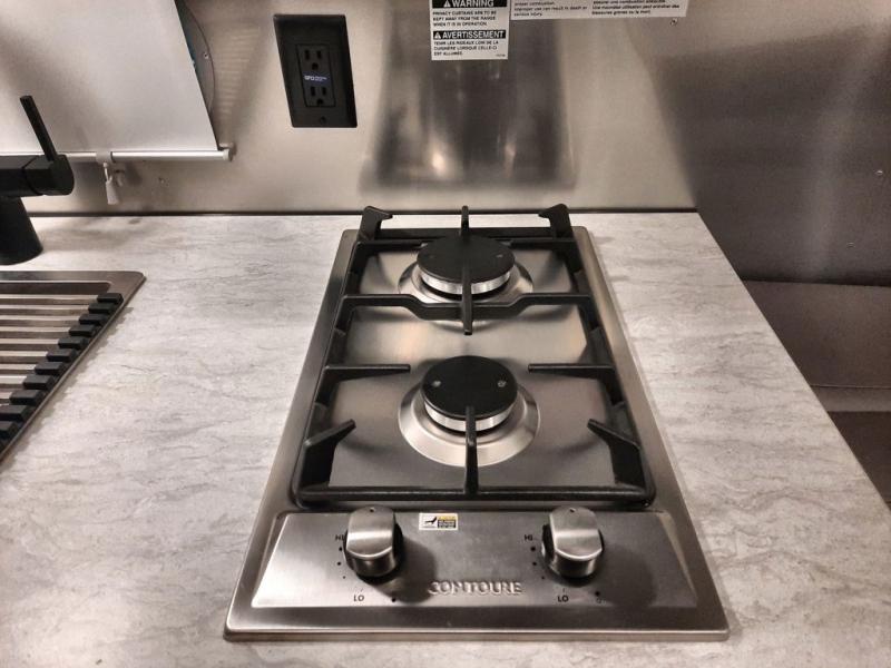 With a 16' 1" exterior length, you'll have no trouble at all getting in a out of campsites with this travel trailer. Once you've parked for the weekend, set up the manual ZipDee patio awning, then enjoy a cold drink in your camp chairs. You can head inside to prepare lunch on the two burner cooktop, or use the microwave oven. There is a stainless steel sink to clean your dishes in and a 3.1 cu. ft. 12V refrigerator for your perishables. The convenient wet bath on board allows you to stay clean throughout your adventures, and you'll find tons of storage space for your belongings. When you're ready to catch some ZZZ's, the pillow top memory foam mattress is sure to bring comfort, while your guests convert the dinette to comfortable sleeping space!