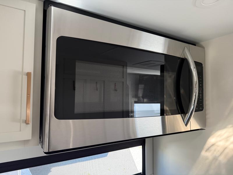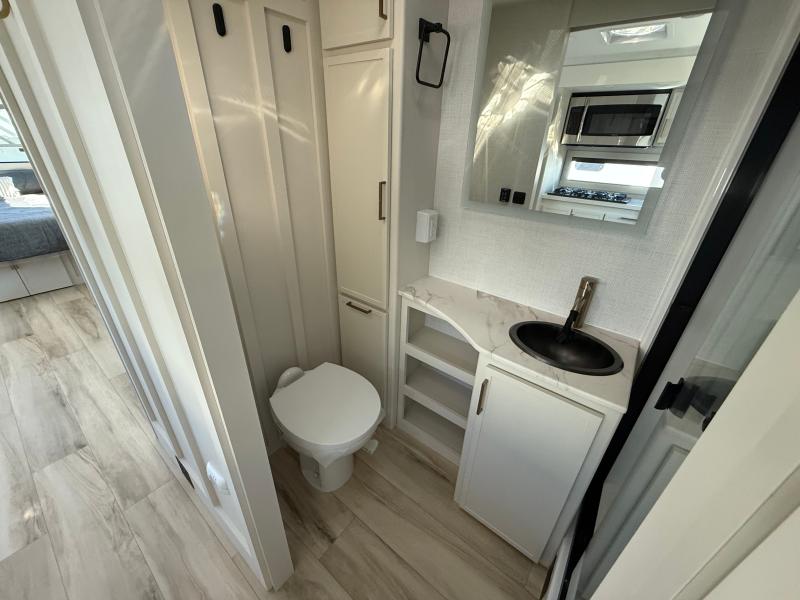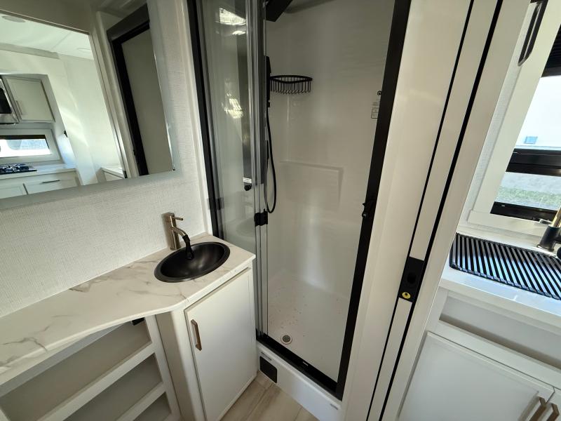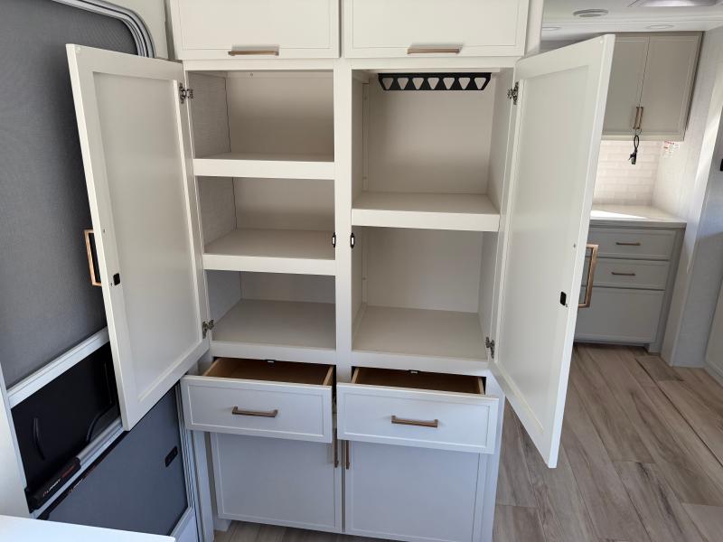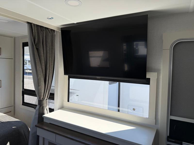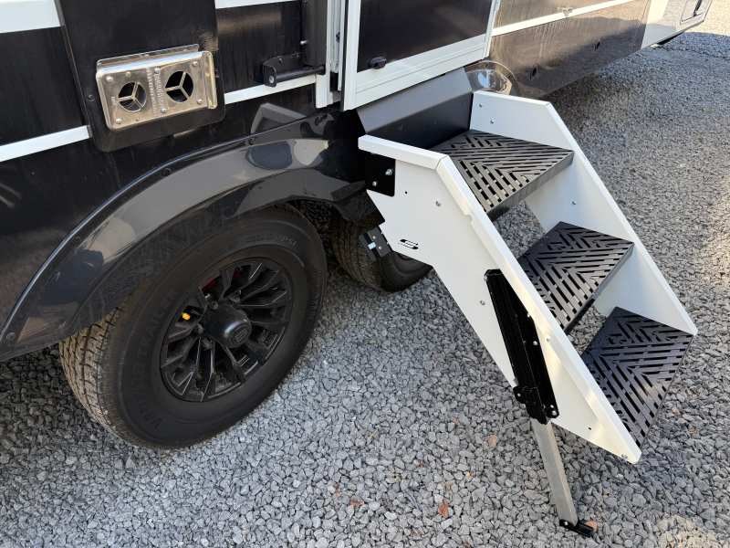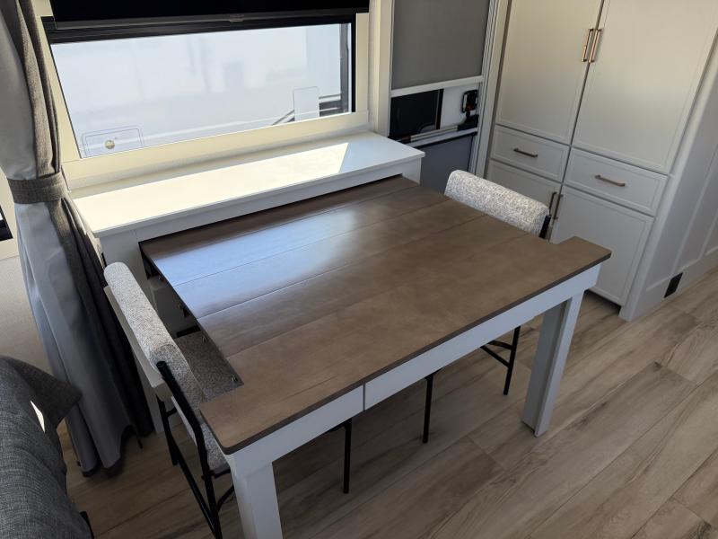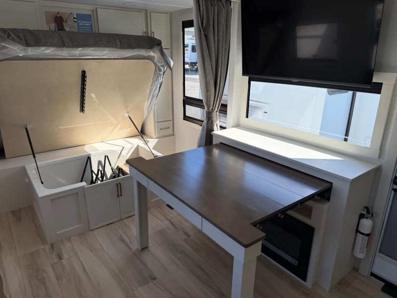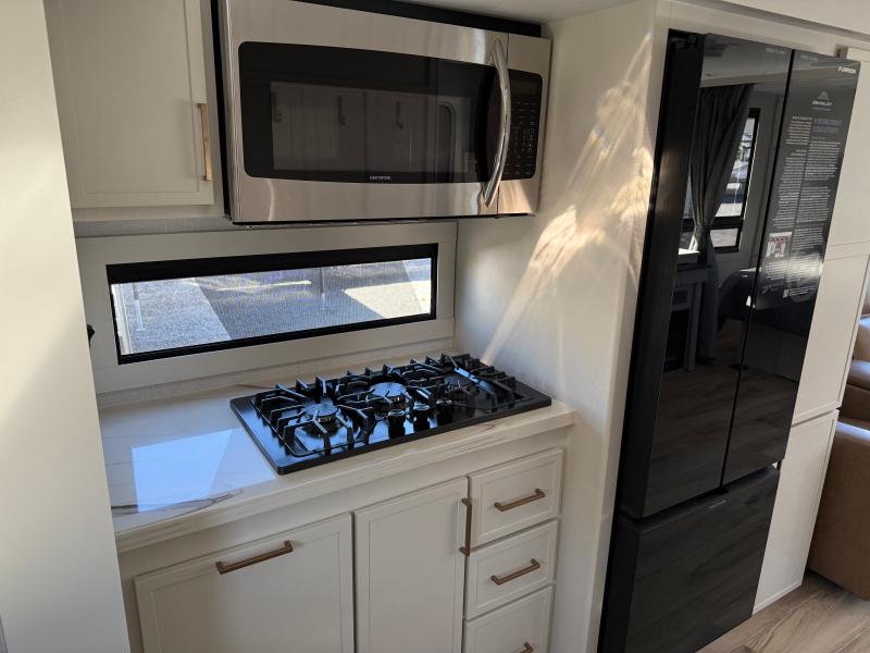 Brinkley I235 2026 une roulotte résidentielle spacieuse et confortable pour des séjours tout en détente. Elle offre un lit queen un foyer des fauteuils style théâtre un marche-pied et une échelle arrière parfaite pour profiter de chaque aventure avec style et commodité.