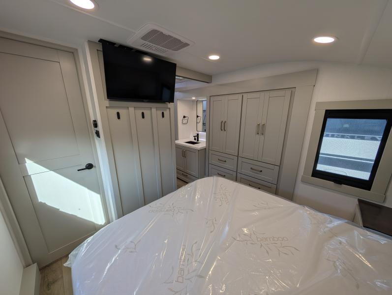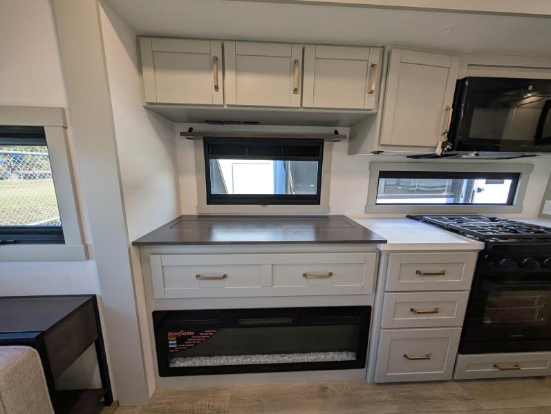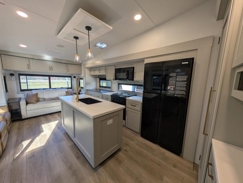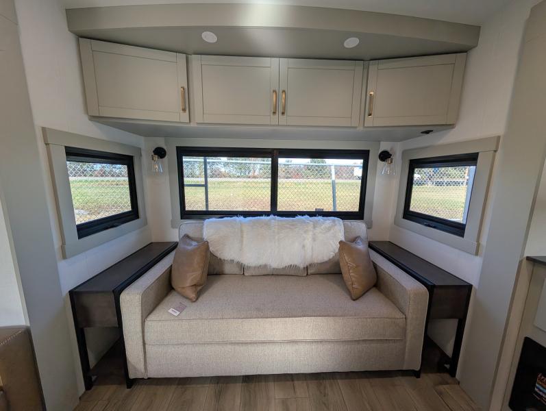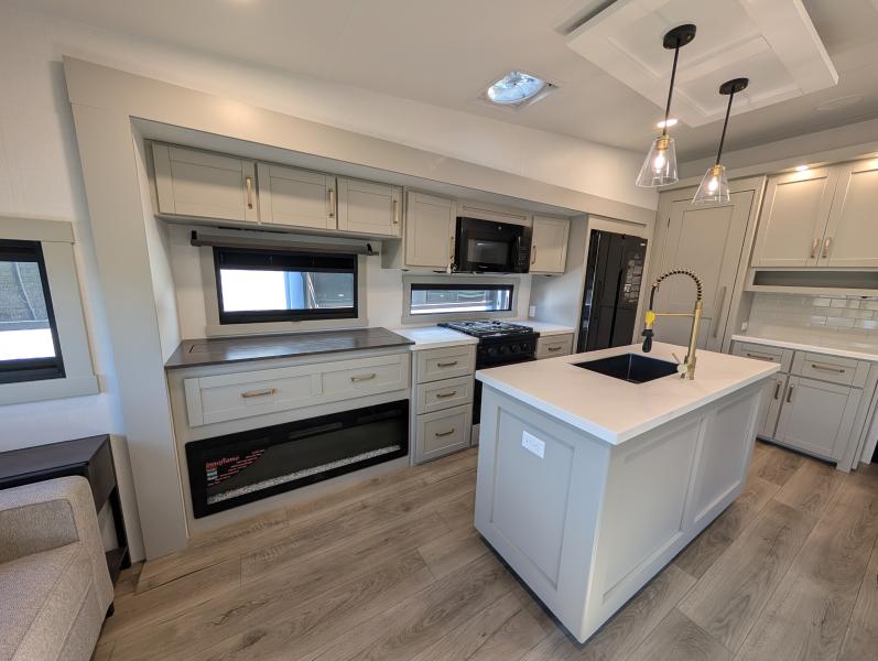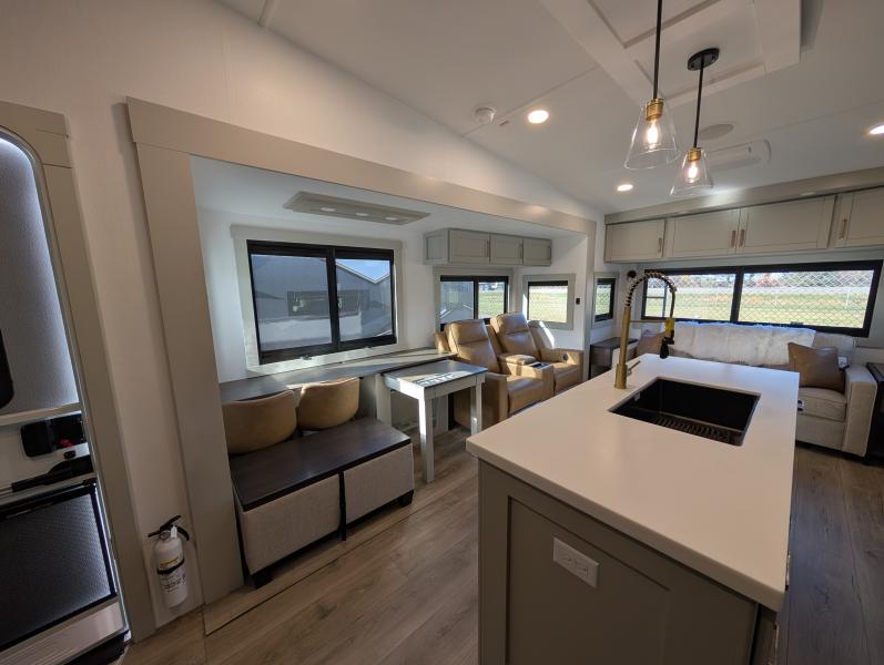 Brinkley Model Z 2900 2026 — Ce modèle haut de gamme combine élégance et confort avec un foyer chaleureux un îlot central pour cuisiner avec style un sofa-lit et des fauteuils de style théâtre pour la détente. La télévision intégrée et le lit queen offrent tout le confort d’une véritable maison sur roues.
