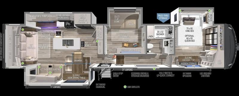Découvrez le confort haut de gamme du Brinkley Z3610 2026 une caravane pensée pour le luxe et l’espace. Son ilôt central offre une cuisine fonctionnelle et élégante tandis que le foyer et le fauteuil style théâtre créent une ambiance chaleureuse parfaite pour vos soirées. Le sofa-lit et la chambre enfant fermée assurent un maximum de confort pour toute la famille. Profitez également d’un lit king spacieux et d’une télévision pour des moments de détente inégalés.