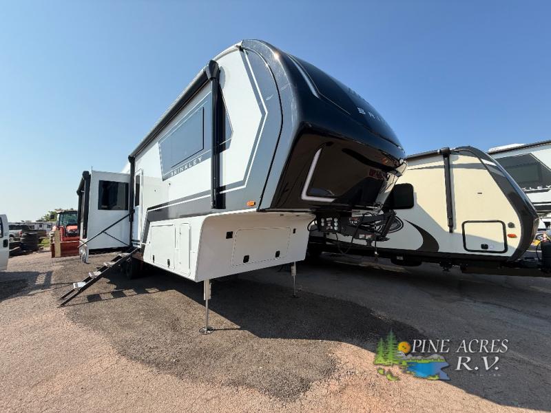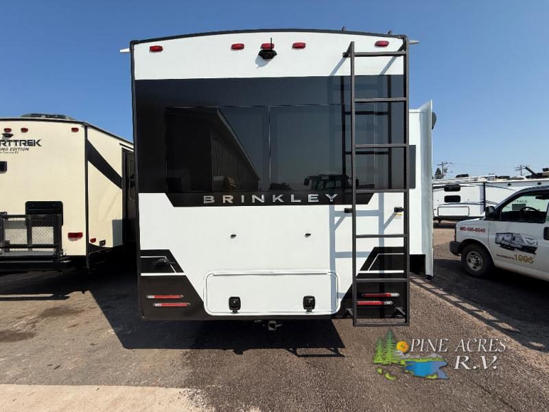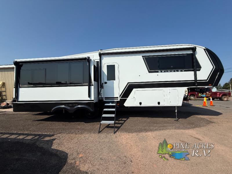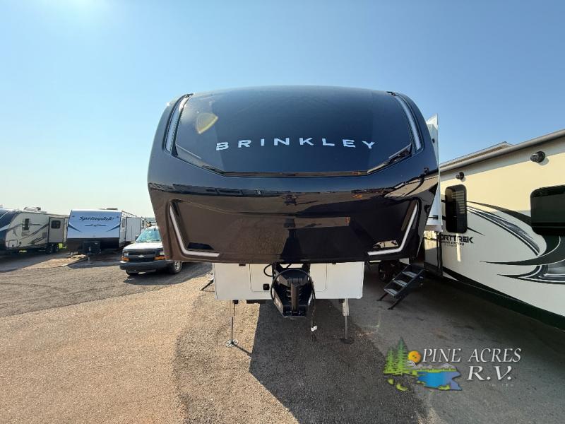 The Brinkley mid-profile Model Z fifth wheels bring you clean lines and an upscale look with plenty of style and exciting new features like the industry first brass plumbing connections. These units also feature an automotive grade front cap, plenty of exterior storage, dual exterior hot and cold showers, and wide stance leveling jacks for easy set up. Residential frameless windows provide a clean look and beautiful views, and ample electrical outlets and 6 USB/USB-C outlets allow all of your electronics and appliances to easily be used and charged.