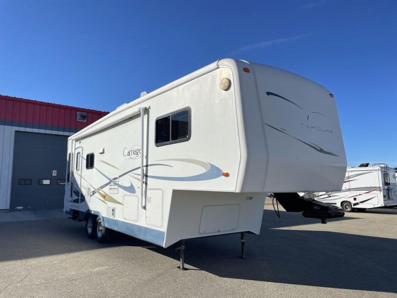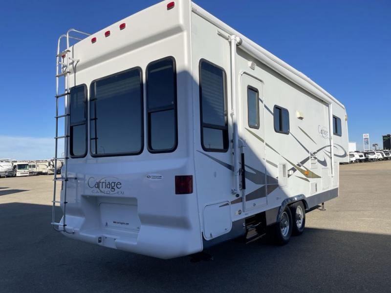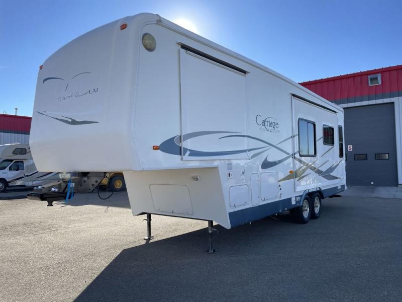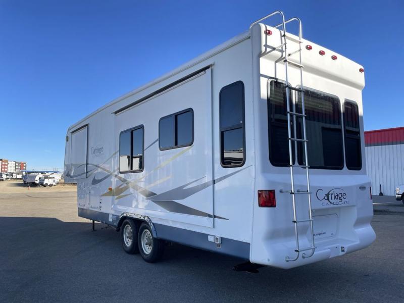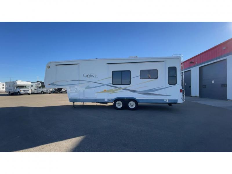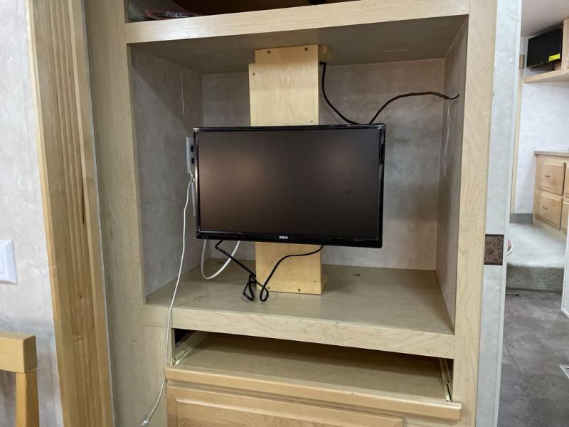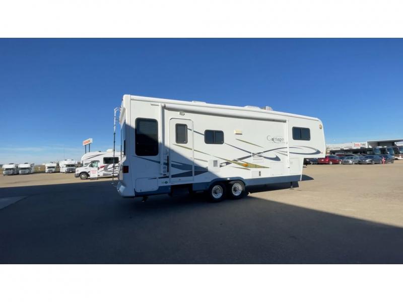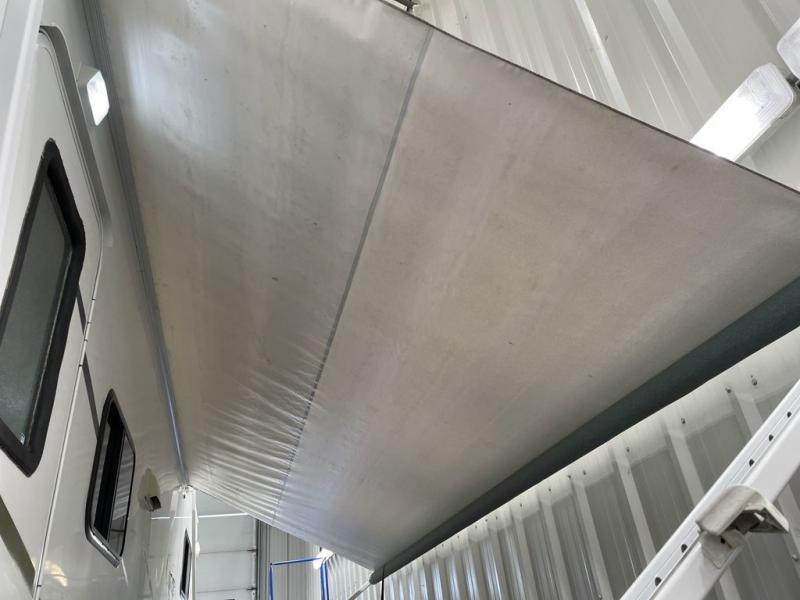 Double Slide Cameo Fifth Wheel w/Rear Living Area Including 2 Euro Chairs, End Table, Hide-A-Bed Sofa & Free Standing Dinette Slideout, Ent. Center, Ceiling Fan, Double Kitchen Sink, 3 Burner Range, Pantry, Refrigerator, Angle Shower, Private Toilet Area, Lav., Linen Cabinet, Front Queen Bed Slide, Window Seat, Drawers, Ward. w/Shelf & Much More.
