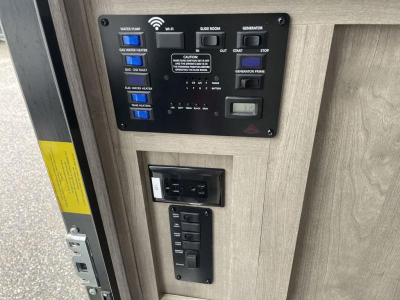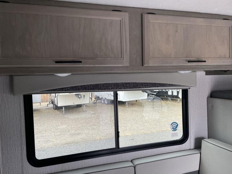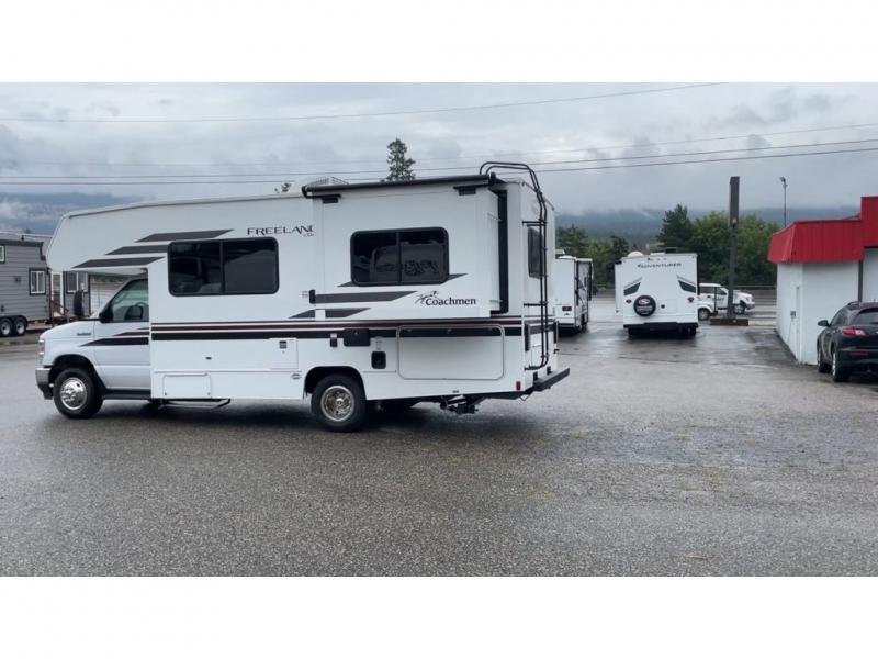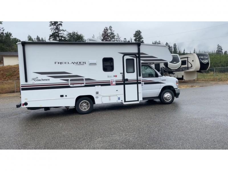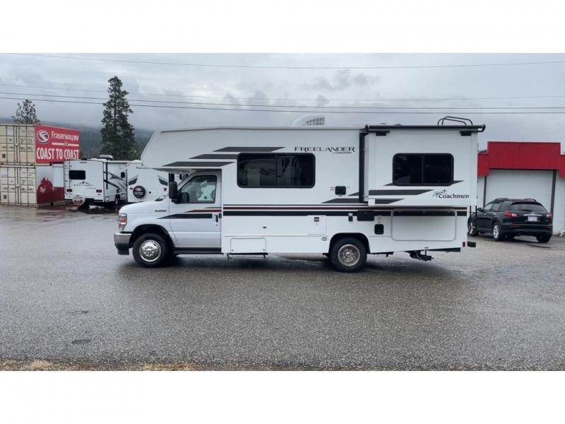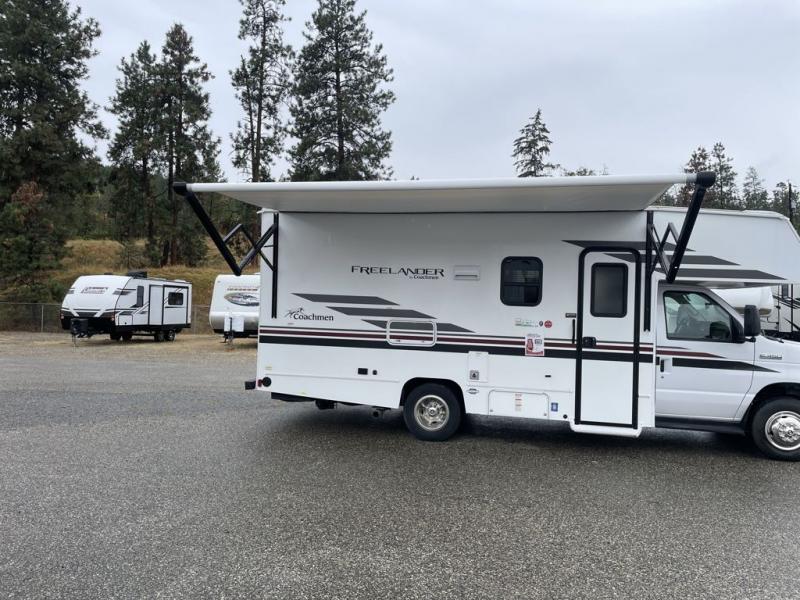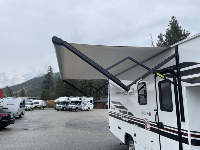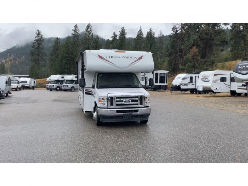 With the Coachmen Freelander motorhome you will get a reliable and quality Class C gasoline coach that contains more factory-installed features than anyone else. The Freelander features Azdel composite sidewall substrate and a fiberglass exterior to keep the entire structure lightweight. You will love the interior with its hardwood cabinet doors and drawer fronts, pleated night shades, a skylight over the shower, plus a systems command center to control your units functions in one convenient location. You can bring along all of your belongings with the roto-cast rear warehouse storage compartment, and the power awning includes vinyl weather guard to help protect from the elements, plus there are LED lights for an inviting outdoor living space.