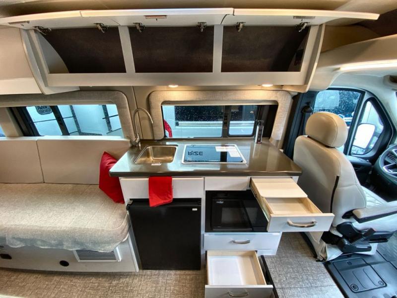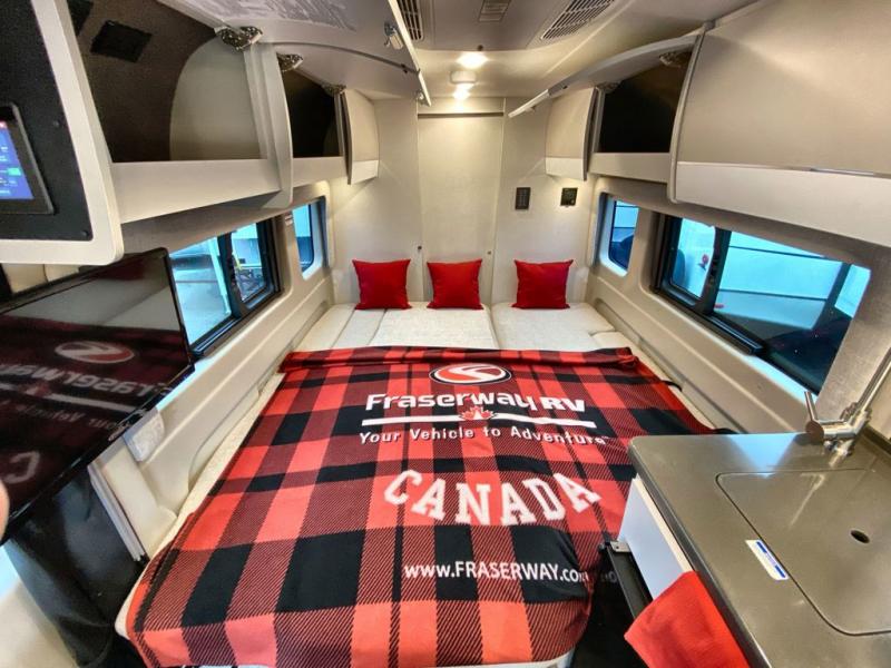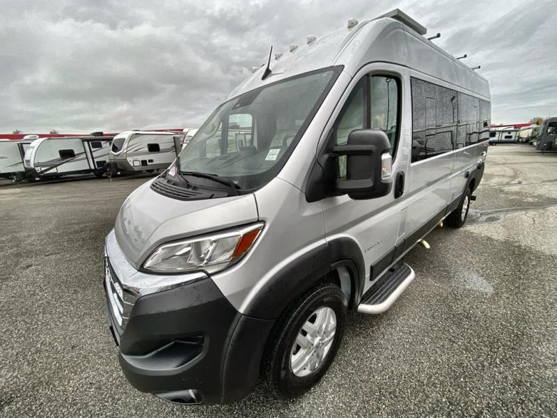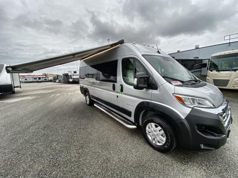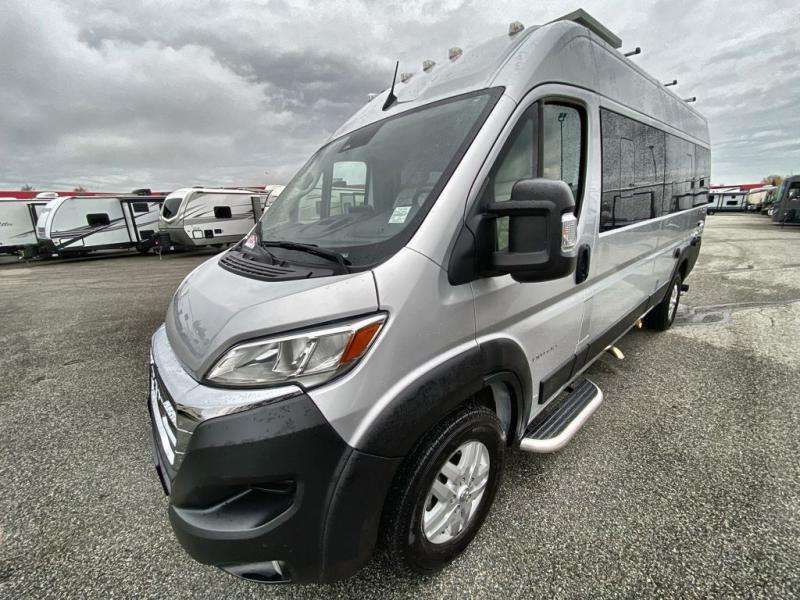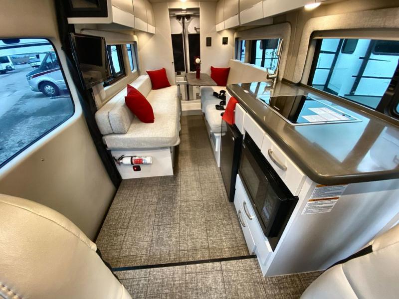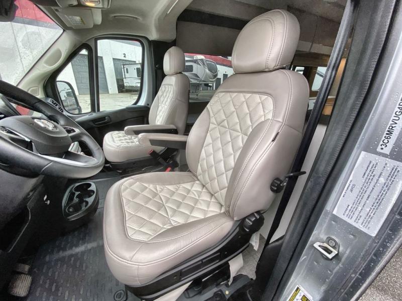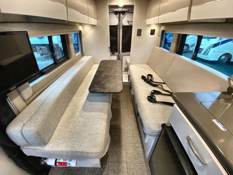 Your trek across country is made comfortable in this coach for two. You can swivel the captains seats around when you get to your destination, or head outdoors to sit under the 13' Thule armless awning with LED lights. The pull-out table indoors will provide a space for your coffee in the morning, while breakfast is being cooked in the convection microwave or on the two burner cooktop. A rear wet bath will allow you to stay clean throughout your trip, and you'll find plenty of storage space for your belongings. You'll love the versatile sleeping arrangements in this model that includes twin-size beds with a filler cushion that converts to a king-size bed, plus there is under-bed storage for your luggage. The optional Li Package can also be added which features a 48V-165 amp hour smart lithium battery, providing 7.9KW hours of power, and more; see dealer for more details!