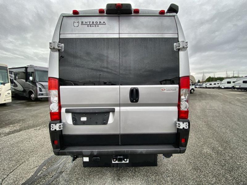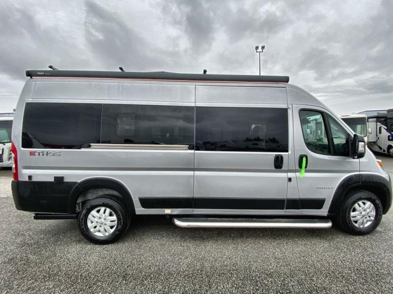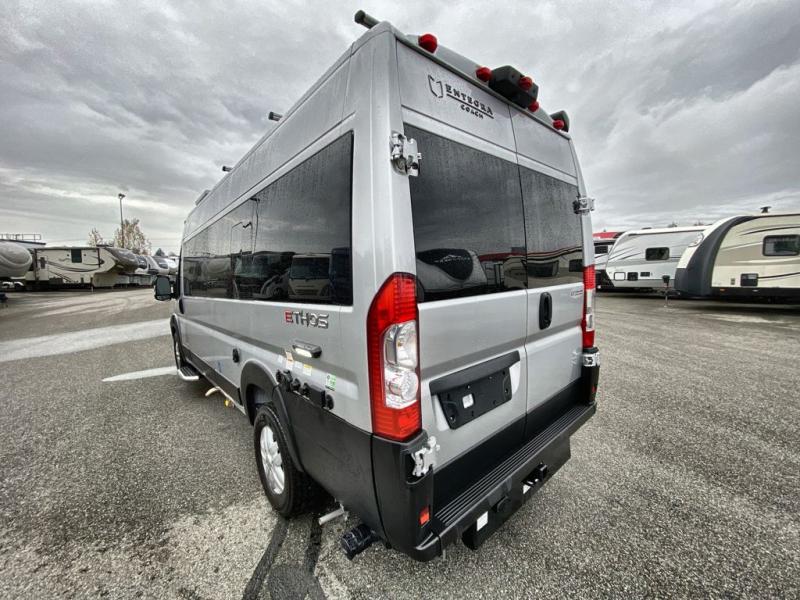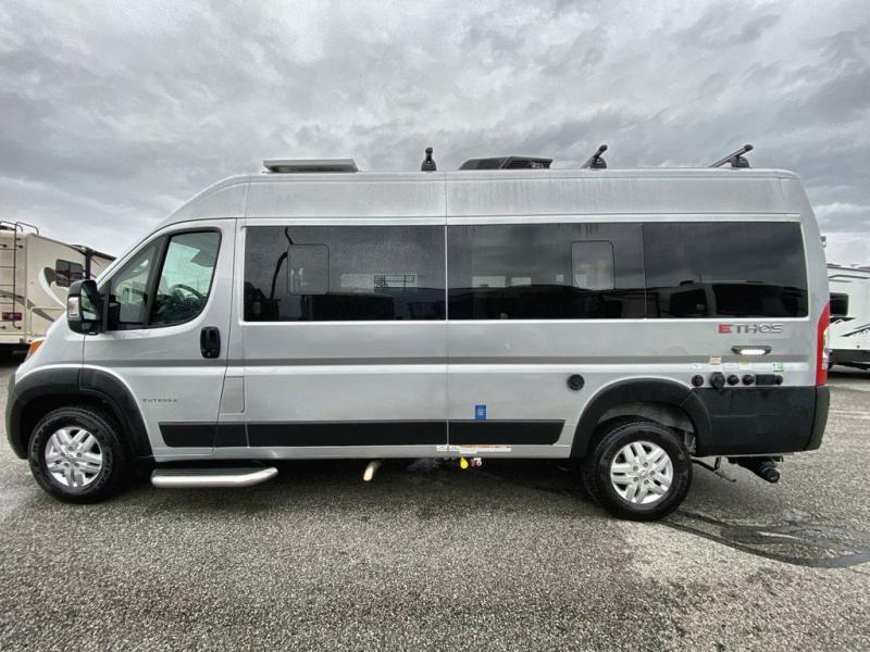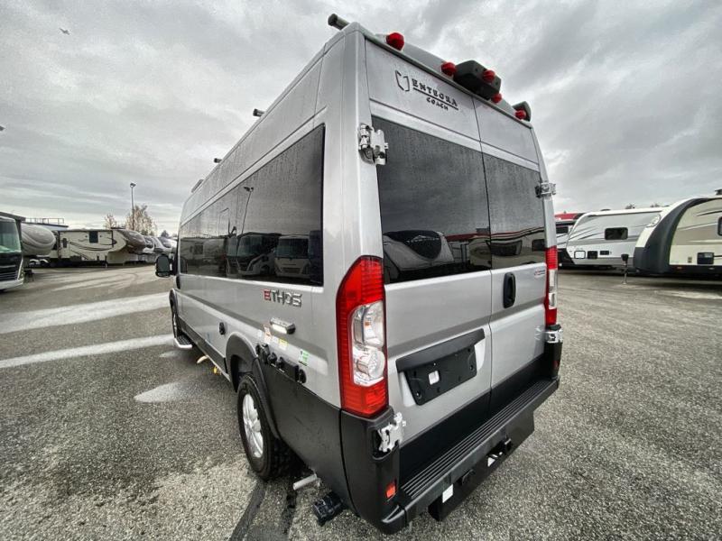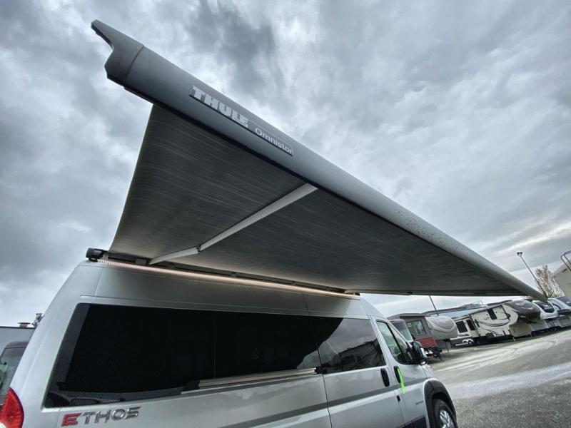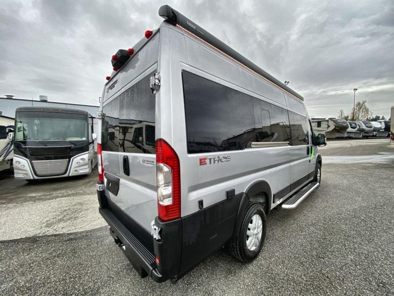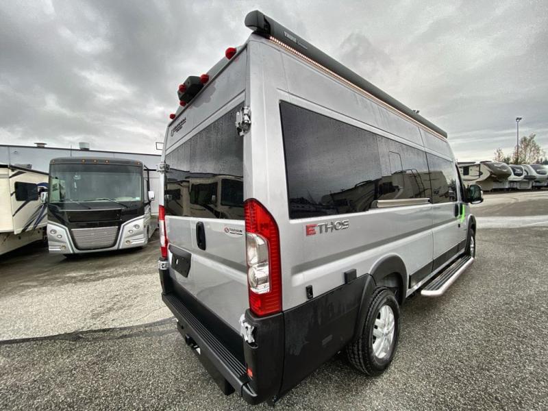 With any Ethos Class B gas motorhome by Entegra you will find helpful technology features, luxury amenities, and a smooth drive thanks to the E-Z Drive system. The 3.6L V6 24V VVT 276HP engine will power your trips near and far, plus there is an Onan 2800-watt gas generator on board and a 1,000-watt inverter. Put the 200W solar panel to use and you can do a little off-grid camping! Each model also includes a Truma Combi Eco Plus water heater and furnace, a 13,500 BTU A/C, a water filtration system, plus many more convenient systems. A Uconnect 5 NAV infotainment center comes standard, along with a backup camera and a cab area privacy shade. You'll be traveling in luxury with residential vinyl flooring, Technoform European-style high-gloss cabinetry, a soft-touch vinyl celling, and solid surface countertops. Start a new adventure today in an Ethos Class B gas motorhome today!