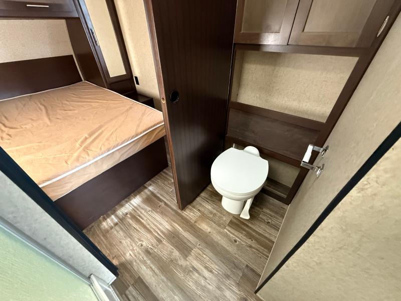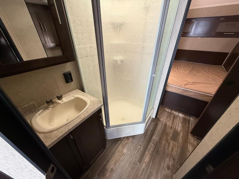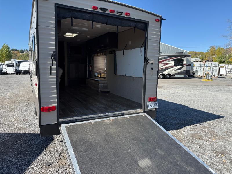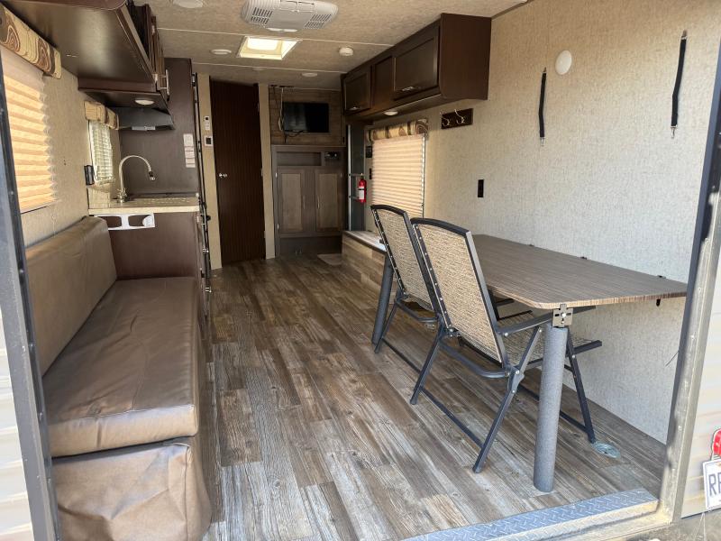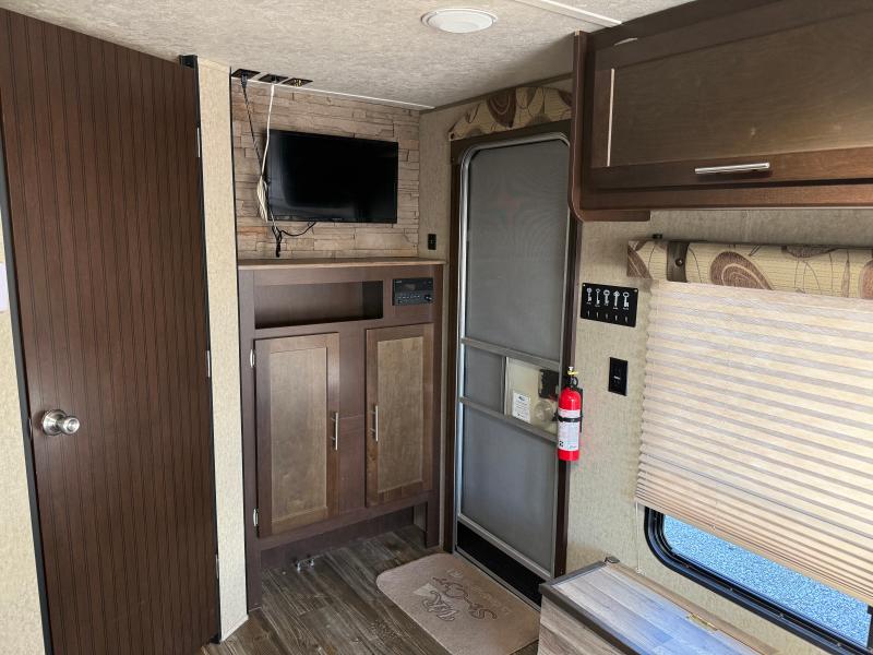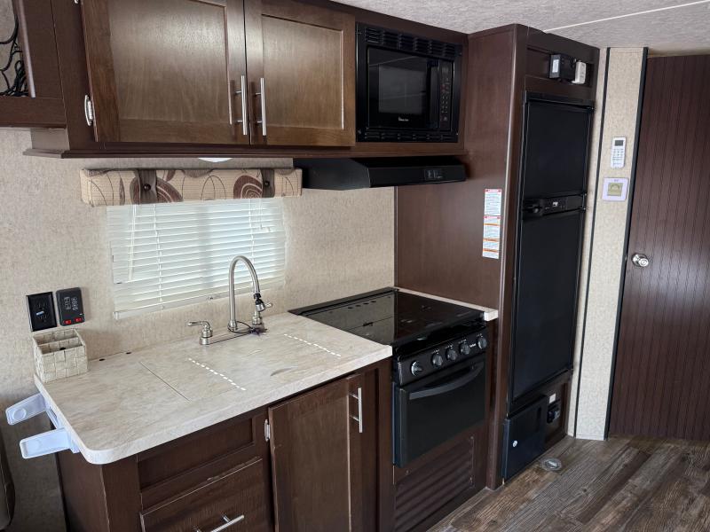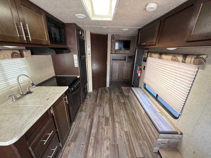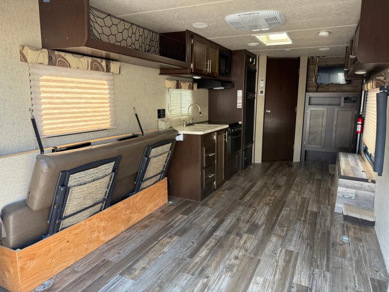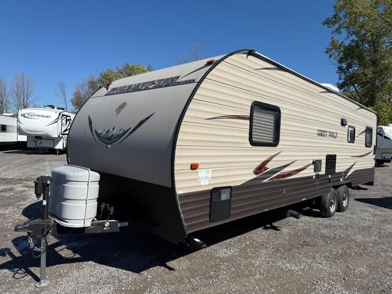 Cherokee Grey Wolf 26RR 2016 une roulotte compacte et confortable idéale pour les escapades à deux. Elle dispose d’un lit queen d’un réfrigérateur au gaz et d’un air climatisé 13 500 BTU offrant praticité et confort pour toutes vos aventures.