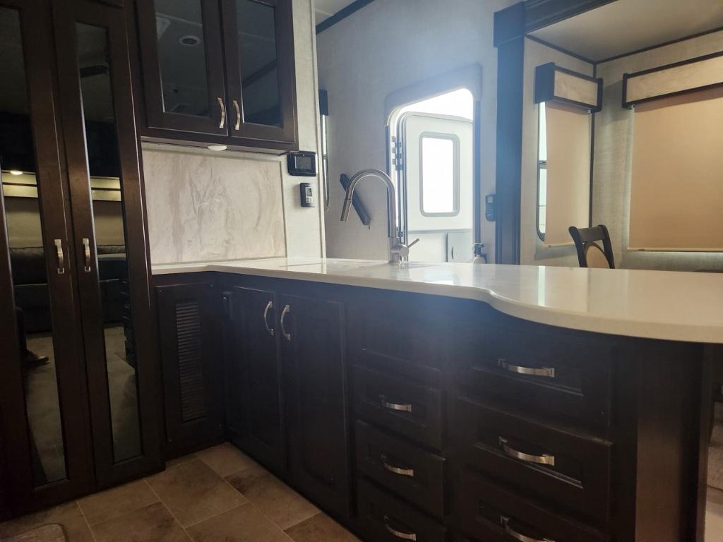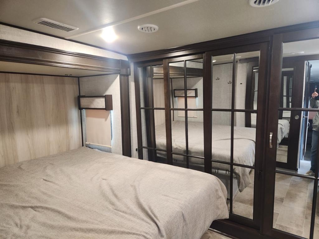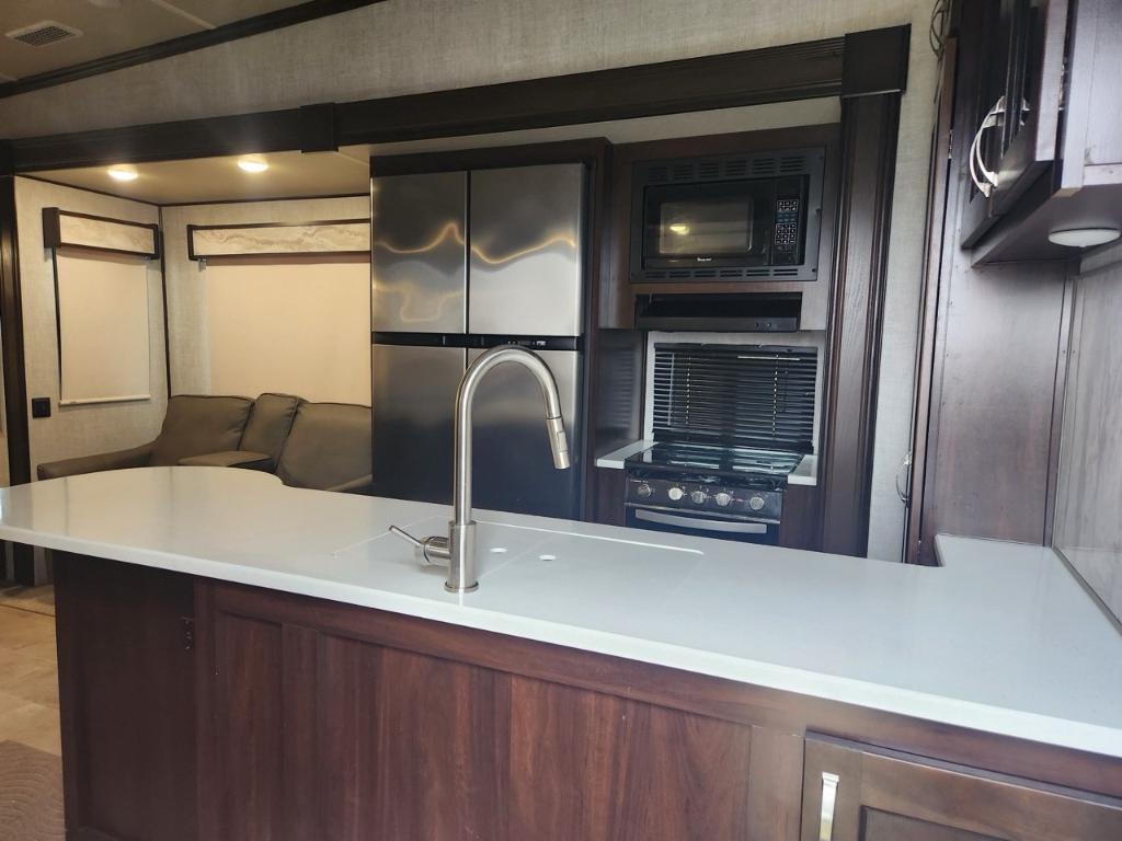Longueur 29' 0'' Largeur 8' 0''Dort 4 Capacité en eau (douce) 75 gal Capacité en eau (gris) 71 gal Climatiseurs 2 Spécifications du climatiseur 15 000 et 13 500 BTU Coulissantes 3 Poids sec 11 859 livres # Essieux 2. Hauteur 14' 0''.
