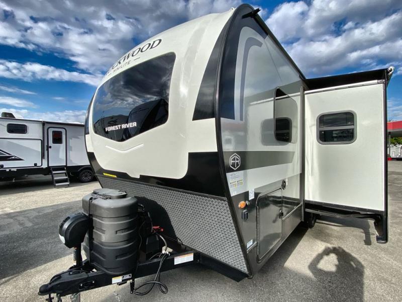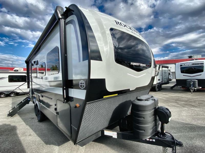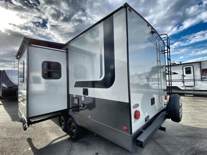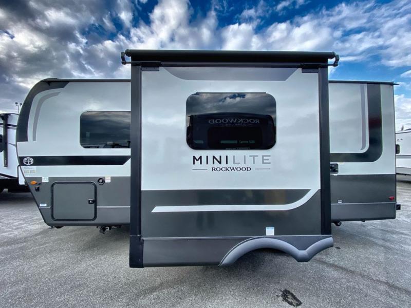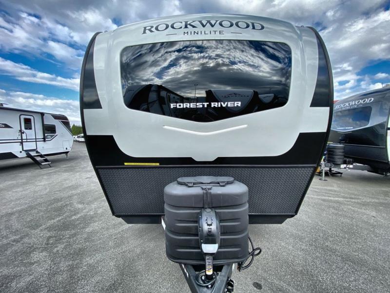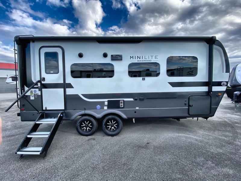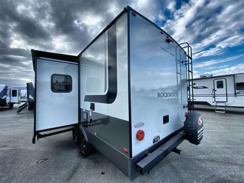 Each Rockwood Mini Lite travel trailer by Forest River is constructed with a fully laminated one-piece walkable roof, sleek frameless windows, and a six-sided full aluminum frame for strength and durability. The 12V thermostatically controlled heated tanks, plus radiant foil in the underbelly will allow you to camp well into the colder months, and the 200W roof solar panel will be perfect for a little off-gridding. Each model includes solid surface kitchen countertops, hidden hinge cabinet doors, roller shades, plus many more interior features. Having an AIR 360+ omnidirectional antenna with WiFi prep on board gives you the option to get some work done if it's needed, and the power tongue jack provides hassle-free set up, so you can enjoy more time relaxing!