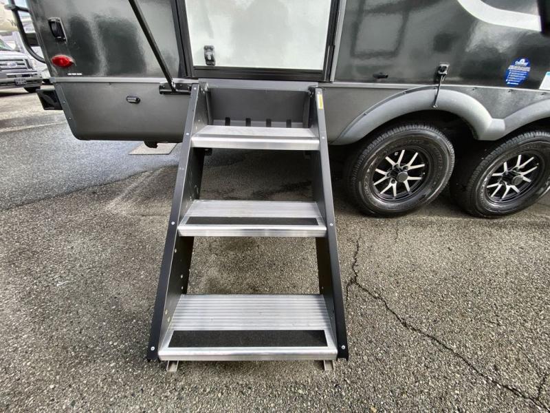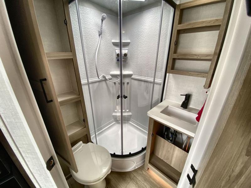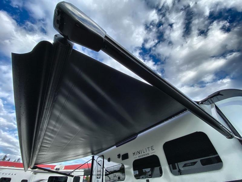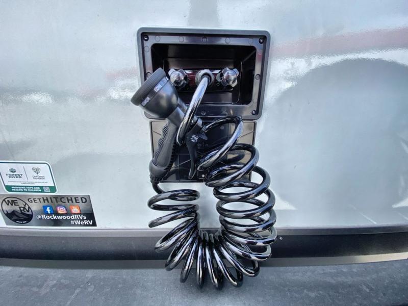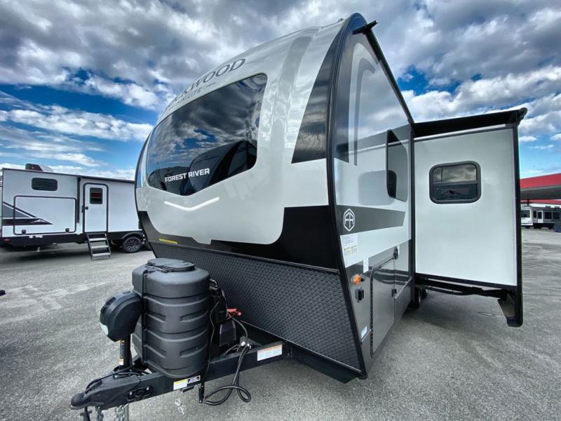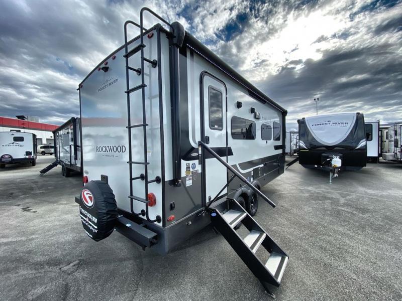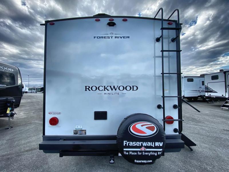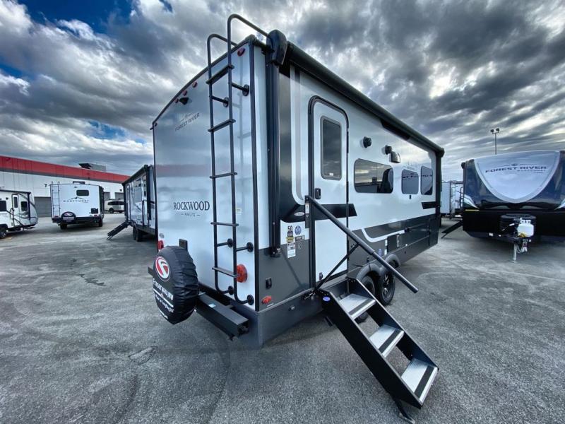 Each Rockwood Mini Lite travel trailer by Forest River is constructed with a fully laminated one-piece walkable roof, sleek frameless windows, and a six-sided full aluminum frame for strength and durability. The 12V thermostatically controlled heated tanks, plus radiant foil in the underbelly will allow you to camp well into the colder months, and the 200W roof solar panel will be perfect for a little off-gridding. Each model includes solid surface kitchen countertops, hidden hinge cabinet doors, roller shades, plus many more interior features. Having an AIR 360+ omnidirectional antenna with WiFi prep on board gives you the option to get some work done if it's needed, and the power tongue jack provides hassle-free set up, so you can enjoy more time relaxing!