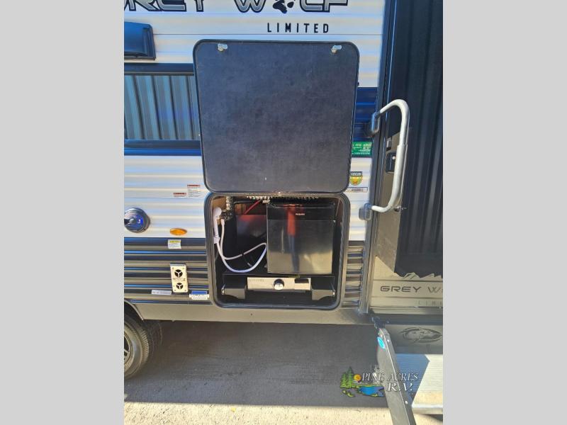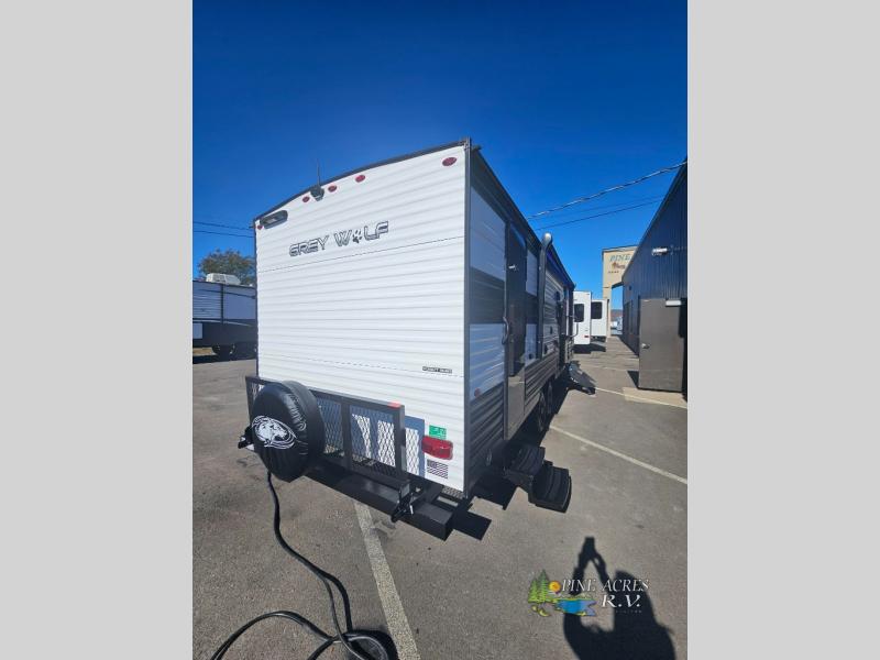 Whether it's a journey that will take you to new locations or a tried-and-true getaway to that favorite and memorable destination, the Forest River Cherokee Grey Wolf travel trailers and toy haulers are going to make the trip worth it every single time! You can travel in confidence with the premium wheel package, seamless roofing membrane with heat reflectivity, Power Gear frame technology with space-saver rail design, and Cherokee back-up camera system. The Cherokee Grey Wolf's interior is highly attractive with its stainless steel kitchen suite package and premium bedding ensemble and comforter. You will also find a black waste tank flush-out kit, an outside shower with hot and cold water, an armored underbelly tank enclosure, and an RV grill quick connect.