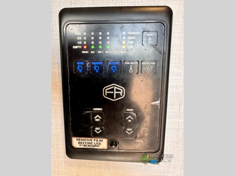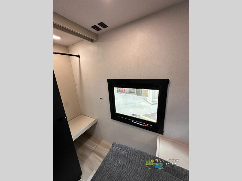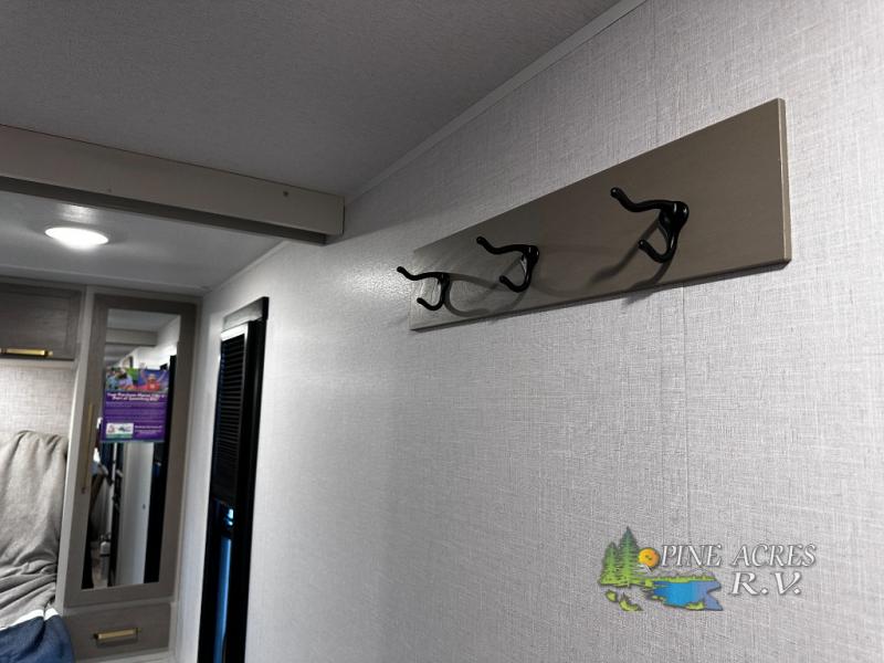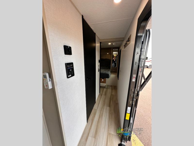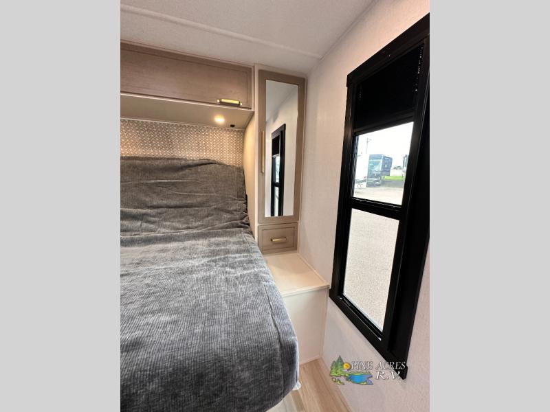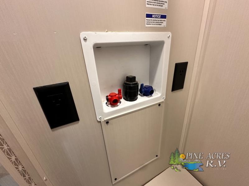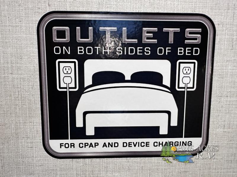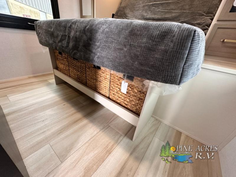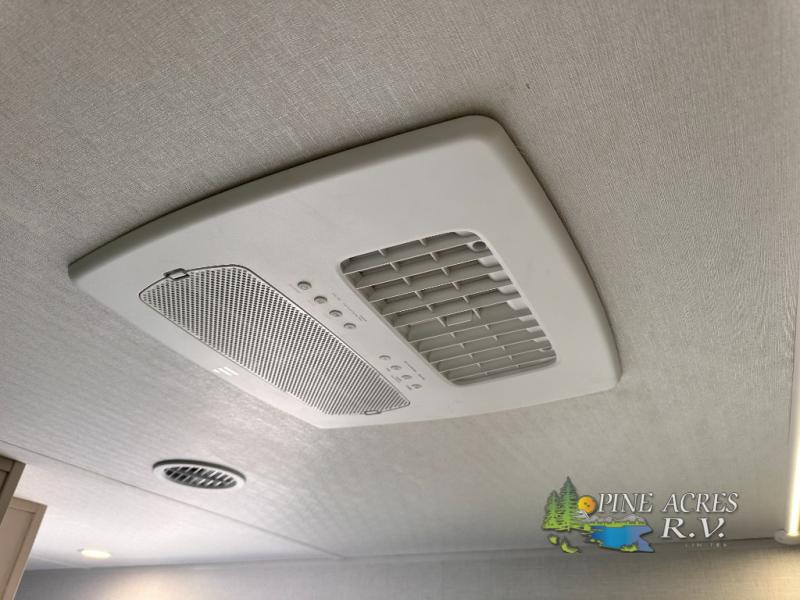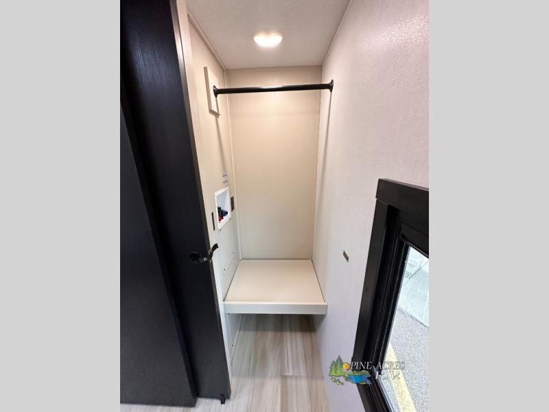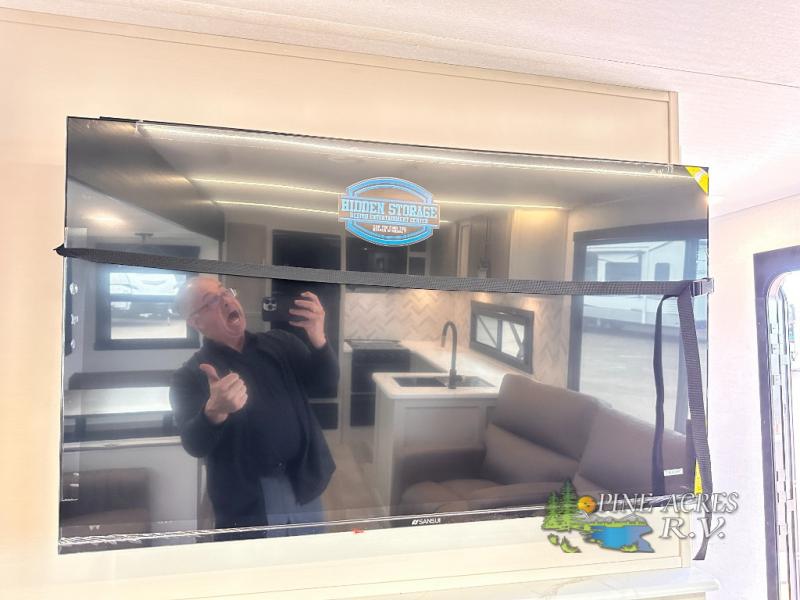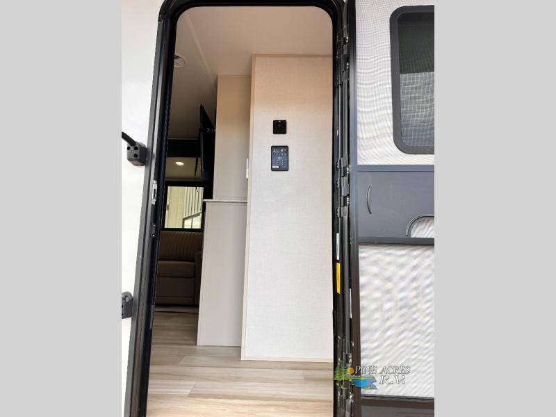 Camping trips just got better with this travel trailer in tow! You can cook in the rear kitchen with a three burner range, microwave oven, and a 10 cu. ft. 12V refrigerator. There is also a U-shaped counter to prep all your meals and a pantry to keep snacks close by. Your crew can relax on the tri-fold sofa or booth dinette within the large slide out, and there is an entertainment center with a 40" TV for movie night. Clean up each day in the spacious full bath, then head to the front private bedroom with a walk-around queen bed with Versa-Tilt. There are also dual wardrobes and a closet with washer and dryer prep. Head outdoors to find the 20' power awning, XL Texas size pass-through storage, and exterior griddle!