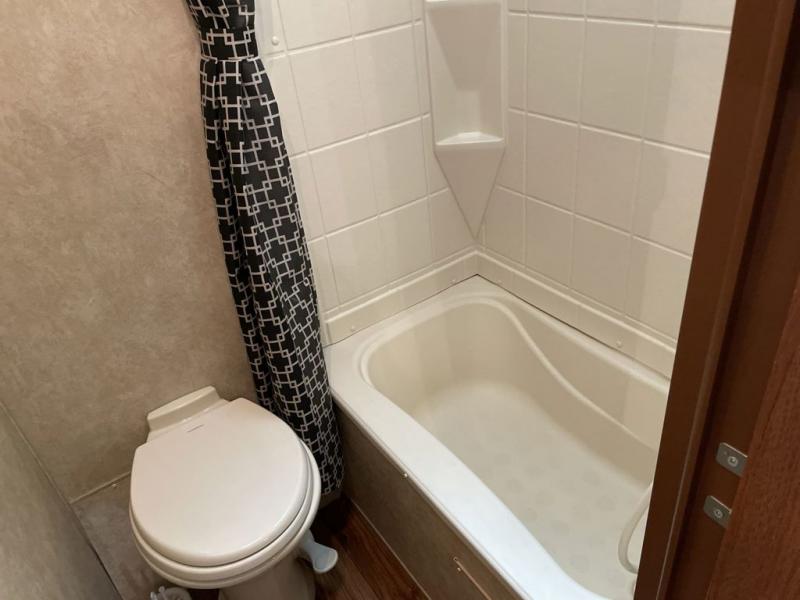 Outside under the front bedroom there is a pass thru storage area where you can stow all of your exterior camping gear, and much more!